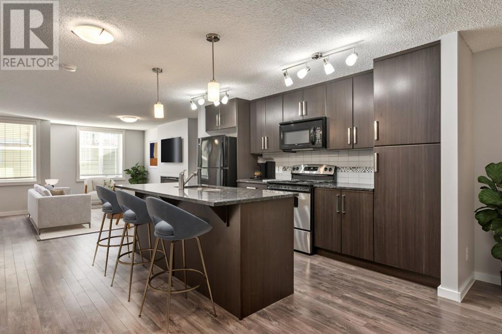 Nestled in this adorably inviting “ZEN” community, this garden suite unit reimagines the charm of the white picket fence dream and brings it within your reach. Its bright exterior sets the tone for a life filled with joy and simplicity. As a corner unit with a south-facing aspect, light bathes every corner of this 1,128 square-foot haven, comprising 2 bedrooms and 2 baths - an ideal starter home that perfectly balances sleek finishes with a functional design.Step inside to discover an incredibly spacious one level unit, where laminate flooring combines high-end aesthetics with unparalleled durability, perfect for pets and children. The heart of this home is its chic, rich kitchen, boasting granite countertops and an eat-up bar - a space not just for meals, but for moments; mixing, mingling, and making memories over cocktails. With a brand new stove and ample cupboard space, it's a culinary dream.Serve your creations in the formal dining area, tailored for gatherings big and small. Post-dinner, retreat to the living room, an enclave of comfort where the glass bead electric fireplace with a warm glow, and sunset light dances through the windows, creating an ambiance of cozy intimacy.As night falls, ascend to the tranquil primary bedroom, a spacious sanctuary, features a walk in closet, a 3-piece ensuite and a large walk-in shower, promising rest and rejuvenation. The additional bedroom, equally bright and inviting, offers privacy and comfort - perfect for guests or roommates.Unique to this property is a private front patio, shaded for serene summer lounging yet open to bask in the sun. Surrounded by walls, it offers an intimate setting that feels both cozy and expansive, a versatile space for relaxation or entertainment.This home boasts ample storage throughout and parking is a breeze with a stall and visitor parking just steps away outside your door.Situated within walking distance to McKenzie Town's amenities, including parks and Inverness Pond, your days can begin with serene walks, accompanied by the rising sun. Mere minutes from shopping and Fish Creek Park, and with the future Green Line offering seamless access to downtown Calgary, convenience and nature blend seamlessly.This is more than a home; it's a lifestyle. A place where every day is a testament to comfort, style, and ease. Book a showing now, and step into a life where the Zen of home becomes your everyday reality. (id:22211)