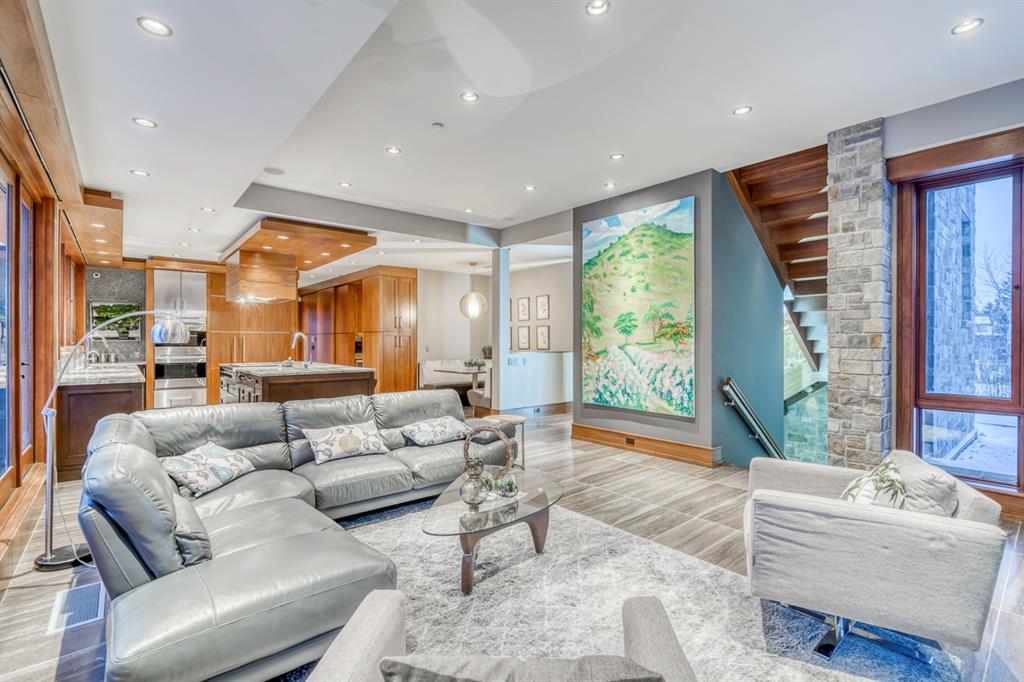 Unprecedented quality and construction on a 75’ lot in an amazing location overlooking the Elbow River. Mike Holmes “made it right” when creating this low-maintenance, energy-efficient, luxury home. Behind the double-wide offset walls, that allow for extra insulation, you’ll find mold and moisture resistant “blue wood”, spray foam and noise dampening insulation, and an abundance of extraordinary construction and design details throughout. As you cross the threshold into this home you are met with a multi-story living wall that is not only beautiful but it helps to oxygenate and purify the air. In the open living area, with a clean-burning fireplace, the floor-to-ceiling glass wall fully opens to the sunny south-facing deck for the ultimate indoor-outdoor living space. Relax and entertain in the indoor or outdoor kitchen (with stone pizza oven), both with high-end appliances. Wolf and Miele appliances, granite countertops, hydroponic herb fridge, butler pantry with second dishwasher and so much more. The second floor has three bedrooms, a gym (that could easily be converted to another bedroom), and a laundry room. The third floor is the master retreat with a meditation nook overlooking the river, extensive closet and storage systems, and an ensuite with floor-to-ceiling granite tile. Just off the master bedroom is the main office with accordion glass doors to the third-story balcony with views of the river and valley. A concrete slab and 500lb barn door separate the home from the basement providing a soundproofed space when the action and noise of a movie or game in the media room won’t be noticed throughout the house. The home is equipped with an elevator to all levels and has been designed to be fully wheelchair accessible. The oversized triple garage (with a green roof) is large enough to accommodate car lifts so inside parking could be doubled if required. Built like no other - eco-friendly, sustainable, durable, and low maintenance - this home has an extensive l ist of features beyond what is mentioned. An incredible location across from the Elbow River steps from the river pathways, Stanley Park and so much more. The home also offers access to some of Calgary's top inner-city schools including Elbow Park, Rideau, and Western Canada High School. Visit the listing Realtor website for more info or book a showing to see firsthand what this incredible home has to offer. (id:22211)
