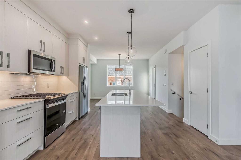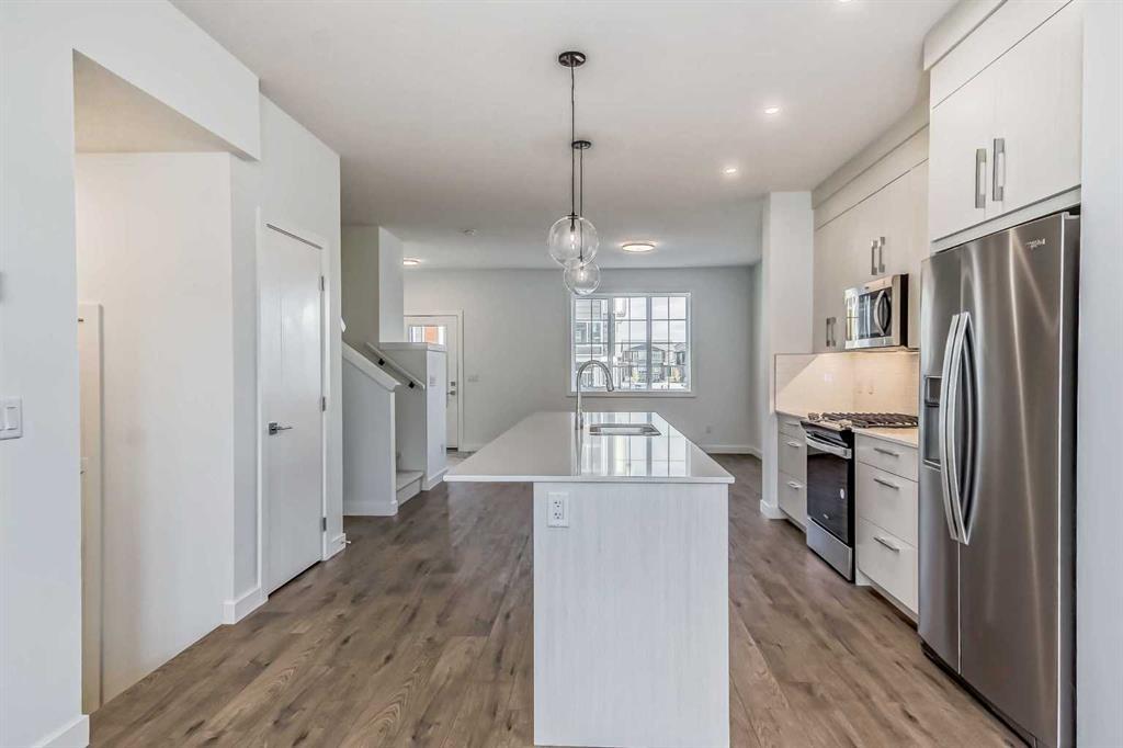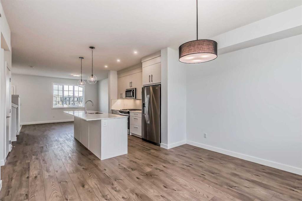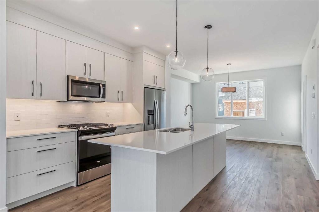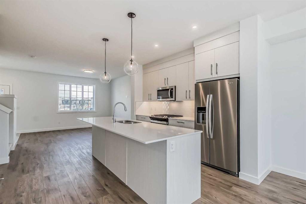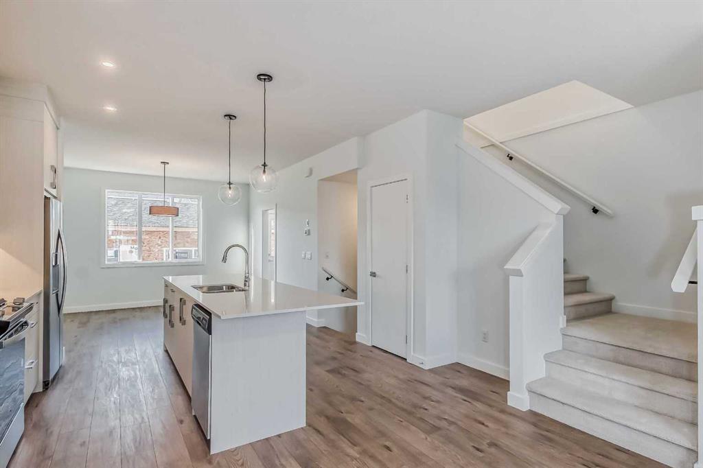 Welcome to the epitome of modern living in the new community of Cornerstone! This newly constructed, two-story townhome offers the ideal blend of style and functionality and NO CONDO FEES. With 3 bedrooms and 2.5 bathrooms, there's ample space for your family to thrive. The main floor offers a spacious and bright layout with abundant natural light. The contemporary kitchen with cream cabinetry, stainless steel appliances (a gas stove!) and a generous island, is perfect for preparing meals and hosting friends and family. Upstairs, you'll find a generous primary suite with a walk-in closet and an ensuite bathroom with double sinks. Two additional bedrooms share a well-appointed full bathroom, and laundry is just down the hall. The basement is unfinished, awaiting your personal touch and offering endless possibilities to fit your lifestyle. A double detached garage will be completed soon, and front landscaping is also included by the builder. Located in a master-planned community, Cornerstone offers a family-friendly atmosphere, proximity to parks and schools, and convenient access to major roadways for easy commuting. Don't miss the opportunity to call this brand-new townhome yours! Your future in Cornerstone begins here. (id:22211)