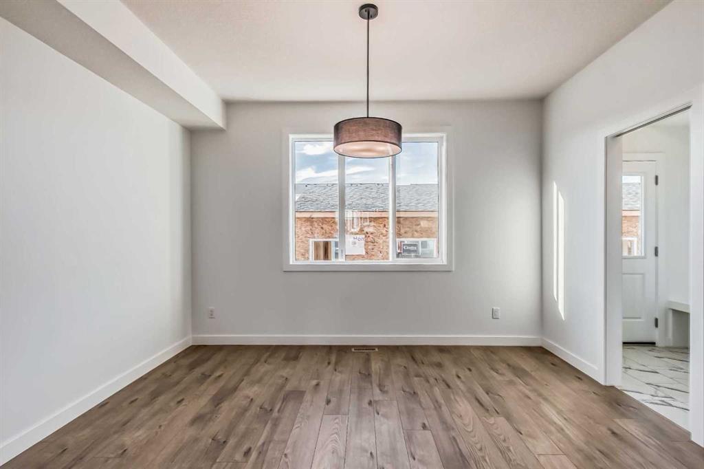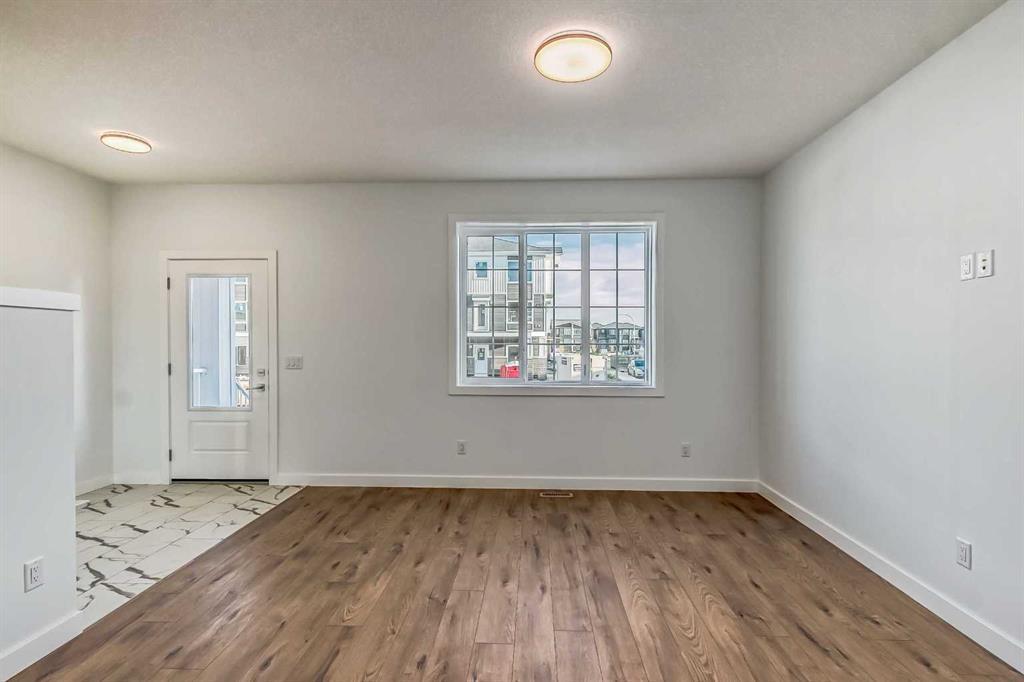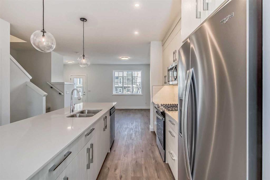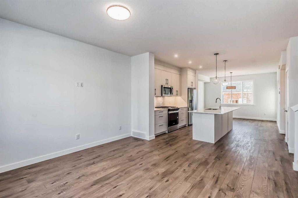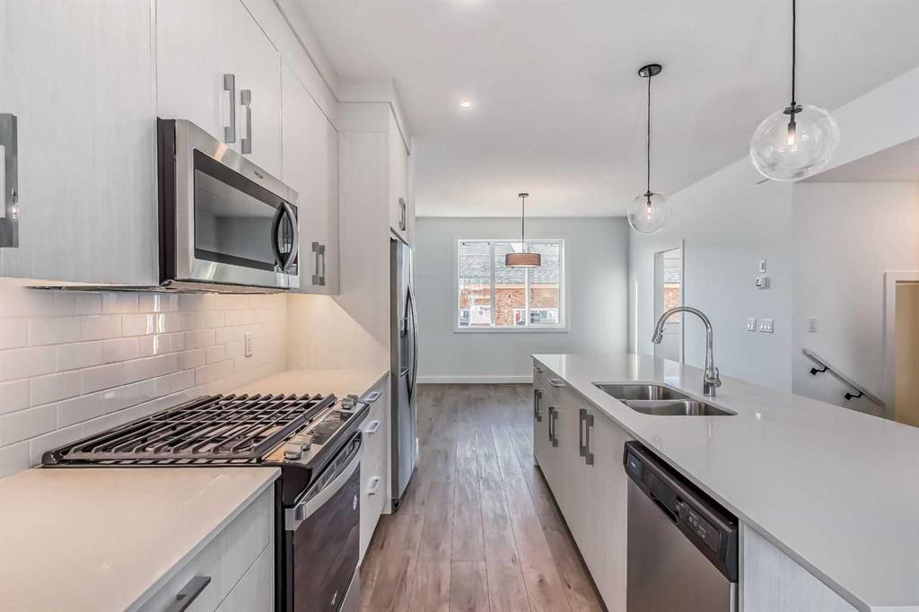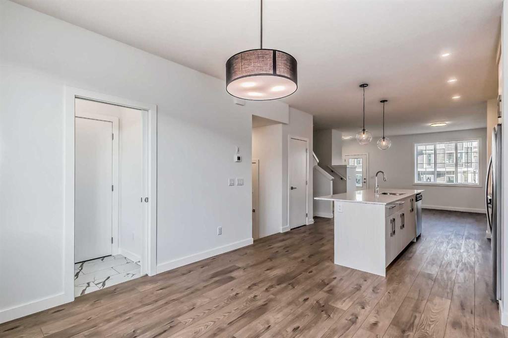 Welcome to the epitome of modern living in the new community of Cornerstone! This newly constructed, two-story townhome offers the ideal blend of style and functionality and NO CONDO FEES. With 3 bedrooms and 2.5 bathrooms, there's ample space for your family to thrive. The main floor offers a spacious and bright layout with abundant natural light. The contemporary kitchen with cream cabinetry, stainless steel appliances (a gas stove!) and a generous island, is perfect for preparing meals and hosting friends and family. Upstairs, you'll find a generous primary suite with a walk-in closet and an ensuite bathroom with double sinks. Two additional bedrooms share a well-appointed full bathroom, and laundry is just down the hall. The basement is unfinished, awaiting your personal touch and offering endless possibilities to fit your lifestyle. A double detached garage will be completed soon, and front landscaping is also included by the builder. Located in a master-planned community, Cornerstone offers a family-friendly atmosphere, proximity to parks and schools, and convenient access to major roadways for easy commuting. Don't miss the opportunity to call this brand-new townhome yours! Your future in Cornerstone begins here. (id:22211)