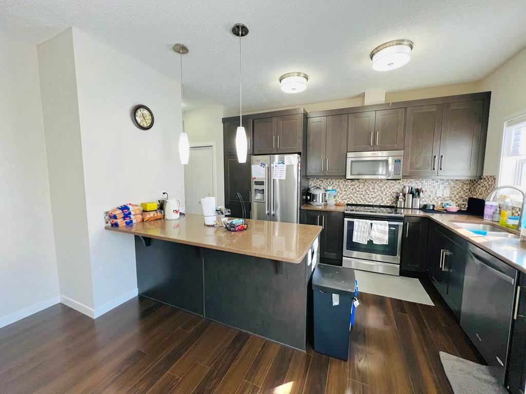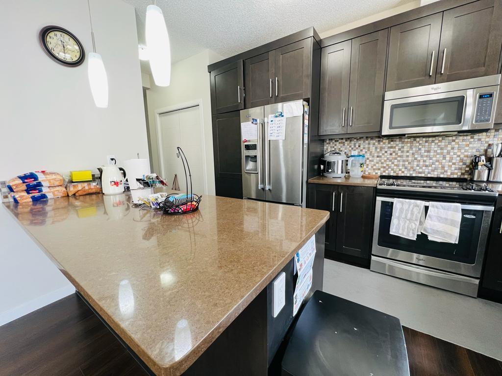 Immaculate property, Conveniently located & close to all amenities. Very spacious, clean & well-taken care home. Perfect for 1st-time Buyers or Keep it as an Income portfolio. Builder built 1700 sqft of finished/Living area as per its plan. Currently rented to a beautiful and caring family. Double Attached Garage, Total of 3 Bedrooms, 3 Baths, Big Office or use a 4th Bed, Spacious Living room, Upgraded Kitchen, with Island & Dining area. BBQ Gas line on the rear Balcony for your BBQ cravings. The kitchen offers beautiful Stainless Steel Appliances & beautiful Quartz counters. The Mastebed offers a walk-in closet and ensuite full washroom. Two more bedrooms with a common full washroom. 2 car attached garage gives you parking freedom. Not to mention, the townhouse is among the largest built by the Jayman, which are hard to come by these days. A good size finished storage space behind the staircase is there for your extra belongings or for the Kids to play room. Situated on a quiet street, Enjoy free roadside parking right in front of your home. Tenants willing to stay or take vacant possession. Please call for your private showing. (id:22211)