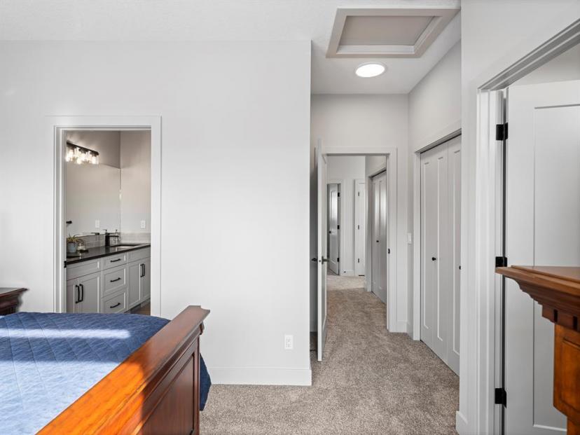 Thoughtfully designed with fantastic high end upgrades, this new build in the Ravines of Royal Oak by Janssen Homes offers unmatched quality, located on the most scenic & tranquil of sites in the mature NW community of Royal Oak. This 1,730 sqft 3-storey end-unit boasts incredible upgrades & 9ft ceilings throughout, double primary suites each with a 4pc ensuite and attached double-car garage. The entry level offers a spacious flex room ideal for office, media-room or gym with beautiful natural light that is seen throughout all three levels of this sunny south-facing home. The main floor open-concept-plan features a grand kitchen with full-height cabinets, stainless steel appliances with gas range, quartz counters, and many upgrades including upgraded dishwasher, matte black hardware, Blanco silgranit sink and customized pantry shelving. The large kitchen island with breakfast bar seating opens onto the gorgeous dining room which features a custom black shiplap wall and oversized window. The living room boasts upgraded lighting and a 50' Napoleon Alluravision slim electric fireplace with tile to the ceiling and direct access to the lovely back deck that features 60' privacy glass on both ends of the deck. A stunning 2pc bathroom with upgraded Pottery Barn mirror completes this main level. The upper level boasts a double primary suite, with incredible walk-in closets and ample storage space, 4pc esuites both showcasing quartz countertops, in-floor heating and many upgrades including upgraded faucets, shower head, cabinet hardware, towel bars and toilet paper holders (matte black), with one ensuite featuring a stand alone shower and double vanity with the other showcasing a tub/shower combination. This floor is topped off with a sizeable storage closet and great laundry space with upgraded MDF folding counter, shelf and rod! The Ravines of Royal Oak goes far beyond typical townhome offerings; special attention has been paid to utilizing high quality, maintenance free, materials to ensure long-term, worry-free living. Acrylic stucco with underlying 'Rainscreen' protection, stone, & Sagiwall vertical planks (ultra-premium European siding) ensure not only that the project will be one of the most beautiful in the city, but that it will stand the test of time with low maintenance costs. Other premium features include triple-pane, argon filled low-e, aluminum clad windows, faux wood blinds and air conditioning! Condo fees include building insurance, exterior building maintenance & long-term reserve/replacement fund, road & driveway maintenance, landscaping maintenance, driveway & sidewalk snow removal, landscaping irrigation, street & pathway lighting and garbage/recycling/organics service. Bordered by ponds, natural ravine park, walking paths & only minutes to LRT station, K-9 schools, YMCA & 4 major shopping centres, this home is a must see! (id:22211)