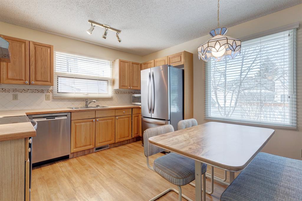Undeniable value on a very accessible street in highly desirable Woodbine. This home exudes pride in ownership with an incredible commitment to routine maintenance and upgrades, often completed earlier than necessary. Recent updates include: Furnace (new in 2015, serviced in 2022), H20 Tank (2019), Roof (2014), Central A/C (2018), Windows (most are newer with Hunter Douglas blinds), Washer/Dryer (2021), Fridge/Stove/Dishwasher (2020) and the kitchen was updated in 2020, plus the main floor was recently painted. Other features include a beautifully treed, west facing yard, a large garage with a high ceiling able to accommodate plenty of additional storage, and a full basement waiting for an inspired new owner. Very close to local shopping and only a few minutes to the ring road and Costco! Book a showing with your favourite Realtor now, this one won't last. (id:22211)