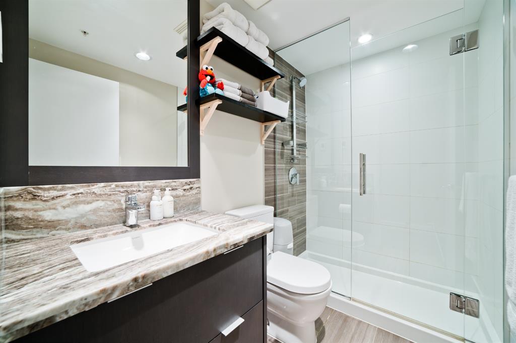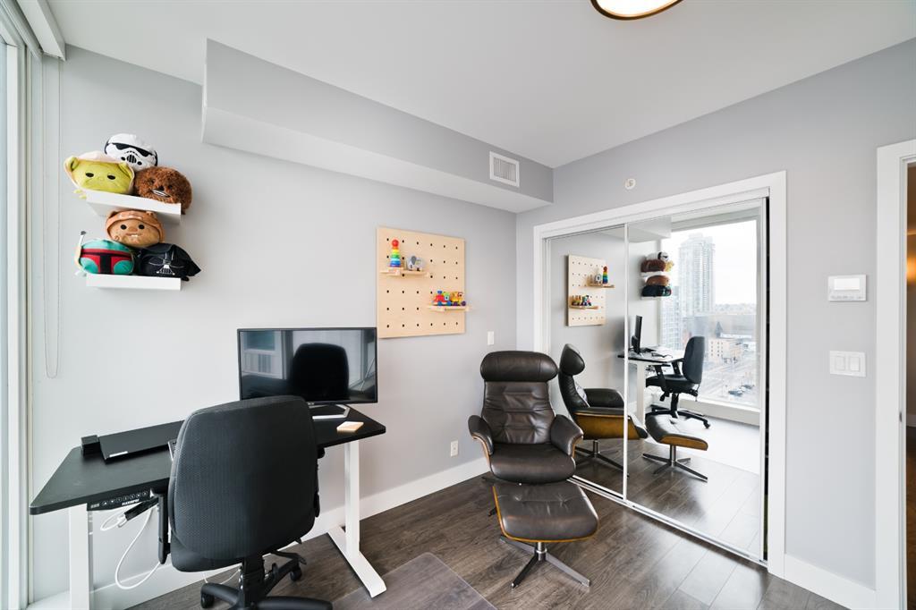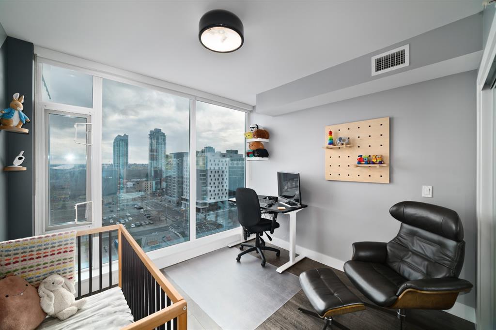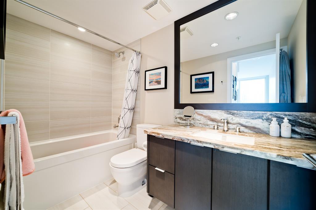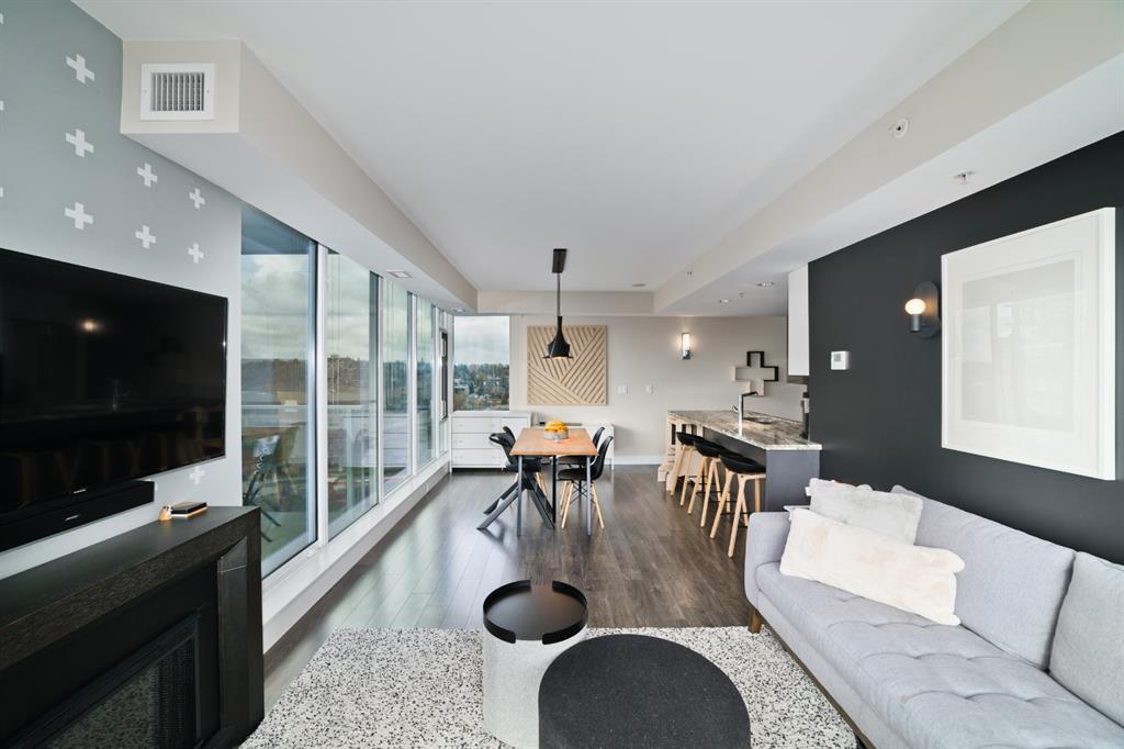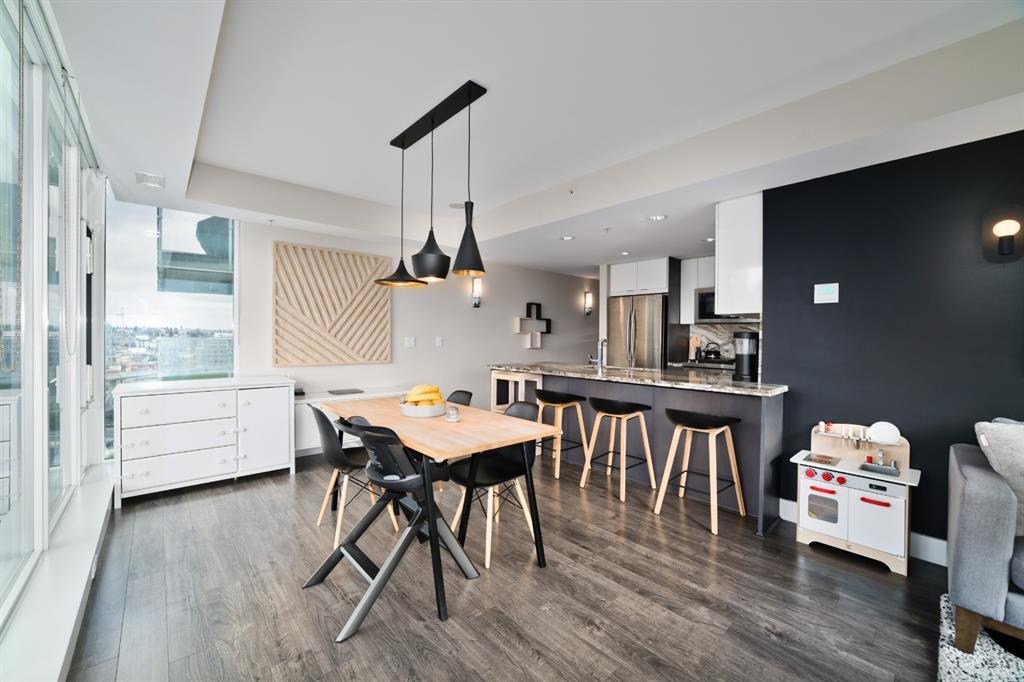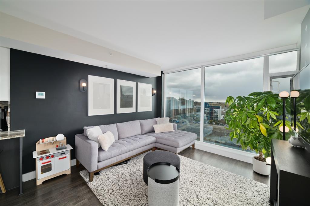 Welcome to luxury living in the amazing community of East Village. Unobstructed views of downtown, Studio Bell, Saddledome, Stampede Grounds and river views from this SE corner unit on the 13th floor, executive-style suite in the iconic Evolution complex. This gorgeous condo offers 2bd, 2 bath, 2 heated underground parking spots and a separate secured storage locker. Modern simplistic design & floor to ceiling windows in each room allow plenty of natural light, creating the ideal living/dining area for entertaining. Host friends in the kitchen w/ granite countertops, gas range, backsplash & 4-seat breakfast nook. The living room has east and south exposures and a door to an oversized balcony with gas hookup and breathtaking views of the Bow and East Village. A great place to enjoy Stampede & New Year's fireworks. The master bedroom has a generous walk-in closet and great skyline views of the Calgary Tower, a perfect retreat for watching the city’s lights at night. The second bedroom would be perfect to use as a home office with beautiful views of the Saddledome. Upgraded hard flooring and light fixtures throughout, central A/C and heated bathroom floors. In-suite laundry, huge hallway closets, built-in storage and shelving, to keep everything tidy and tucked away. Evolution is a sought-after and engaging complex, with this unit in the taller Pulse building, which boasts the convenience of 3 elevators and offers a larger gym. Additional amenities include landscaped outdoor courtyard with BBQs for residents' use, secure bike storage, 24/7 on-site security, professional concierge, party/meeting room, sauna, steam room & more. Soak up the East Village character with easy access to the Bow River pathway system, adjacent to an LRT station, across the street from Superstore, shops, cafes, restaurants, parks, public library & endless entertainment options. A beautiful home in a well-managed building, surrounded by a dynamic, energetic neighbourhood. Call to book your privat e viewings today! (id:22211)