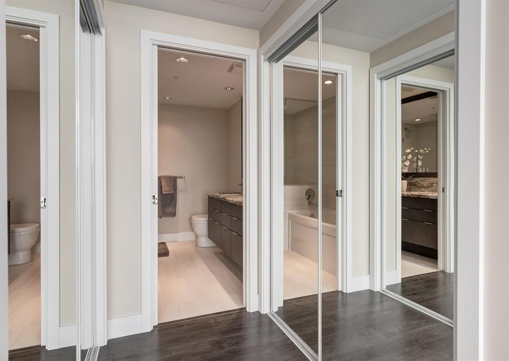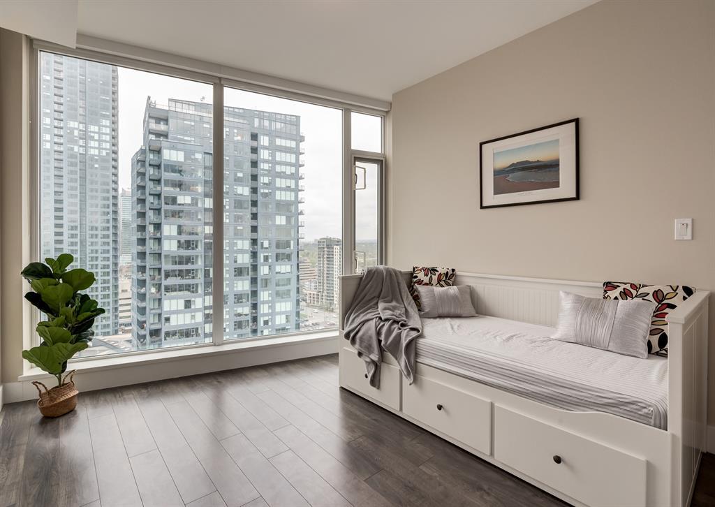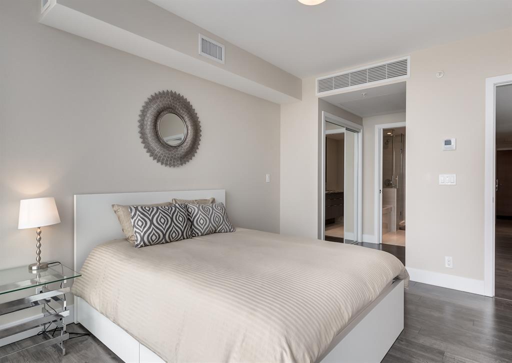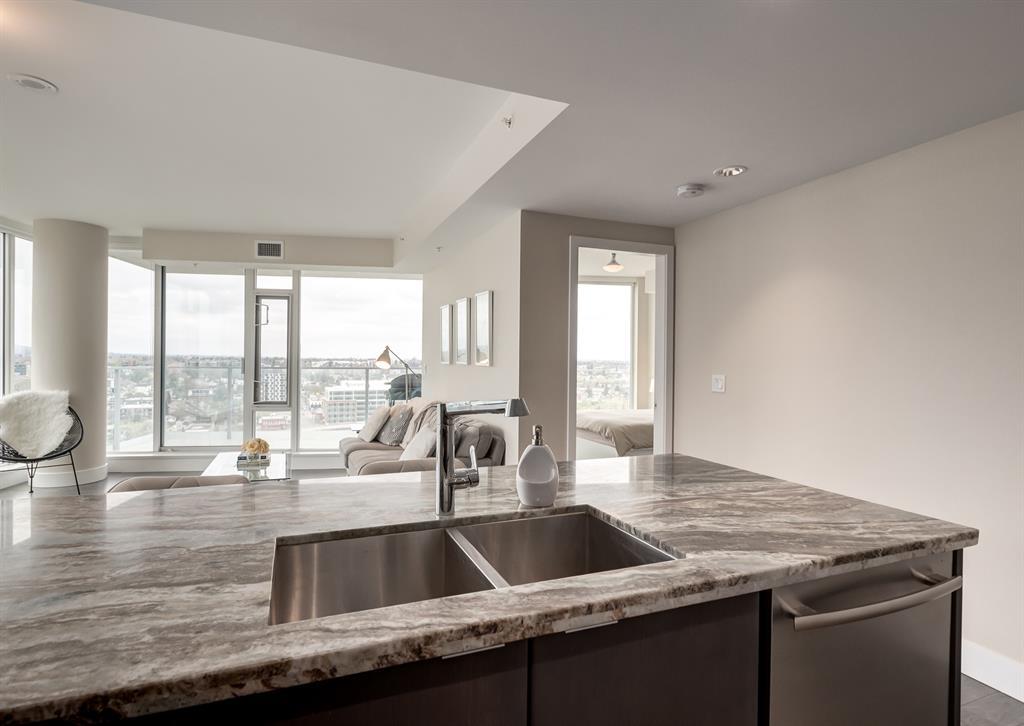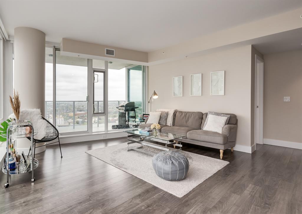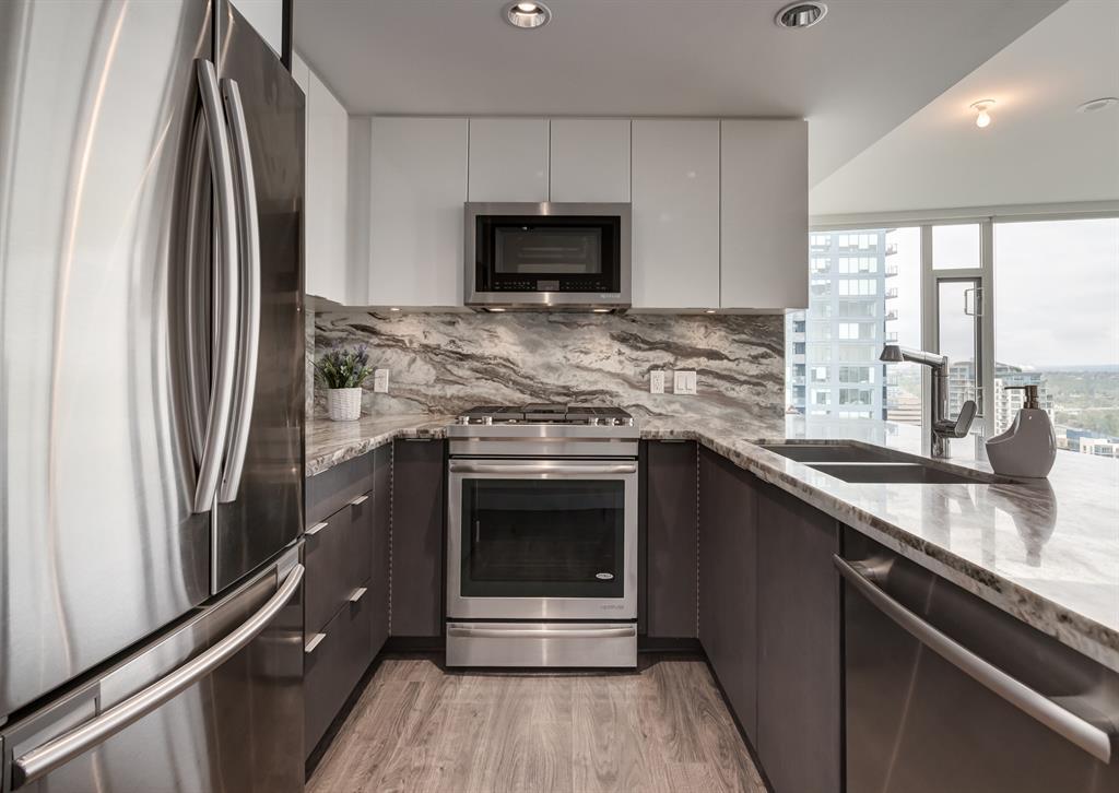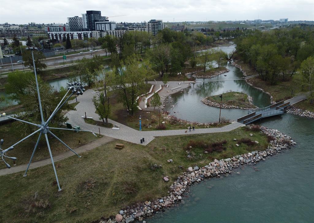 We're extremely proud to present this specatacular executive corner-unit condo in the amazing Evolution Pulse by Bosa Developments. The East Village is on the rise again with the approval of the new Events Centre, Practice Facility and Stadium for the Calgary Flames. The retrofitting of the Stampede Grounds is vitally important to our tourism and downtown vibrance, so why not own a piece of it, just steps away! There will never be another building to block the view and the floor to ceiling windows flood your space with sunlight. The creature comforts include in-floor heating, air conditioning, granite counters/backsplashes, Jenn-air appliances, upgraded vinyl plank flooring, a big balcony, storage locker, and even a huge parking stall that could fit 2 small cars or 1 big one. With 2 bedrooms, in-suite laundry, a gourmet kitchen, large eating bar, and 2 bathrooms, this immaculate unit offers it all! The master suite is an oasis featuring double closets and a 5-piece ensuite bath with deep soaker tub and tiled shower. Building amenities include 24-HOUR CONCIERGE/SECURITY, a fitness room with steam room and sauna, rooftop terrace with BBQ stations and fire pits, and a party room with pool table/TV’s/kitchen. What a time to be a buyer in the Calgary condo market, the value is unprecedented, and we'd love to accommodate your showings! (id:22211)