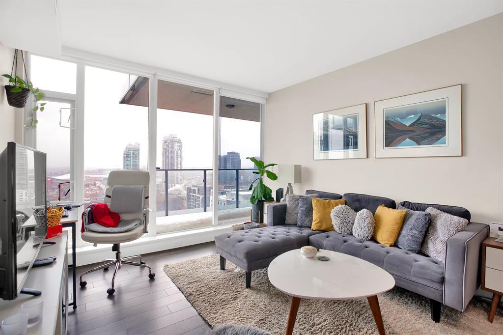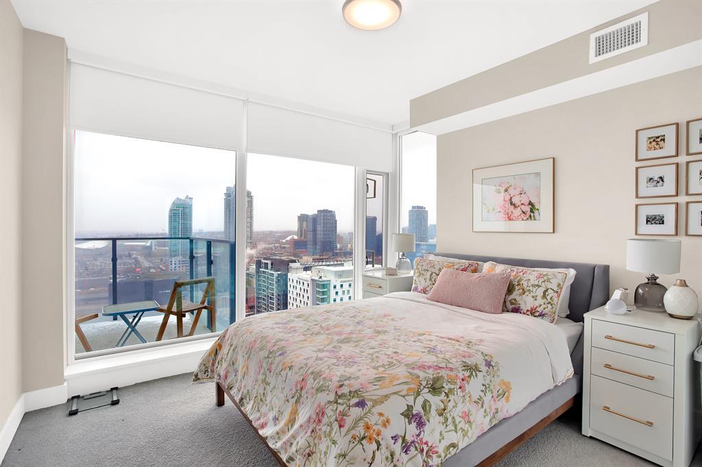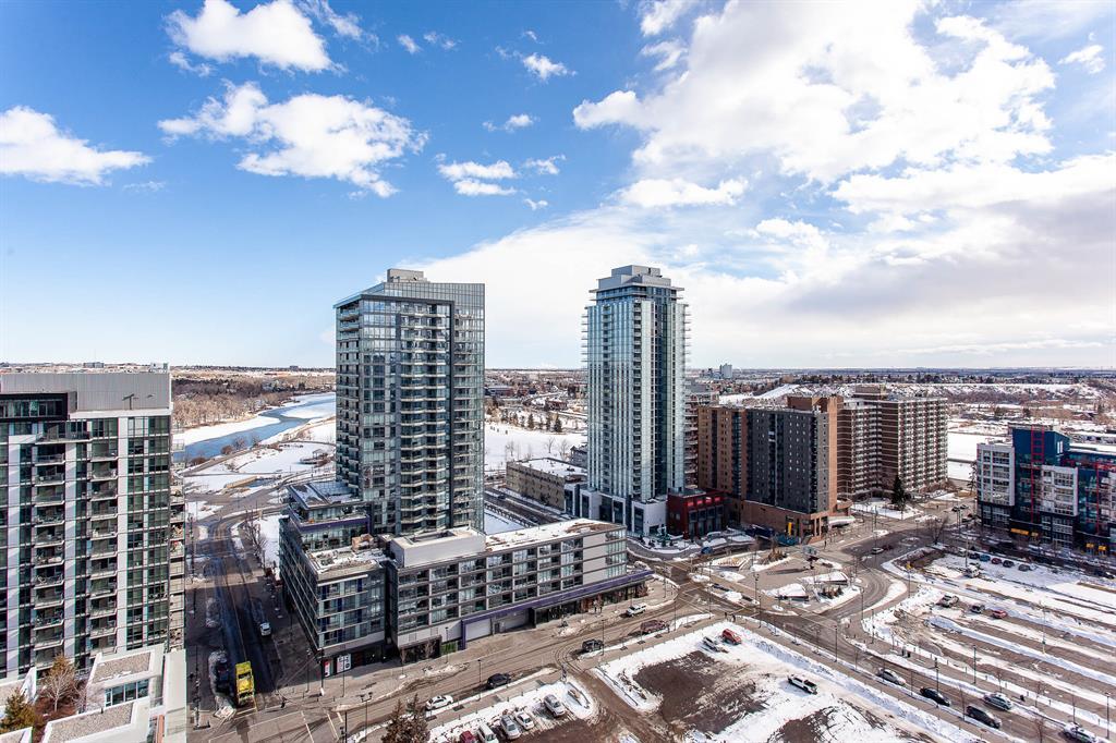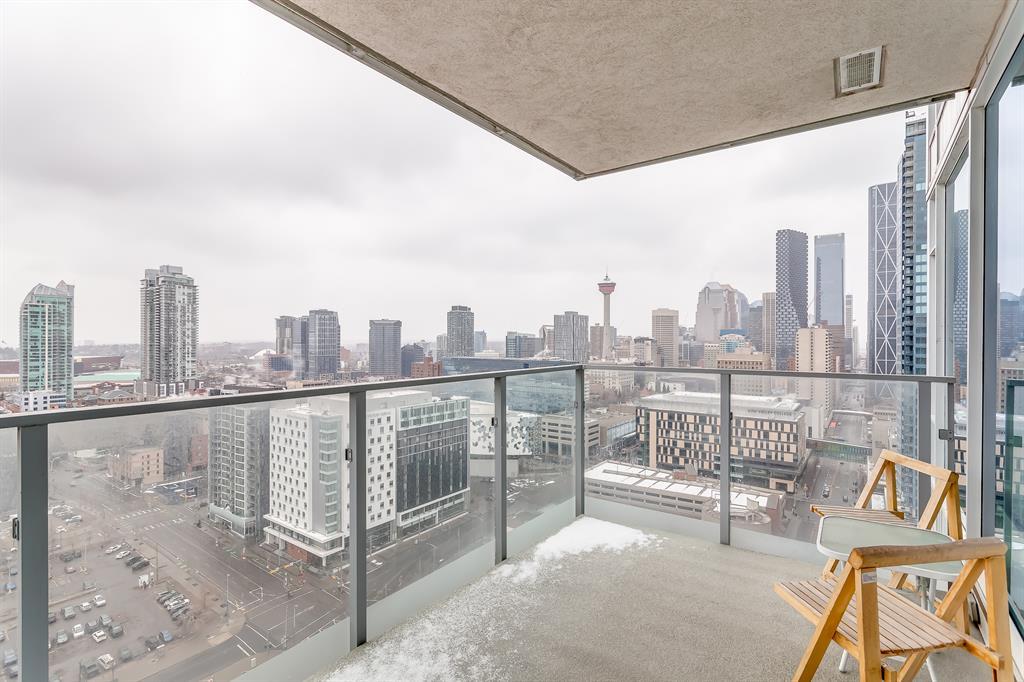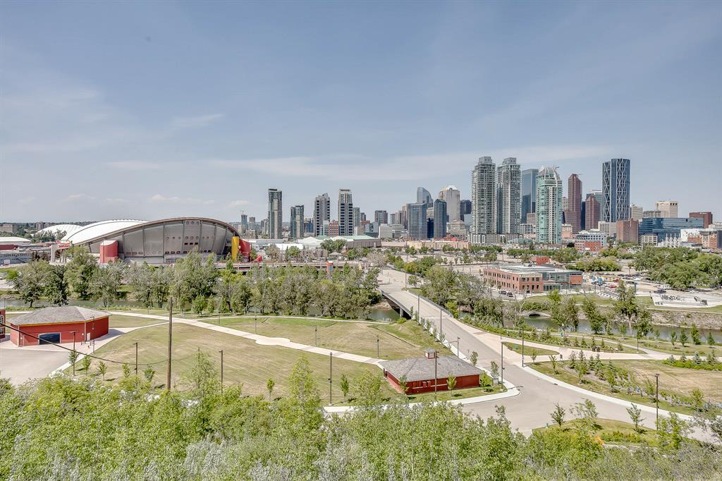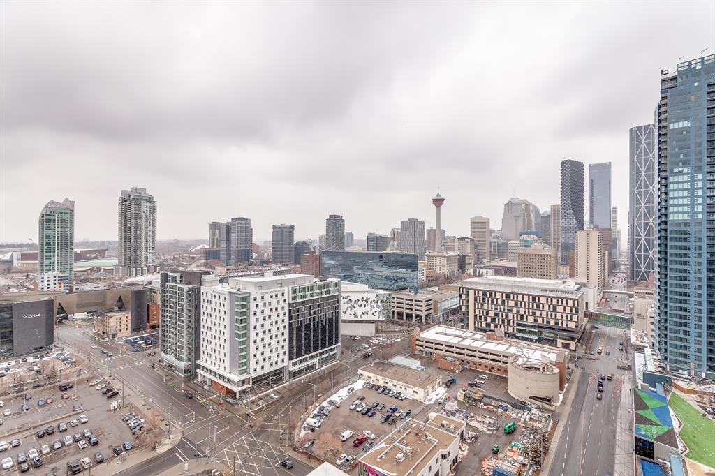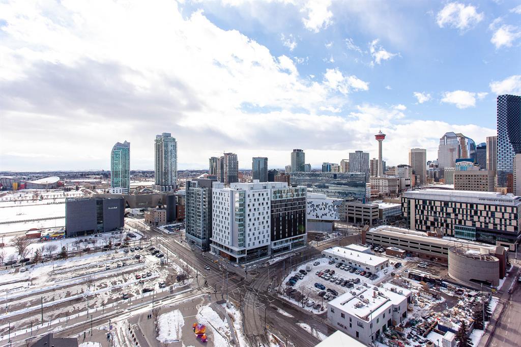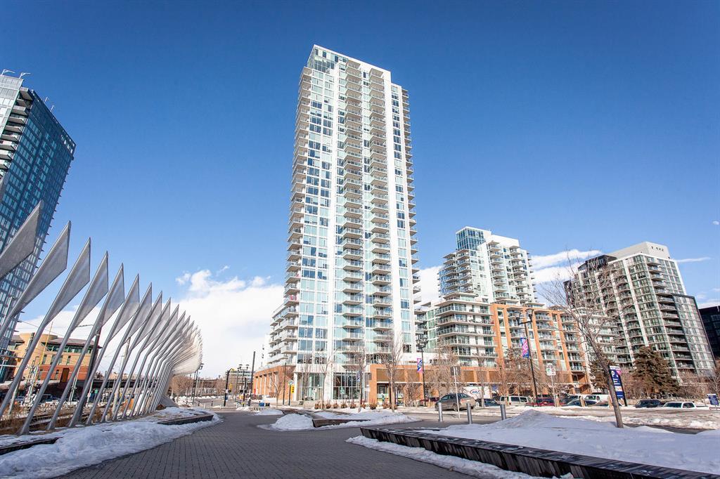 STUNNING VIEWS & EXCELLENT LOCATION! Welcome to this FABULOUS 1 bedroom unit on the 24th floor of the Pulse Tower at Evolution in East Village - Calgary's hottest Downtown neighborhood. Spectacular views of the Southern city skyline will impress you. Open concept floor plan. Living room has floor to ceiling "Low E" windows allowing lots of natural light into the unit. Enjoy the breathtaking views on the large balcony with gas outlet for BBQ, great for entertaining & watching fireworks over the Saddle Dome in the Stampede Ground. Generous size bedroom with large closets. Heated floors in the 4 pc bathroom. Stylish kitchen cabinetry, granite counters, high-end stainless steel appliances. Full size front load washer & dryer. Unit comes with assigned underground parking stall & storage locker. Building has secured parking, concierge service, fitness facilities w/steam room & sauna., social lounge & garden patio. Move in and enjoy the urban lifestyle of a modern waterfront community ,accessible to shops, banks , restaurants, parks, river walks, public library, Studio Bell & walking distance to the LRT station. The new Event Center & Arena will make East Village the most desirable location. Perfect investment for income & potential for value appreciation! Book your showing today! (id:22211)