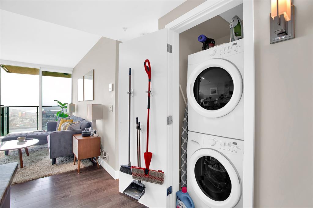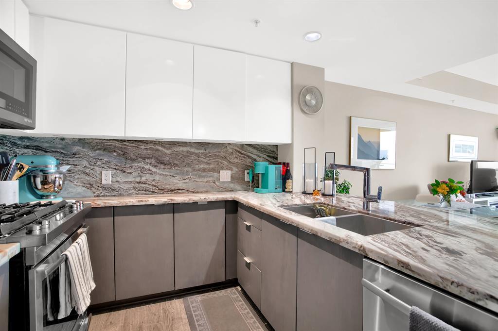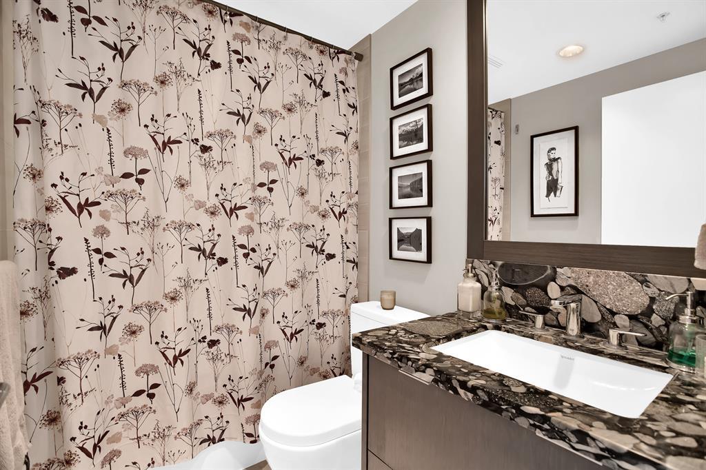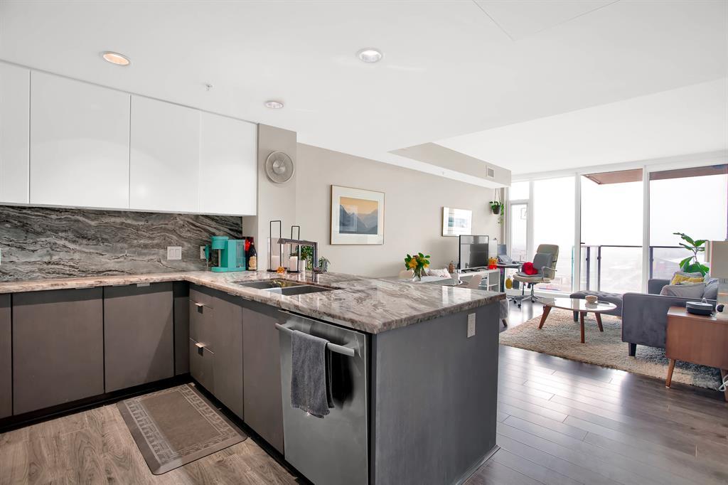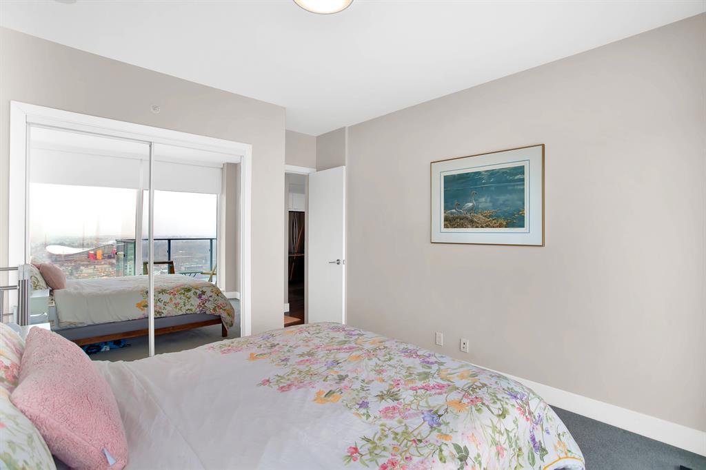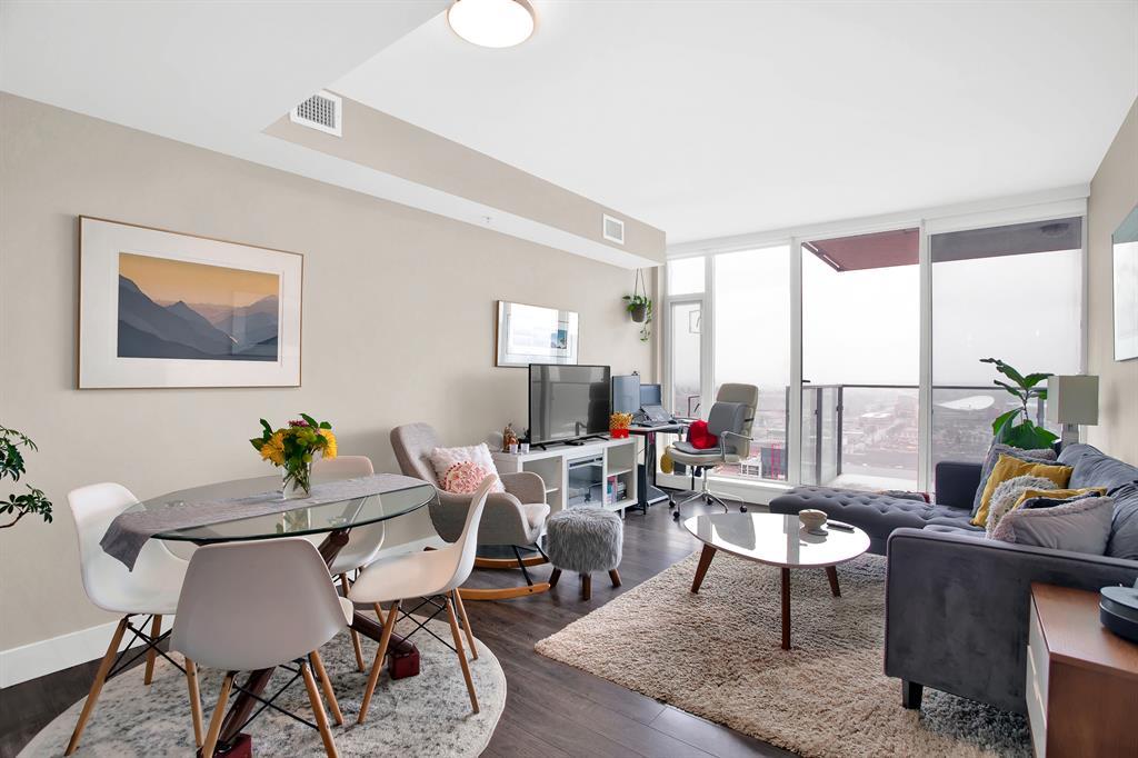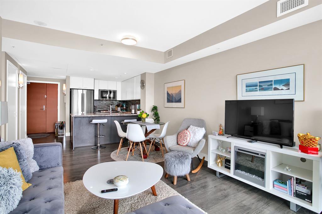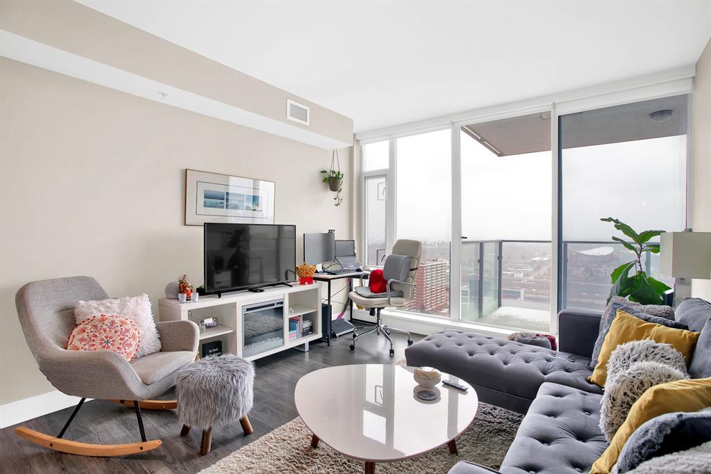 STUNNING VIEWS & EXCELLENT LOCATION! Welcome to this FABULOUS 1 bedroom unit on the 24th floor of the Pulse Tower at Evolution in East Village - Calgary's hottest Downtown neighborhood. Spectacular views of the Southern city skyline will impress you. Open concept floor plan. Living room has floor to ceiling "Low E" windows allowing lots of natural light into the unit. Enjoy the breathtaking views on the large balcony with gas outlet for BBQ, great for entertaining & watching fireworks over the Saddle Dome in the Stampede Ground. Generous size bedroom with large closets. Heated floors in the 4 pc bathroom. Stylish kitchen cabinetry, granite counters, high-end stainless steel appliances. Full size front load washer & dryer. Unit comes with assigned underground parking stall & storage locker. Building has secured parking, concierge service, fitness facilities w/steam room & sauna., social lounge & garden patio. Move in and enjoy the urban lifestyle of a modern waterfront community ,accessible to shops, banks , restaurants, parks, river walks, public library, Studio Bell & walking distance to the LRT station. The new Event Center & Arena will make East Village the most desirable location. Perfect investment for income & potential for value appreciation! Book your showing today! (id:22211)
