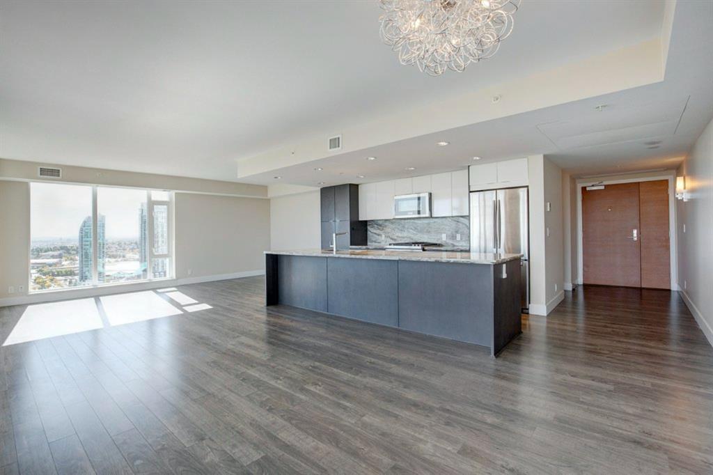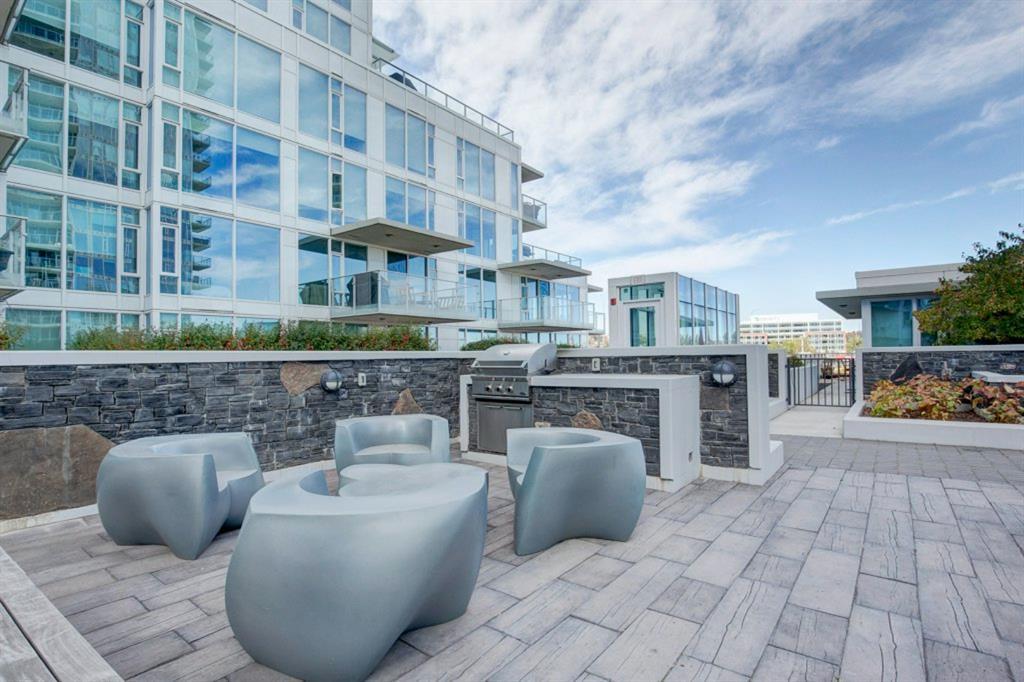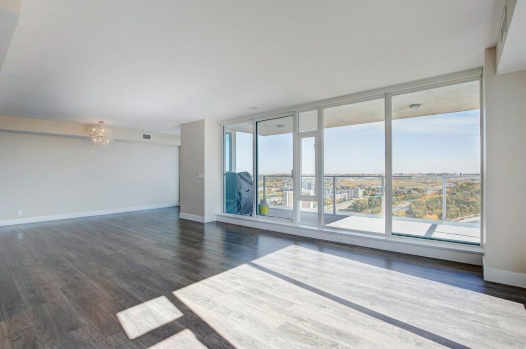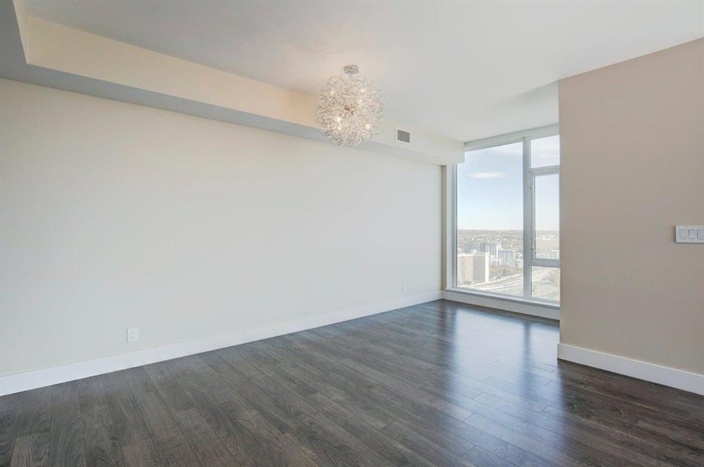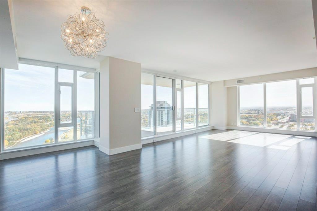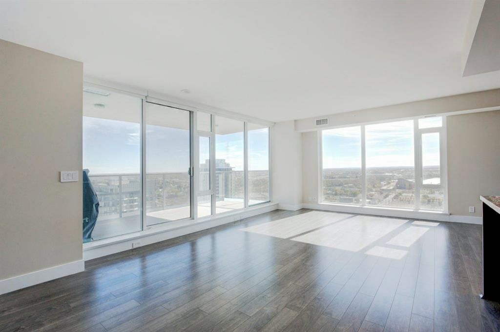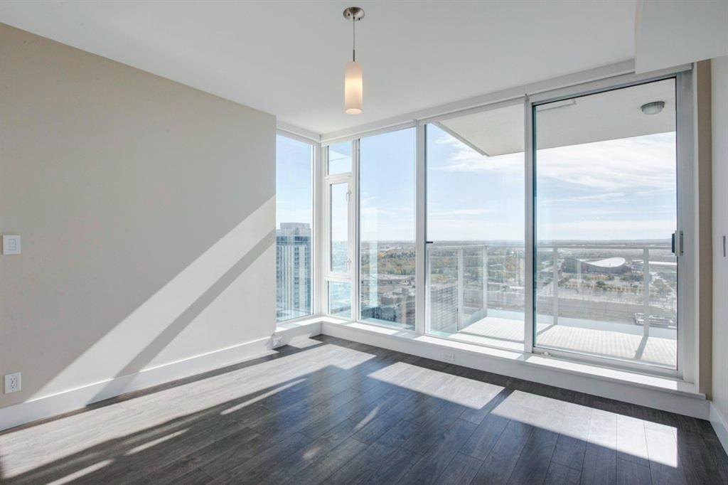 Stunning views from this two bedroom and den Sub-Penthouse 'Sky Suite' in Embassy Bossa's Evolution. Located in trendy East Village, 'connected to downtown with a distinct style of its own,' you can leave your vehicles in the underground tandem parkade and walk to all the amenities there are on offer. Cafe's, pubs, fine dining, river path system, parks, downtown and LRT are steps from your front door. Floor to ceiling windows showcase the Bow River Valley and downtown from the open concept kitchen with 12 foot island, stainless steel appliances and granite counters throughout. Oversized living and dining rooms with access to one of two spacious balconies (169 square feet). Two good size bedrooms, master with ample closet space and a luxurious 5 piece, spa-like ensuite, second bedroom with access to second balcony (93 square feet). For those working from home, there is a den tucked away from the main living space. Finishing throughout is top of the line, sleek and contemporary. Fantastic building with concierge, two gyms, party room and roof top terrace with BBQ. Look no further, this beautiful home completes your inner-city lifestyle. (id:22211)