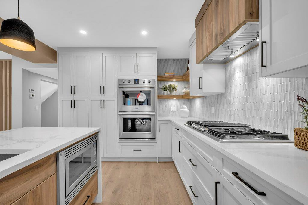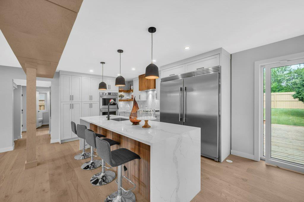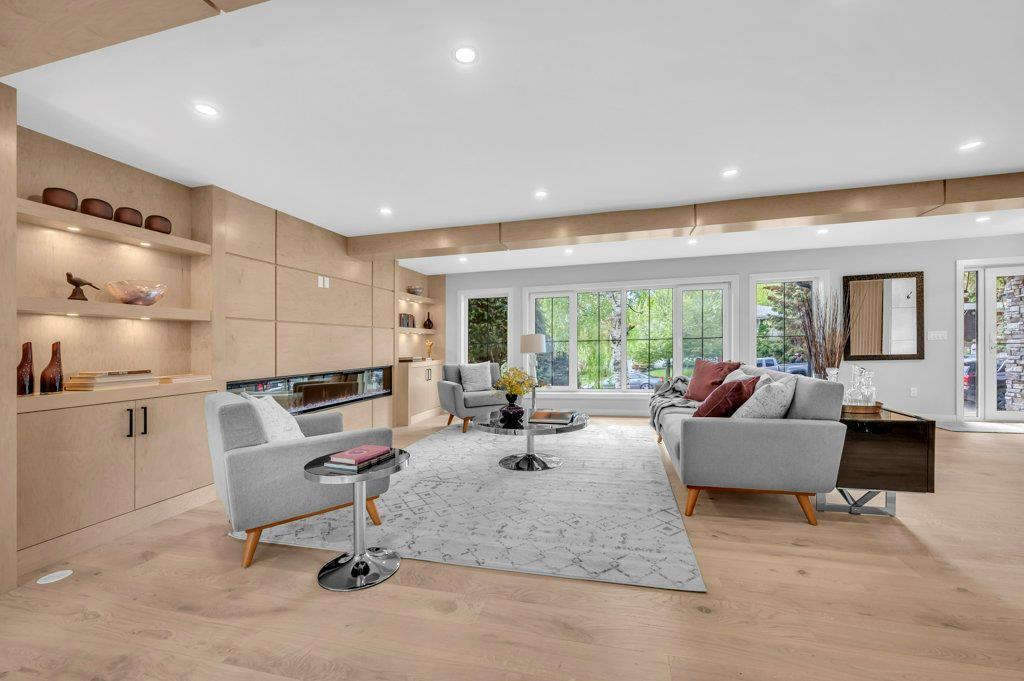 OPEN HOUSE SAT & SUN from 12 -2 pm. STUNNING UPSCALE RENOVATION / MATURE TREES / BACKYARD OASIS / OVERSIZED LOT / INSULATED AND DRYWALLED GARAGE / NEWLY OPENED FLOOR PLAN / BUILT-IN FEATURES / HIGH-END KITCHEN / PRIMARY SUITE WITH A LAVISH ENSUITE / FINISHED BASEMENT / WET BAR / INCREDIBLE LOCATION / AC ROUGH IN! A high-end renovation has elevated this family home into a casually elegant retreat. Entirely taken down to the studs and meticulously rebuilt into an open and airy sanctuary. Inside and out, top to bottom – no detail was spared in this incredible transformation. Stunning curb appeal immediately impresses with stone detailing, composite siding and sophisticated lantern lighting nestled amongst mature trees. The wow factor is continued inside where the main floor has been completely opened up, creating an open concept highlighted by natural wood elements. Sit back and relaxed in the inviting living room in front of the fireplace housed in a massive built-in media unit. Oversized windows stream in natural light while extra pot lights illuminate the evenings. The chef’s gourmet kitchen adds a glamourous flair to your culinary adventures featuring stone countertops, a waterfall edge breakfast bar island, an industrial sized fridge, built-in double ovens, a gas cooktop and a plethora of full-height cabinets. The adjacent dining room leads to the deck and backyard oasis encouraging a seamless indoor/outdoor lifestyle. A bedroom on this level makes a great den or is ideal for guests or anyone with mobility issues thanks to theer also being a 3-piece bathroom. Laundry with sink and a handy mudroom with built-ins complete this level. Retreat at the end of the day to the indulgent primary suite on the upper level with more than enough room for king-sized furniture, a custom walk-in closet and a lavish ensuite boasting dual sinks, a deep soaker tub and a huge, oversized rain shower. 2 additional spacious and bright bedrooms on this level, share the main 4-piece bathro om. Gather around the fireplace flanked by built-ins in the basement rec room. A separate gaming area and luxurious wet bar add to the allure of this casual entertaining space. A 5th bedroom is on this level along with another stylish bathroom. Host barbeques on the full-width rear deck while kids and pets play in the grassy yard. Insulated and drywalled the double detached garage safely parks vehicles out of the elements. This exquisitely designed home is in an outstanding location near every level of schooling including U of C, the LRT station, multiple shopping centres, several parks, the public library, a recreation centre and the always popular neighbouring Nose Hill Park. (id:22211)