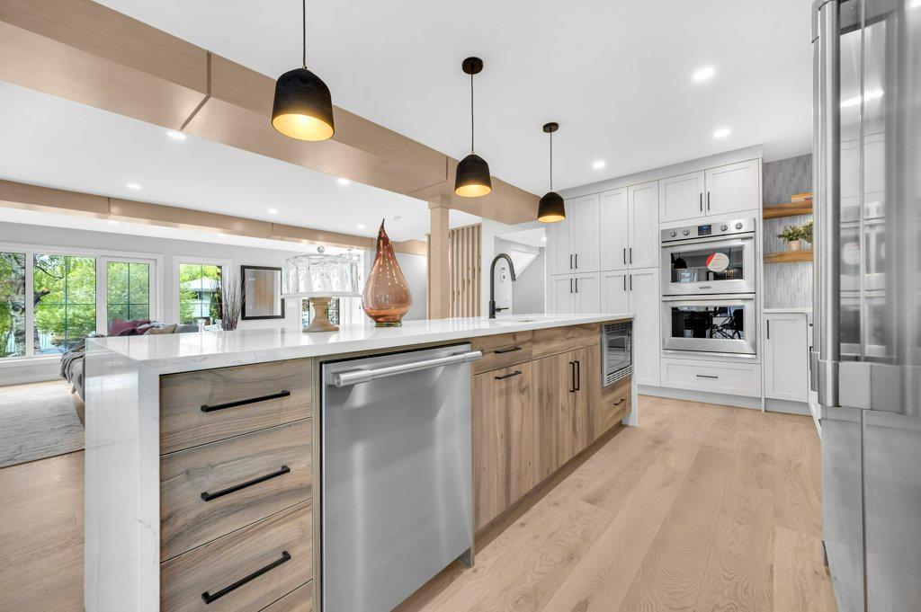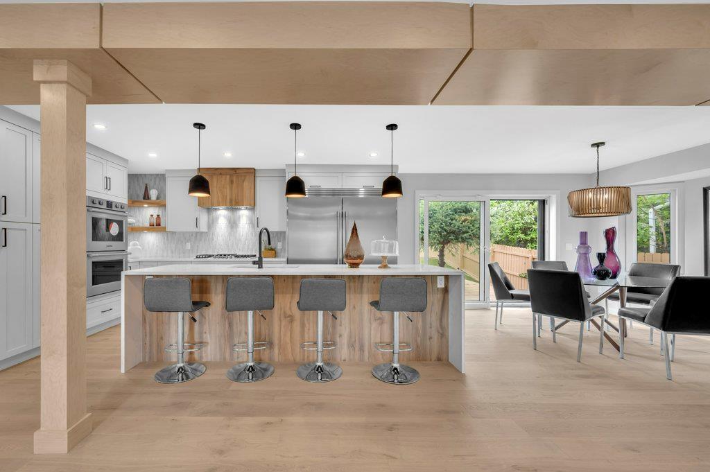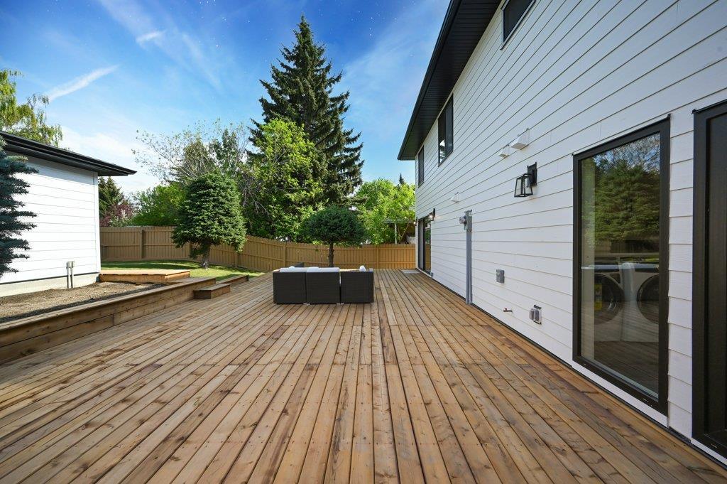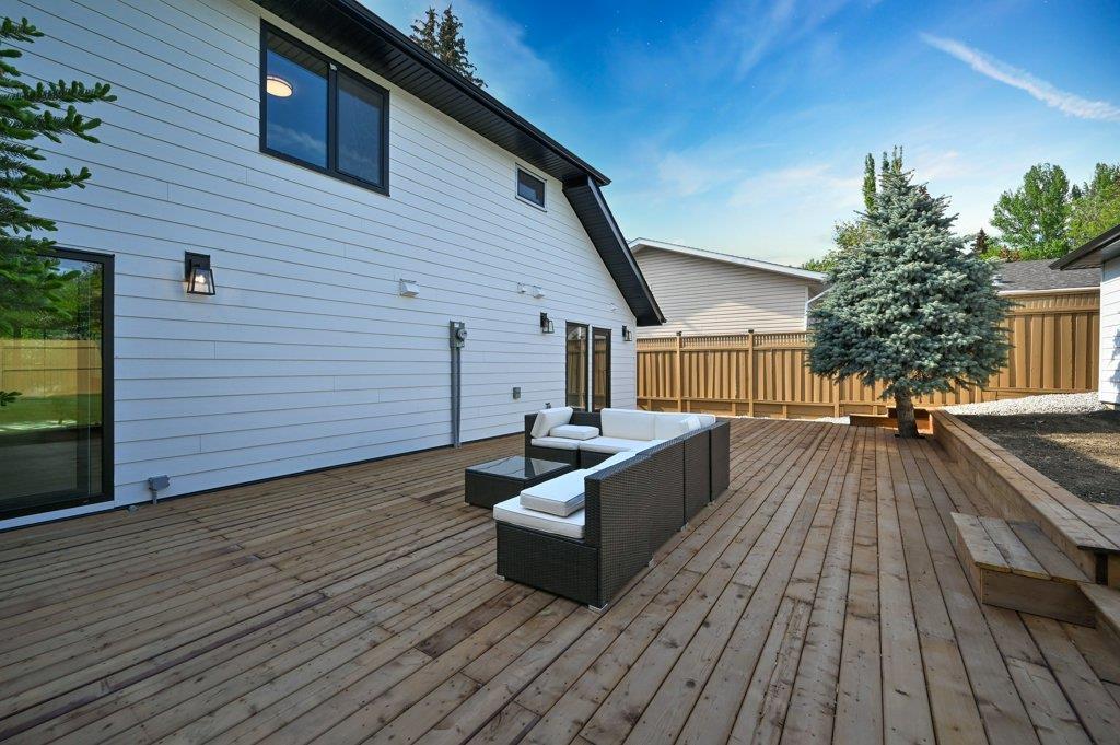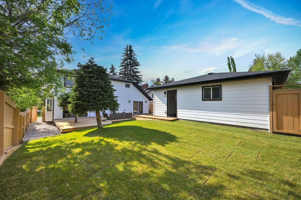 STUNNING UPSCALE RENOVATION / MATURE TREES / BACKYARD OASIS / OVERSIZED LOT / INSULATED AND DRYWALLED GARAGE / NEWLY OPENED FLOOR PLAN / BUILT-IN FEATURES / HIGH-END KITCHEN / PRIMARY SUITE WITH A LAVISH ENSUITE / FINISHED BASEMENT / WET BAR / INCREDIBLE LOCATION / AC ROUGH IN! A high-end renovation has elevated this family home into a casually elegant retreat. Entirely taken down to the studs and meticulously rebuilt into an open and airy sanctuary. Inside and out, top to bottom – no detail was spared in this incredible transformation. Stunning curb appeal immediately impresses with stone detailing, composite siding and sophisticated lantern lighting nestled amongst mature trees. The wow factor is continued inside where the main floor has been completely opened up, creating an open concept highlighted by natural wood elements. Sit back and relaxed in the inviting living room in front of the fireplace housed in a massive built-in media unit. Oversized windows stream in natural light while extra pot lights illuminate the evenings. The chef’s gourmet kitchen adds a glamourous flair to your culinary adventures featuring stone countertops, a waterfall edge breakfast bar island, an industrial sized fridge, built-in double ovens, a gas cooktop and a plethora of full-height cabinets. The adjacent dining room leads to the deck and backyard oasis encouraging a seamless indoor/outdoor lifestyle. A bedroom on this level makes a great den or is ideal for guests or anyone with mobility issues thanks to theer also being a 3-piece bathroom. Laundry with sink and a handy mudroom with built-ins complete this level. Retreat at the end of the day to the indulgent primary suite on the upper level with more than enough room for king-sized furniture, a custom walk-in closet and a lavish ensuite boasting dual sinks, a deep soaker tub and a huge, oversized rain shower. 2 additional spacious and bright bedrooms on this level, share the main 4-piece bathroom. Gather around the fireplace flan ked by built-ins in the basement rec room. A separate gaming area and luxurious wet bar add to the allure of this casual entertaining space. A 5th bedroom is on this level along with another stylish bathroom. Host barbeques on the full-width rear deck while kids and pets play in the grassy yard. Insulated and drywalled the double detached garage safely parks vehicles out of the elements. This exquisitely designed home is in an outstanding location near every level of schooling including U of C, the LRT station, multiple shopping centres, several parks, the public library, a recreation centre and the always popular neighbouring Nose Hill Park. (id:22211)