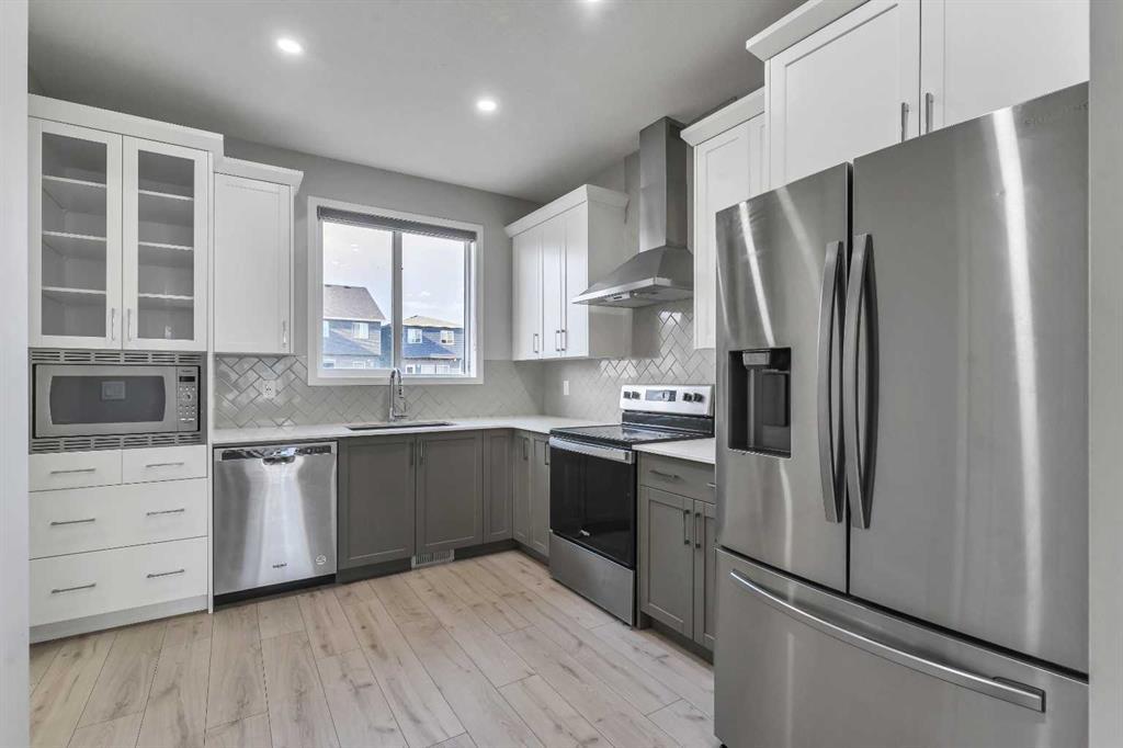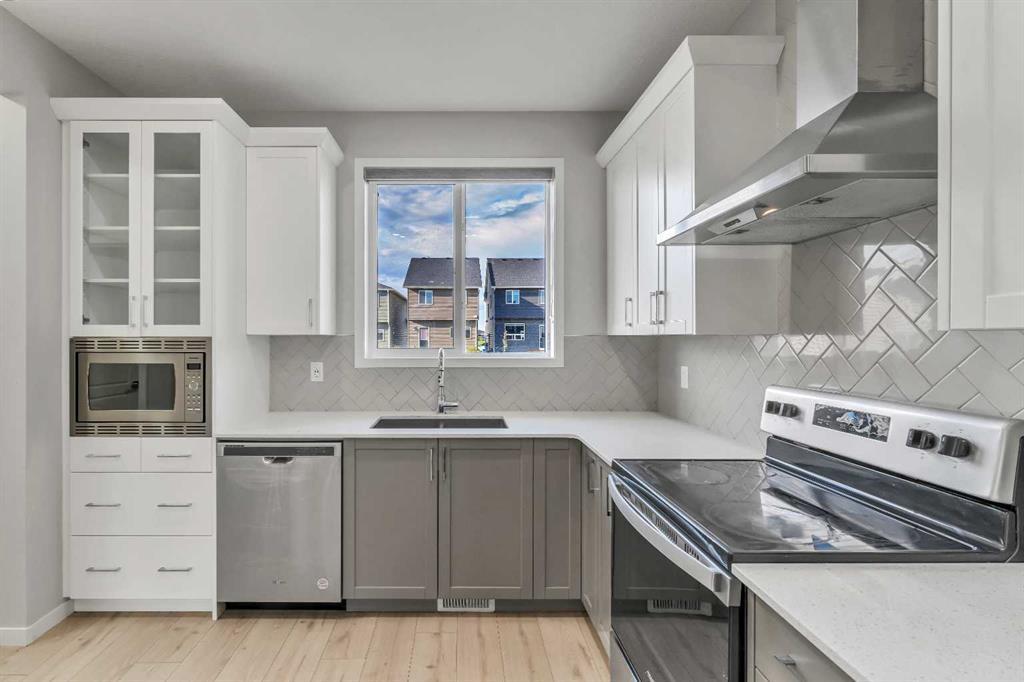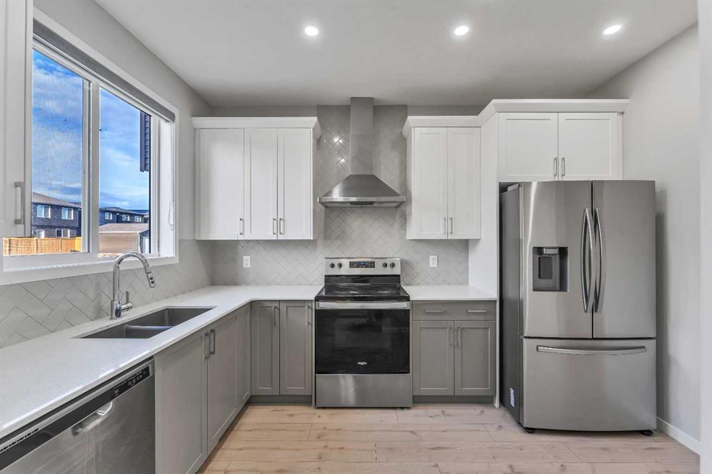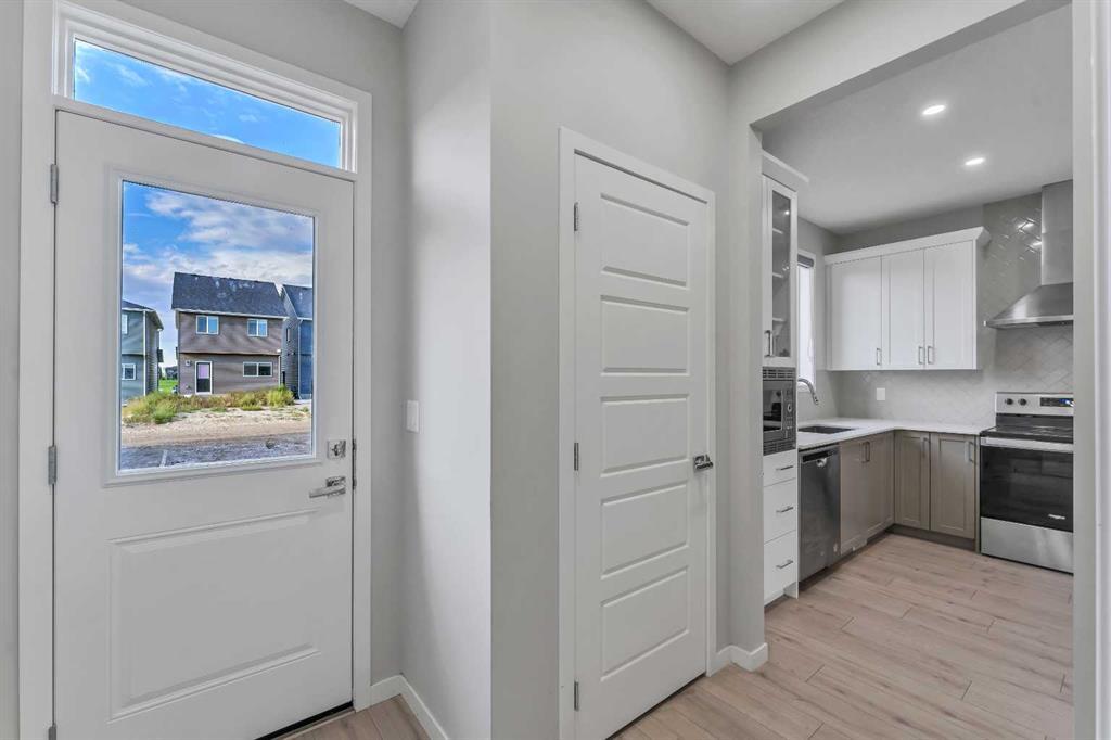 ***Open House Sunday Sept 10th from 11 am to 1 pm** Great location in desirable Cornerstone, NE. Newly built single family Morrison home is walking distance to Chalo Fresco Plaza in Cornerstone. This practical house features back kitchen layout with in-wall microwave, chimney hood fan, quartz countertops, upgraded fridge, open floor plan , 9' ceilings on main floor and big windows. Upstairs you have 3 generous size bedrooms including the 4 pc shared bathroom and primary bedroom with ensuite and WIC. Upgraded LED lighting with smart switches through out the house. Separate side entry leads to unfinshed basement with 9' foundation. (id:22211)