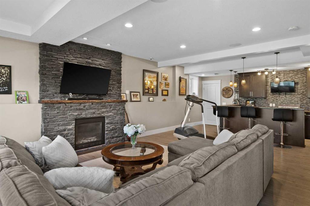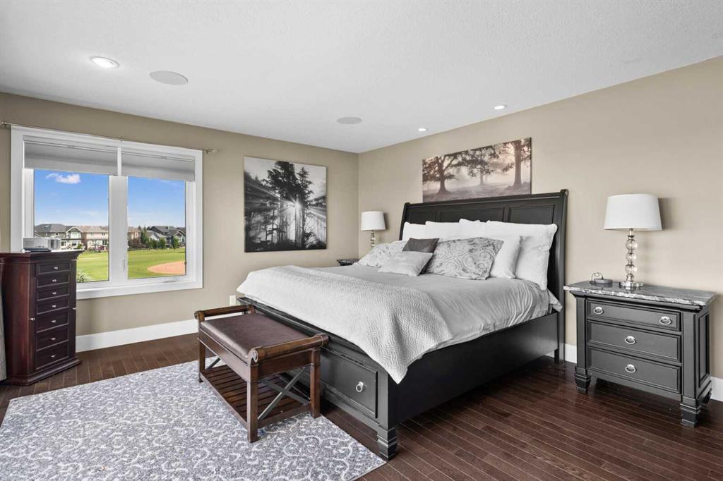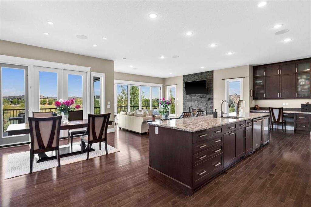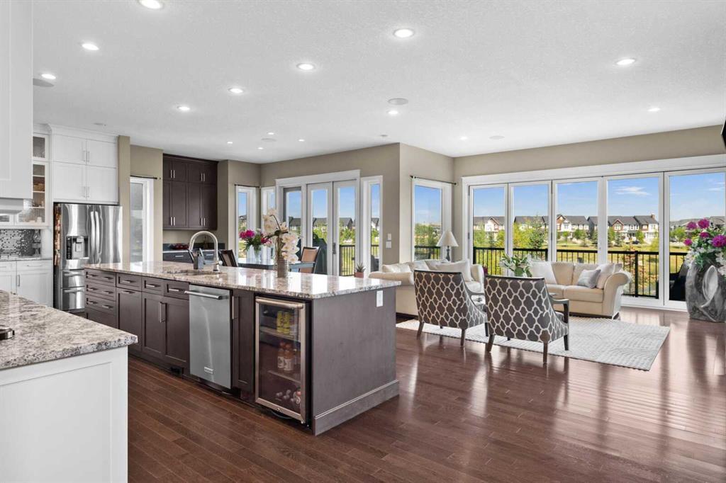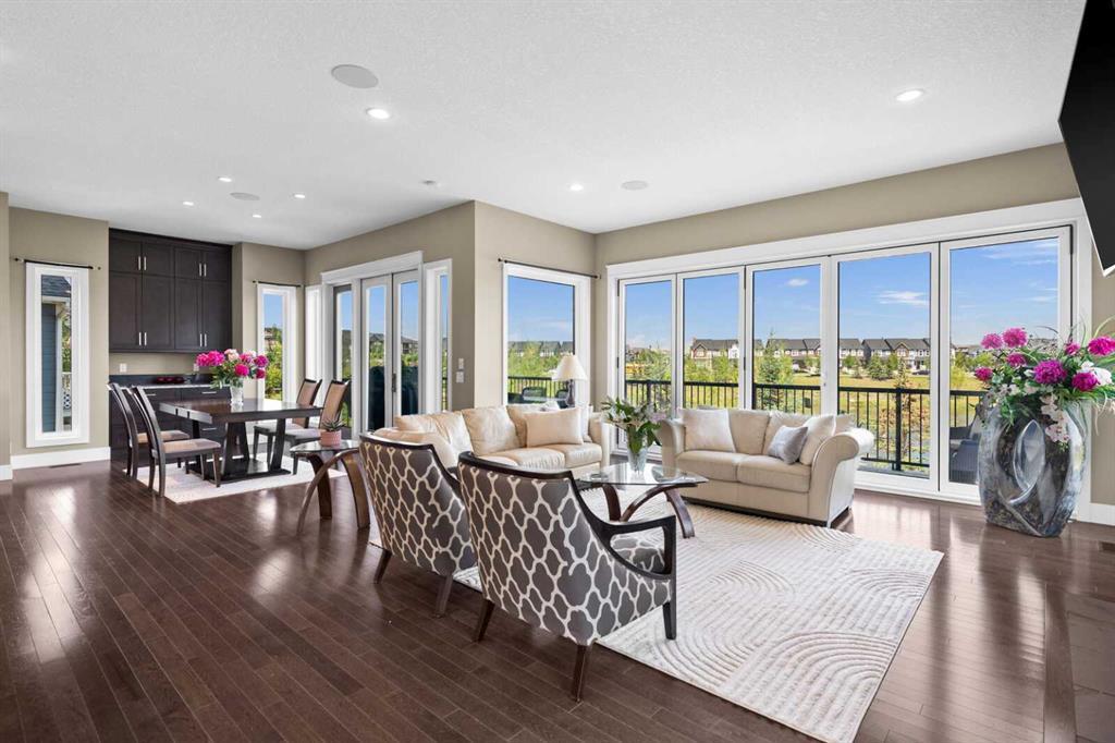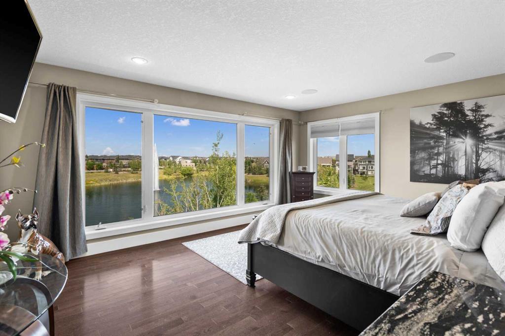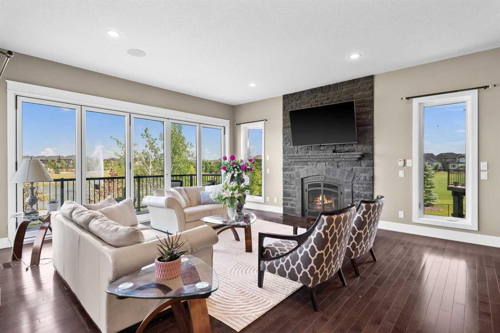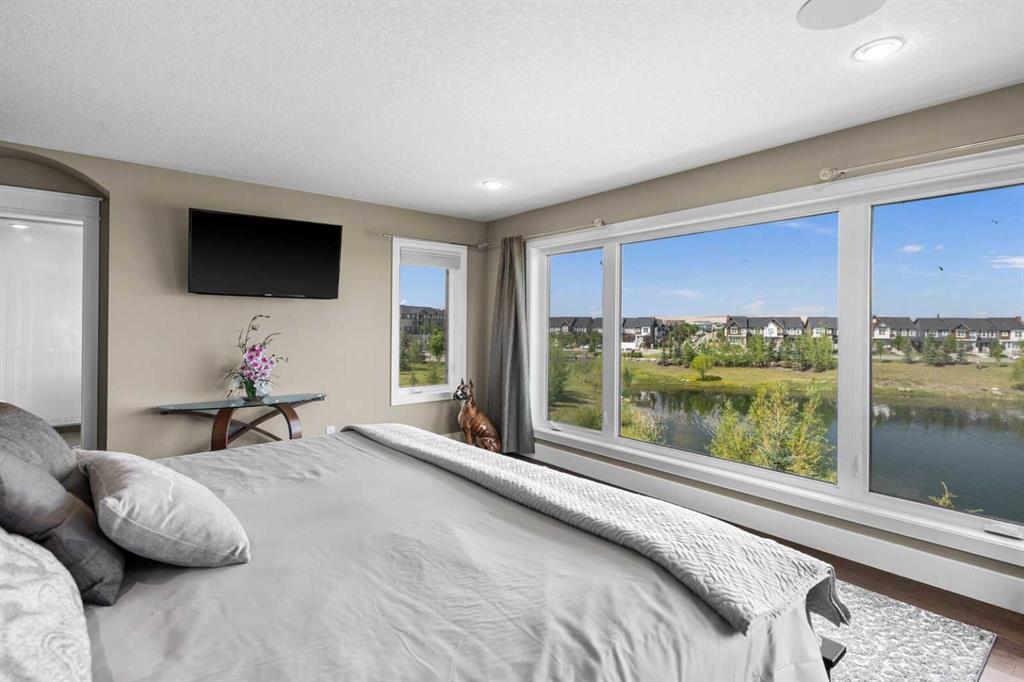 Situated on quiet cul-de-sac and backing onto a tranquil pond and park space with direct access from your walk-out lower level, this custom built home offers 4213 square feet of living space with 4 bedrooms plus bonus room and 4.5 bathrooms. This prime location at the end of a cul-de-sac ensures minimal traffic, while the back yard provides direct access to the pathway system and neighbourhood park with soccer fields, baseball diamond and a soon to be completed public school.Step inside to soaring 10 foot ceilings and spacious rooms - all thoughtfully designed to showcase the stunning views of the pond. Extend your living space outdoors and relax to the tranquil sounds of nature by fully opening the 15 foot bifold doors between the living room and spacious balcony spanning the width of the house. The incredible chefs kitchen has luxury design elements like the large 13 foot kitchen island with granite counter and pull-up seating, double ovens, walk-in pantry and a built-in hutch. On the upper level the primary bedroom has spectacular pond views with triple pane windows on three sides and a spa-like ensuite washroom with deep soaker tub, dual sinks, enclosed toilet and an oversized walk-in shower. There are two additional bedrooms upstairs- one with an ensuite washroom. All of the bedrooms feature walk-in closets. There is also a large laundry room, a family washroom and a spacious sunny bonus room with vaulted ceiling. Head down to the walk-out lower level where you'll find a fantastic entertainment room with 9 foot ceilings, full height stone fireplace, great views and access to the patio and back yard. The gorgeous wet bar has granite counters with seating making this the perfect room for hanging out with friends and family. A bright and spacious fourth bedroom has views of the pond, walk in closet and direct access to the full bathroom. The landscaped exterior has mature trees and perennials, while the over height garage offers loads of storage for all your o utdoor gear. Legacy is a well planned neighbourhood with an active community association. Enjoy several playgrounds, spacious parks, water features and a 300 acre environmental reserve. With great schools, shops and amenities as well as the nearby South Health Campus Hospital, this is the forever home you have been looking for. Make your move today and start living the life of your dreams. (id:22211)