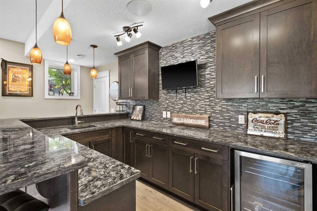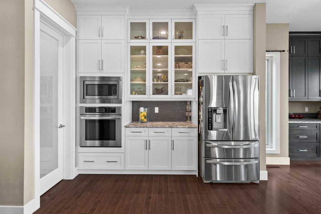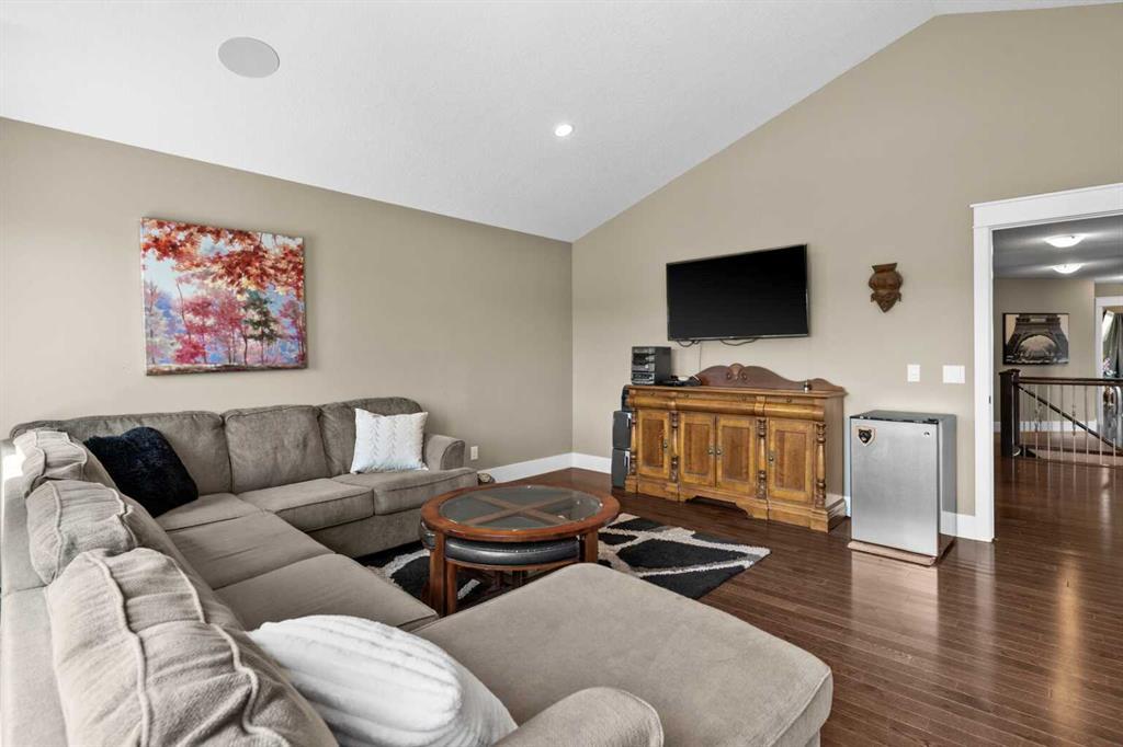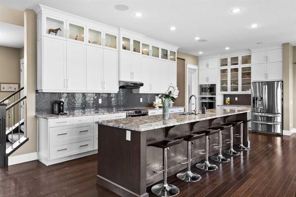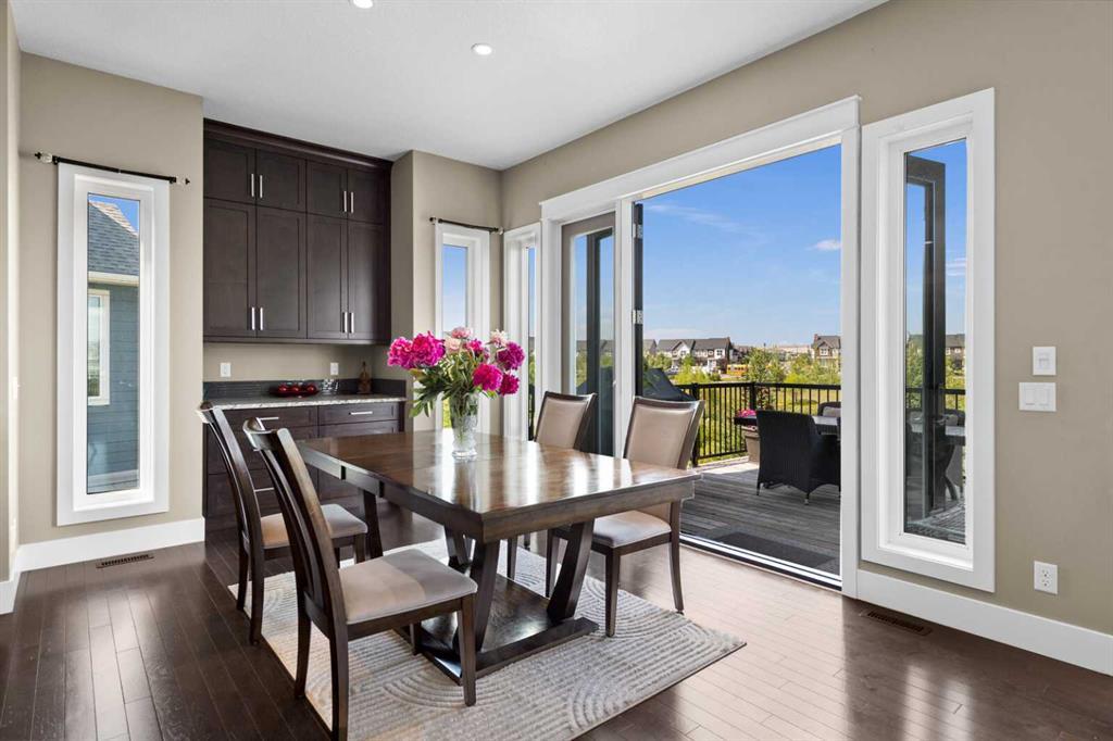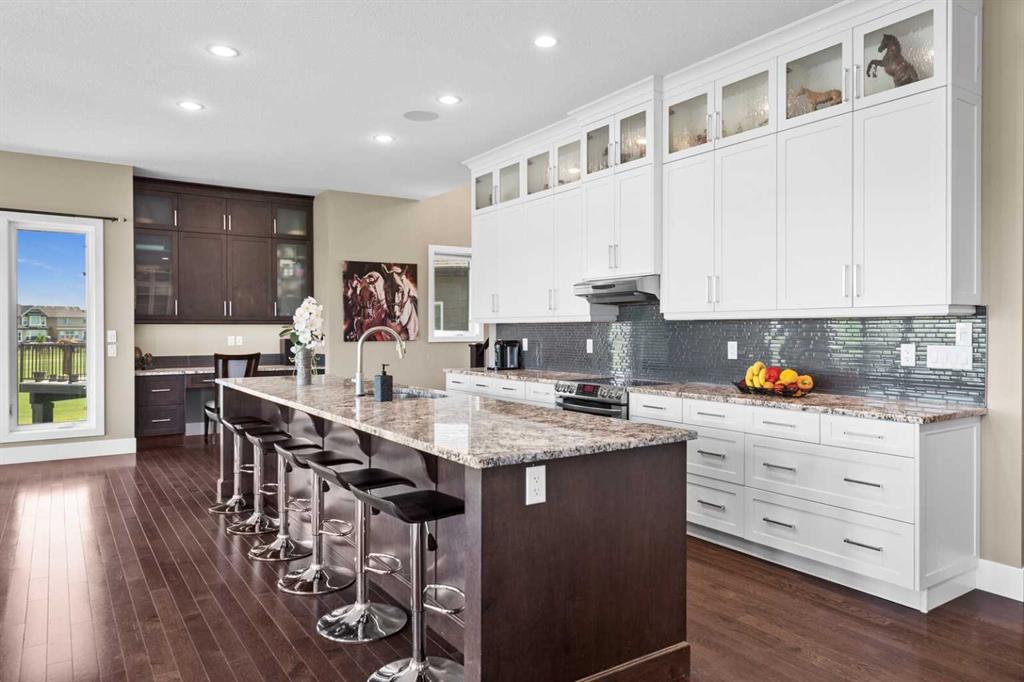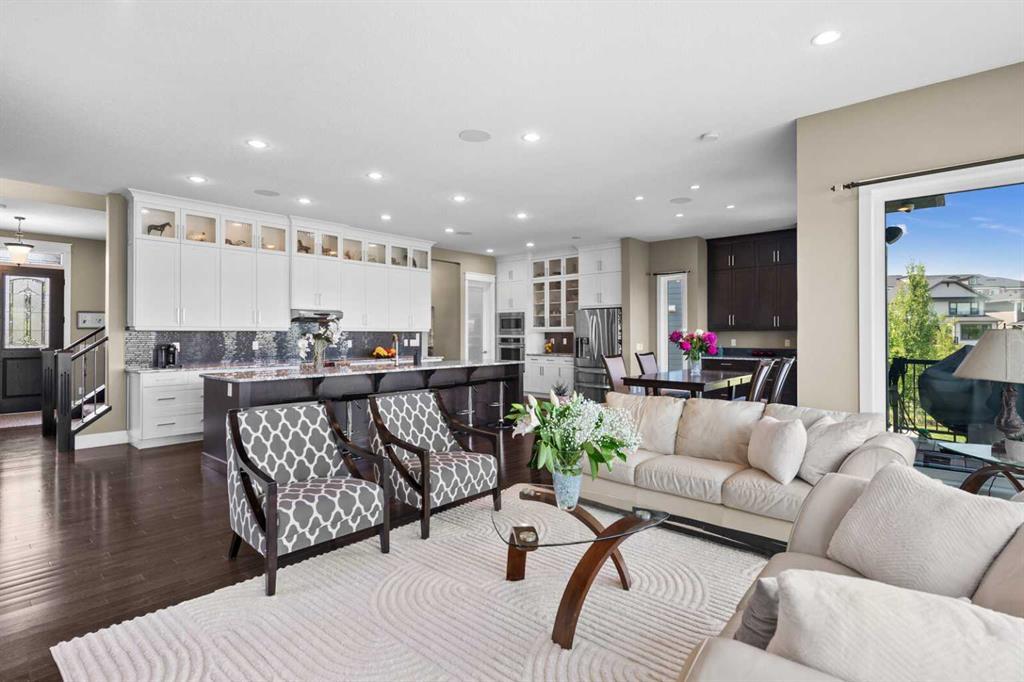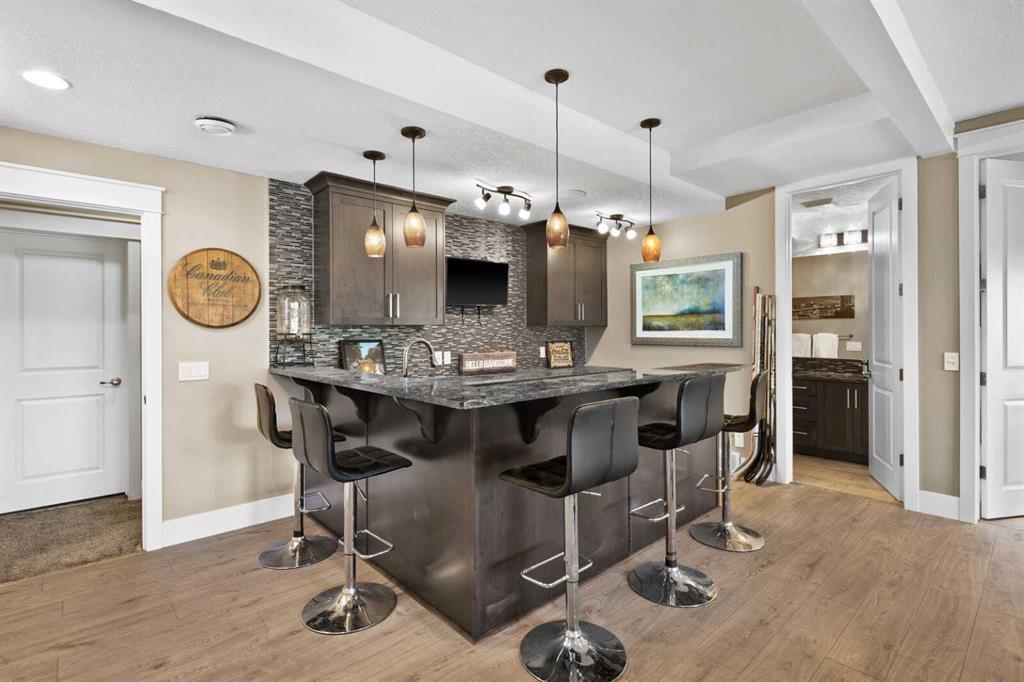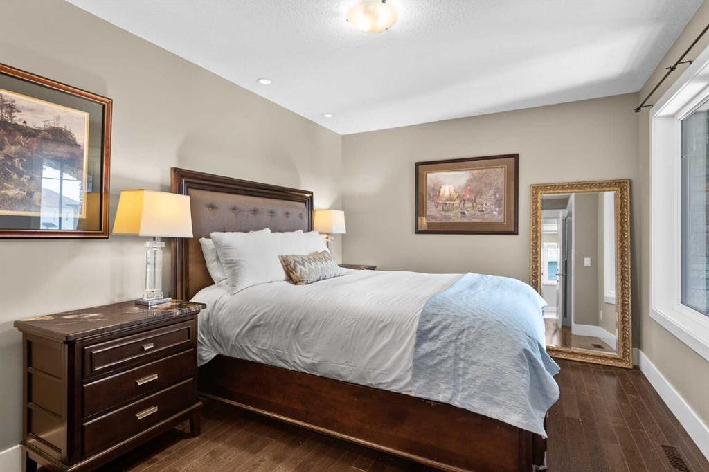 Situated on quiet cul-de-sac and backing onto a tranquil pond and park space with direct access from your walk-out lower level, this custom built home offers 4213 square feet of living space with 4 bedrooms plus bonus room and 4.5 bathrooms. This prime location at the end of a cul-de-sac ensures minimal traffic, while the back yard provides direct access to the pathway system and neighbourhood park with soccer fields, baseball diamond and a soon to be completed public school.Step inside to soaring 10 foot ceilings and spacious rooms - all thoughtfully designed to showcase the stunning views of the pond. Extend your living space outdoors and relax to the tranquil sounds of nature by fully opening the 15 foot bifold doors between the living room and spacious balcony spanning the width of the house. The incredible chefs kitchen has luxury design elements like the large 13 foot kitchen island with granite counter and pull-up seating, double ovens, walk-in pantry and a built-in hutch. On the upper level the primary bedroom has spectacular pond views with triple pane windows on three sides and a spa-like ensuite washroom with deep soaker tub, dual sinks, enclosed toilet and an oversized walk-in shower. There are two additional bedrooms upstairs- one with an ensuite washroom. All of the bedrooms feature walk-in closets. There is also a large laundry room, a family washroom and a spacious sunny bonus room with vaulted ceiling. Head down to the walk-out lower level where you'll find a fantastic entertainment room with 9 foot ceilings, full height stone fireplace, great views and access to the patio and back yard. The gorgeous wet bar has granite counters with seating making this the perfect room for hanging out with friends and family. A bright and spacious fourth bedroom has views of the pond, walk in closet and direct access to the full bathroom. The landscaped exterior has mature trees and perennials, while the over height garage offers loads of storage for all your o utdoor gear. Legacy is a well planned neighbourhood with an active community association. Enjoy several playgrounds, spacious parks, water features and a 300 acre environmental reserve. With great schools, shops and amenities as well as the nearby South Health Campus Hospital, this is the forever home you have been looking for. Make your move today and start living the life of your dreams. (id:22211)