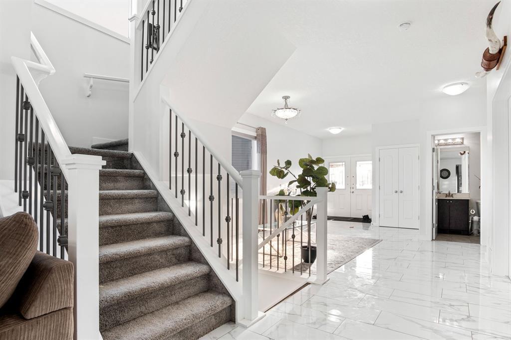 Welcome to this stunning 2018 home located in the heart of Redstone, where luxury meets modern living. This property boasts a large pie-shaped lot with a big back yard, perfect for entertaining guests or enjoying quiet nights in. The walkout basement provides even more living space and easy access to the beautiful landscaped yard. The chef-inspired kitchen is the centerpiece of the main floor, with an open concept design that seamlessly connects the living and dining areas. The modern design of the home is further accentuated by the beautiful marble flooring, vaulted ceilings and elegant finishes throughout. A butler's kitchen provides the perfect space for meal preparation and storage, while the 2900 sqft of above-grade living space offers plenty of room for a growing family. With 4 bedrooms and 4 bathrooms, this home has ample space for everyone. The master suite is a true oasis, featuring a 5 pc ensuite and a beautiful balcony to enjoy the views of the back yard. The landscaped yard is perfect for summer BBQs and outdoor entertaining. This prime location is just steps away from shopping, restaurants, and stores, providing easy access to all of the amenities you could want. Don't miss out on the opportunity to call this stunning property your dream home! (id:22211)
