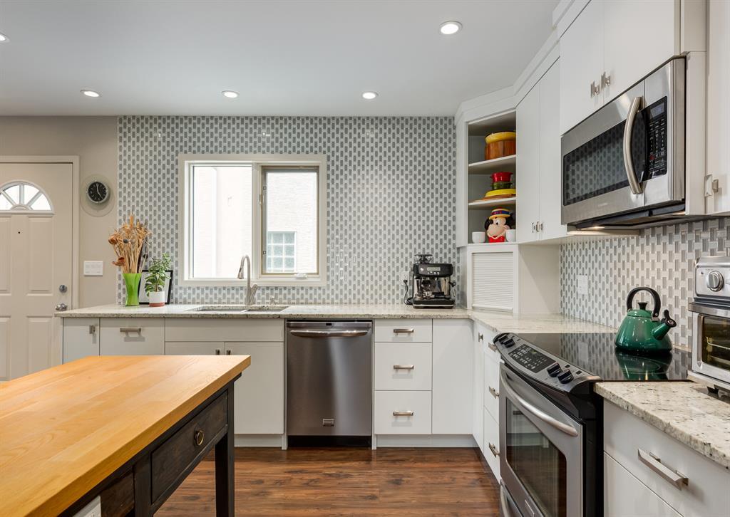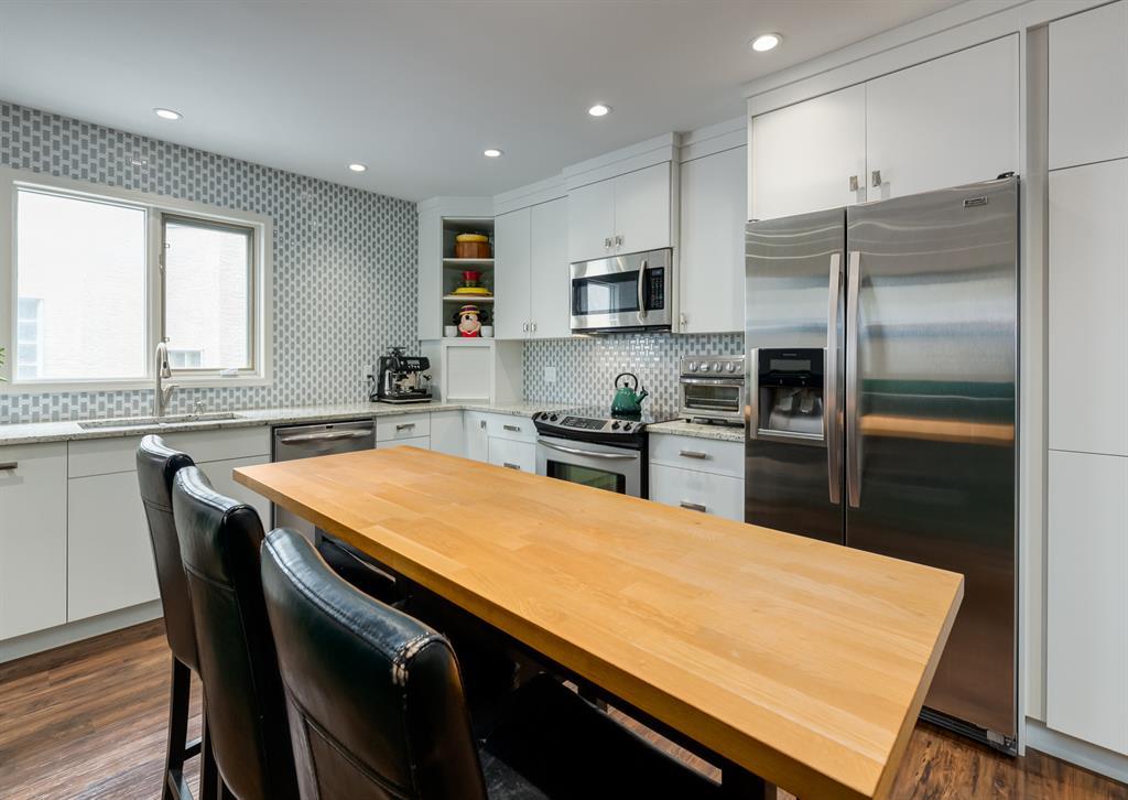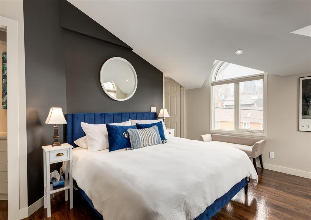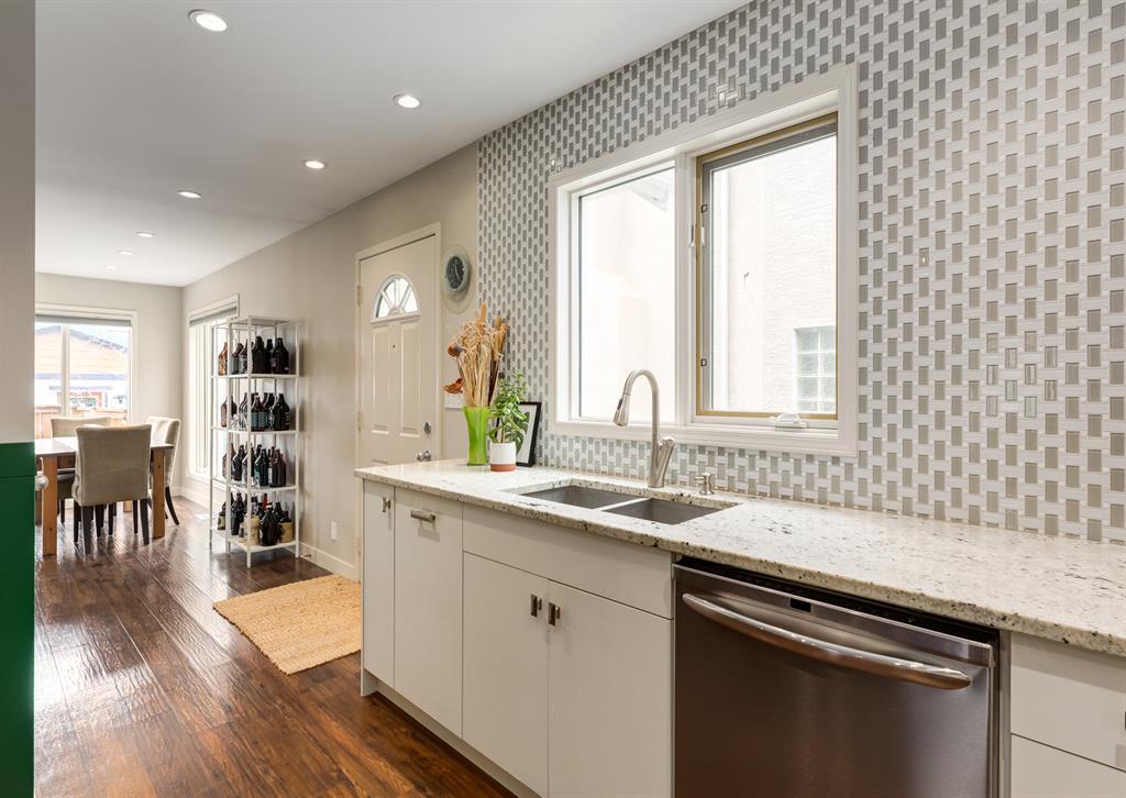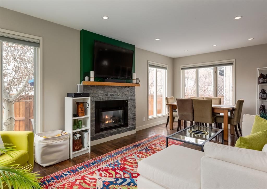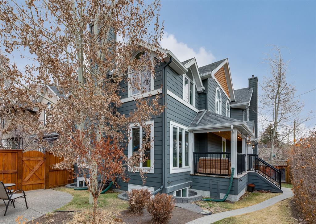 Ideally located inner city with subtle garden screening, this immaculate home and landscape are kept private and secure. Features include a set for summer front porch opening to a spacious foyer, a grand Euro kitchen with granite countertops, stainless steel appliances, a pantry, and a chef block cutting board sit-at-island. The living room with a stone-faced gas fireplace and adjacent dining room make entertaining easy. Many South and West windows allow abundant light on all levels. Two primary bedrooms are upstairs, with grand vaulted ceilings, huge walk-in closets and full ensuites. The fully developed lower level includes a third bedroom, a full bath, a large family room and laundry. The park-like yard offers exposed concrete sidewalks and patio, a new fence, and access to the oversized single garage. This catch of a home is within walking distance of greenspaces, Kensington, the Bow River Pathway, Prince's Island Park and downtown. (id:22211)