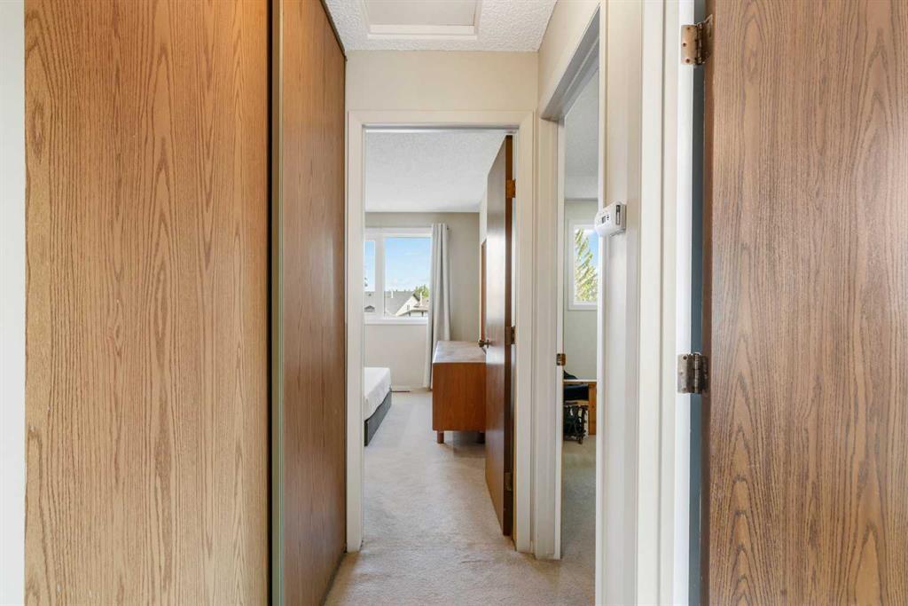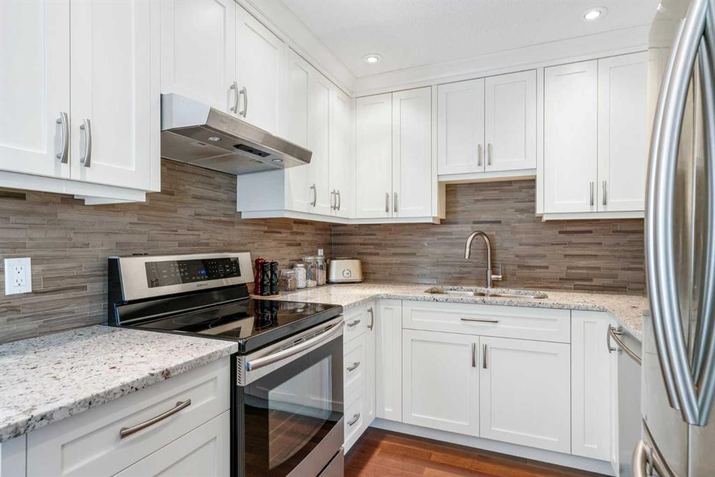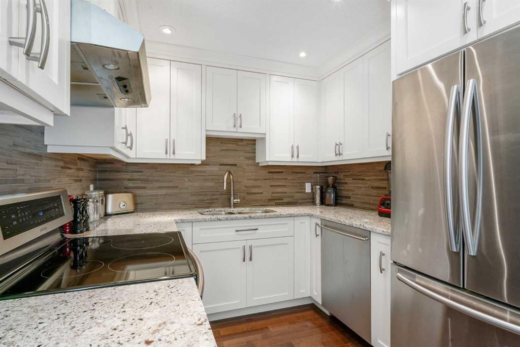 NO CONDO FEES! IMMACULATE, SEMI DETACHED, FRONT UNIT of front & back DUPLEX condominium in prime Cul-de-Sac location. This unique property is registered as Conventional condo with just two units, for access & insurance purposes only. Pride of ownership is evident in this UPDATED 2 Bedroom, 2 Story with over 1150 sq ft of developed living space, including basement. Cooks will love the well laid out kitchen with Full Height Custom White cabinetry (not Ikea), marble tile back splash & 1.5 inch Granite counters, SS Samsung Appliances (Bosh dishwasher) & pot lighting. Gleaming Canadian Maple Hardwood Flooring on the main. Upper level boasts two generous bedrooms + an UPDATED 4 pc Bathroom. ABUNDANT NATURAL LIGHT Throughout. Basement features a Family Room, 2PC Bathroom, laundry area. UPDATED FURNACE in 2013. TRIPLE PANE LUX WINDOWS July 2021. SHINGLES 2 YRS. EXPOSED Aggregate patio, partially fenced+ common area. Close to bus, and Millrise LRT Station, Sobeys, & lots of shopping just mins drive. (id:22211)