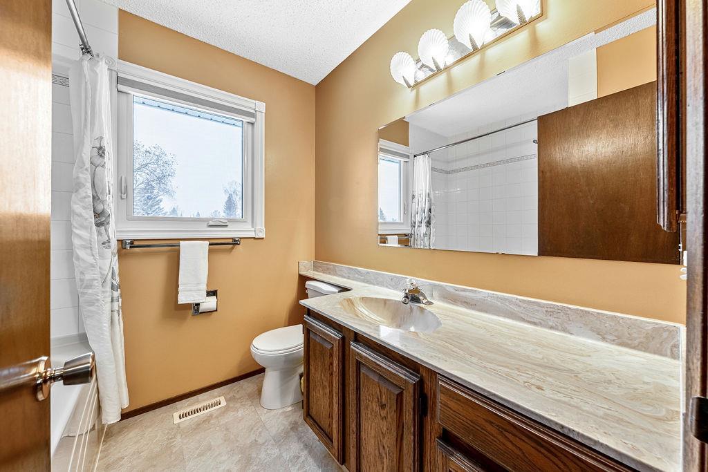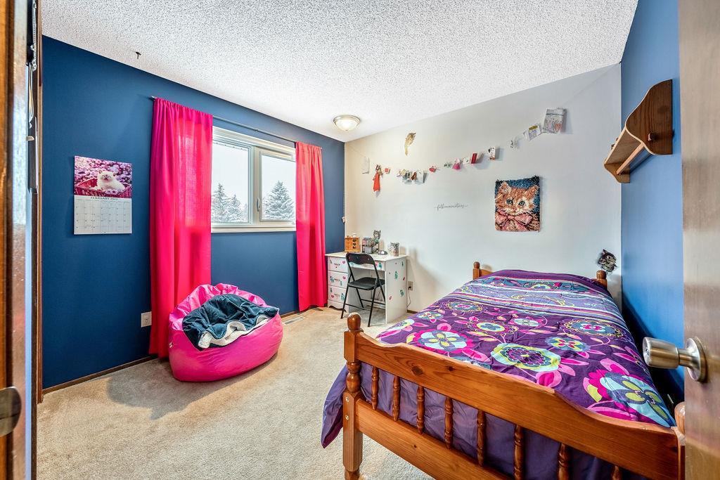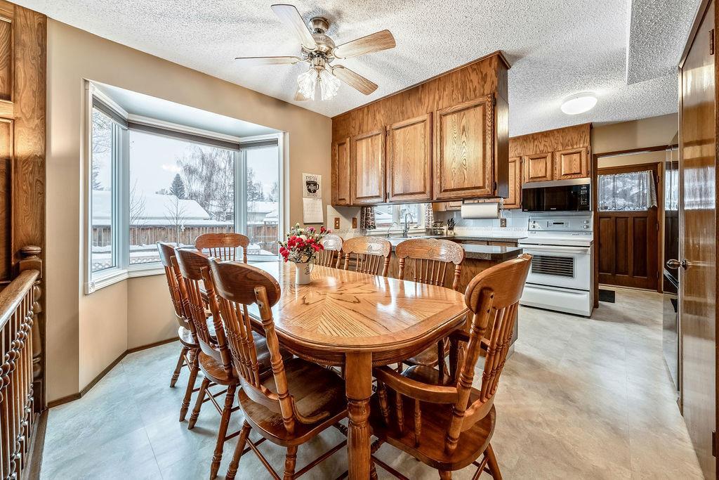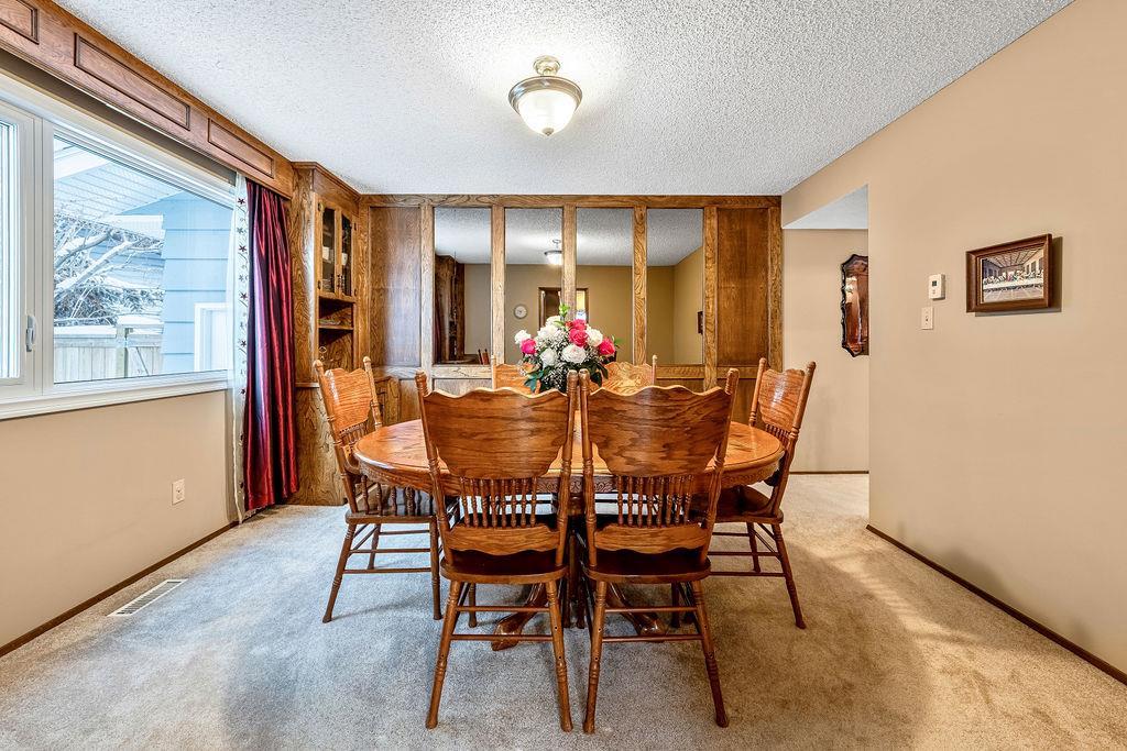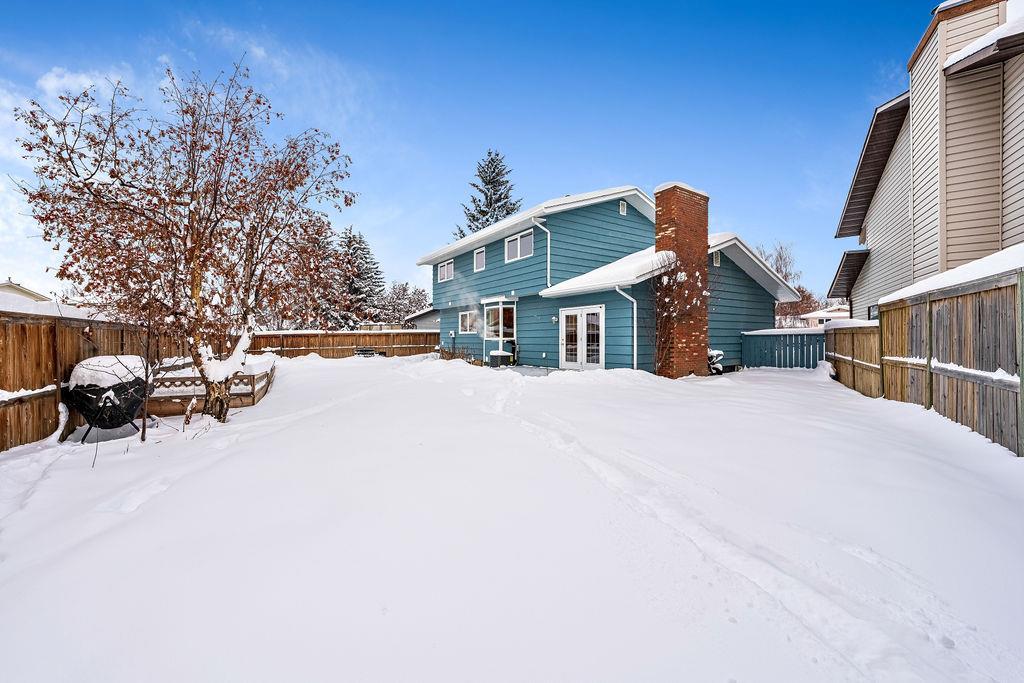 Welcome home to this beautiful two storey home located in a quiet cul-de-sac! Main floor features oversized front entrance, large living room with bay windows, spacious kitchen enjoys updated counter-tops, white appliances and breakfast nook. Sunken family room boasts wood burning fireplace (gas log lighter), custom built-ins and patio door to backyard. Formal dining room, 2pc powder room and laundry/mud room complete this level. Upper floor includes four generous sized bedrooms, 3pc ensuite off the “King-sized” primary bedroom with dual closets. Basement is fully finished that enjoys re/game room, two extra bedrooms with upgraded fire egress windows, 3pc bath and storage room. Note: Triple pane vinyl windows (2019), high efficient furnace & central air conditioning (2011), asphalt roof shingles (2012), paved back alley and RV parking with hinged fencing. Fabulous “pie shaped” lot that is fully landscaped & fenced, perfect for kids and everyday living and room for a second garage (city approval). Walking distance to schools, public rapid transit, shopping, playgrounds and Fish Creek Park. Exceptional family home! Unsurpassable location!! (id:22211)