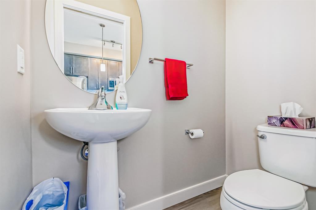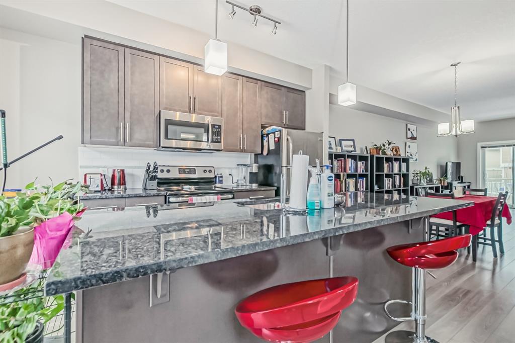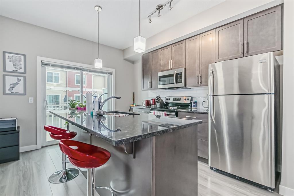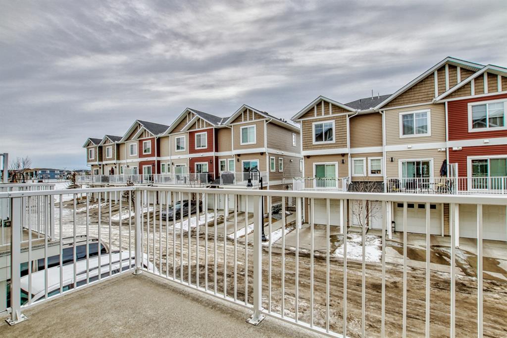 BACK ON MARKET!!! OPEN HOUSE THIS SUNDAY MARCH 5, 2023 FROM 2-4 PM!!!! This sophisticated townhouse promotes a convenient, low-maintenance lifestyle with over 1,330 sq. ft. of contemporarily designed space, 2 balconies, 3 bedrooms, 2.5 bathrooms and an unsurpassable location within the master-planned community of Redstone. Park your vehicles in the insulated and drywalled double attached, tandem garage and proceed into the entry level where the foyer stores away the seasonal clutter. The open and bright main floor perfectly blends style with function while large windows stream in an abundance of natural light. Sit back and relax in the welcoming living room or on the adjacent balcony encourages a seamless indoor/outdoor lifestyle. Centring the open concept space is the dining room with plenty of room for family meals and entertaining. Culinary adventures are inspired in the gorgeous kitchen featuring granite countertops, stainless steel appliances, full-height cabinetry and a large breakfast bar island inviting everyone to gather around. Enticing summer barbeques is the second balcony off the kitchen with sunny south exposure. A handy powder room and a fantastic office nook, great for catching up on emails, working from home or a tucked away study space complete the main level. Laundry is conveniently located on the upper level along with 3 spacious bedrooms and a 4-piece family bathroom. The primary suite has its own ensuite, no more sharing! Combining beauty with function the complex offers great curb appeal, tons of visitor parking and is surrounded by a huge field, a park and extensive walking paths. This innovative, family-oriented community also boasts two new school sites, a brand-new commercial development, multiple parks and green spaces plus easy access to Stoney Trail and Country Hills. Mere minutes away are Cross Iron Mills, Costco, the airport and much more! Simply a fantastic home in an unbeatable location! (id:22211)