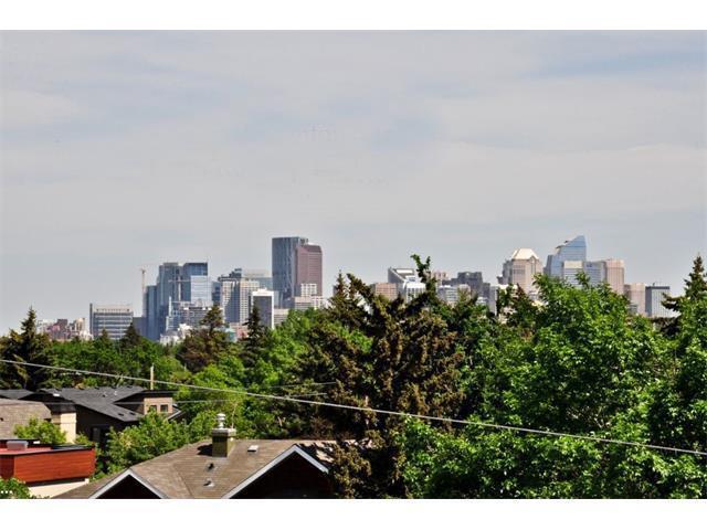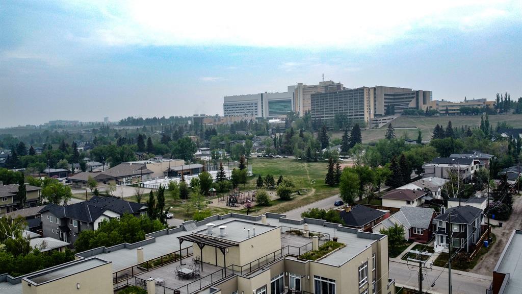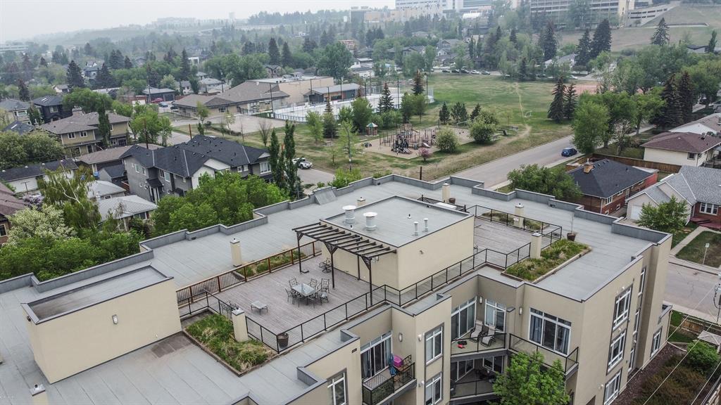 TOP floor 2 Bedroom/2 Bath, 1047 Sq Ft. condo in trendy boutique building "The Riverton", just MINS WALK to FOOTHILLS Medical Centre & the BOW River in sought after Parkdale. Entertaining made easy in this contemporary, open plan design. Cooks will love the kitchen, featuring a large Granite Island with full height cabinetry, Stainless appliances & Ceramic flooring. Gleaming Hardwoods in the Great room boasting 9 FT Ceiling. Spacious Principal suite with 5pc ensuite, (room for a King bed), w/Lg closet. INSUITE Laundry & Storage. Non pet, non-smoking home. Abundance of windows + Sliding Doors to Large NW balcony with GAS BBQ outlet. INFLOOR HEATING. TITLED, Underground Parking + EXTRA assigned Storage, & Bike lockup. Take some relaxation time in the common area "ROOF TOP patio with expansive DT & RIVER VIEWS. Pets welcome with board approval. Prime location, suitable for all ages, featuring walking & bike paths with just a short walk to the community center, gardens, hockey rink, shopping & transit. Enjoy a treat at the fabulous Ice Cream shop or the well-known landmark cafe, just a few blocks away. Close to U of C plus quick access to Downtown. Immediate occupancy! (id:22211)