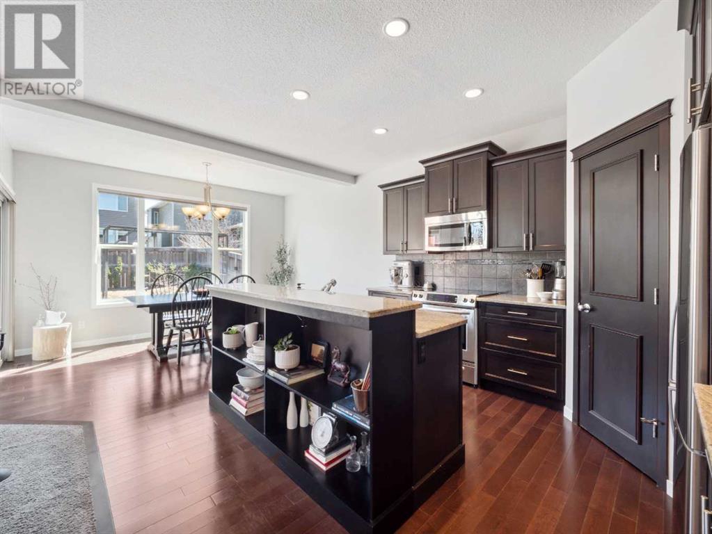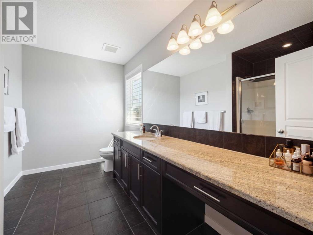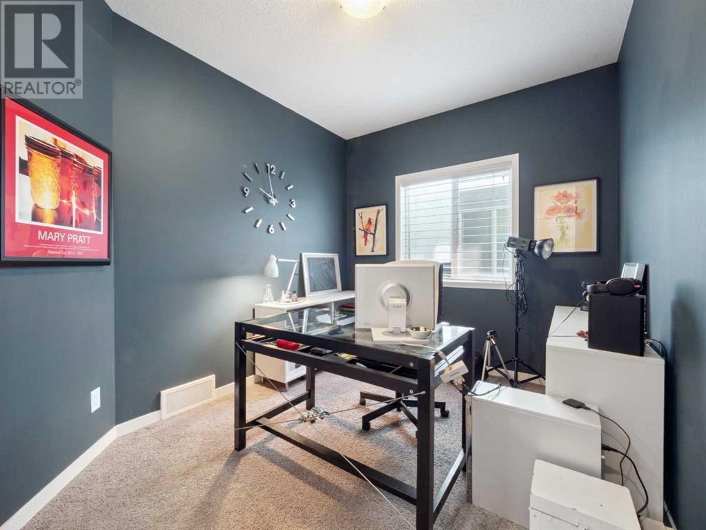 The only thing better than living on the lake is living a block’s walk away. This stunning 2100 square foot house is impeccable and the moment you step through the front doors you will want to make it your new home. The kitchen has outdone itself with granite countertops, S/S appliances, and a corner pantry that’s worth it’s own special photo op. Wall to wall windows show off the landscaped SW facing yard featuring newly seeded drought resistant grass, Calgary-friendly perennial fruits, herbs, and ornamentals (cherries, apples, dwarf crabapple (front of house), strawberries, blueberries, tarragon, lovage, oregano, lavender, sage, lemon balm, chives for the fruits/herbs). The open concept main level features a living room with gas fireplace, spacious dining area, office, laundry and powder room. Upstairs, you'll find three generous bedrooms, an ensuite with an extra-large shower, and a bright bonus room. Don't overlook the home's media/smart wiring system, 8-pound underlay, roughed-in plumbing in the basement, roughed-in vacuum system, deck with a BBQ gas line, front-load washer and dryer, custom blinds, and more. The garage is a dream for any handyman, offering ample space for work and storage. Situated close to the South Health Campus hospital, Lakeshore school, Prince of Peace Catholic school, shopping facilities, and public transportation. (id:22211)