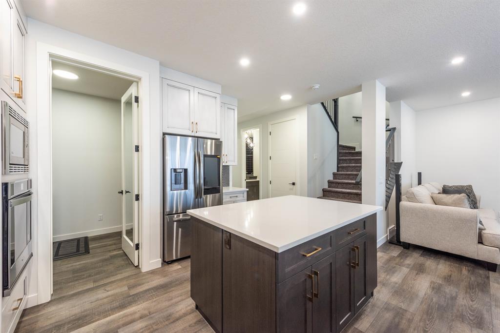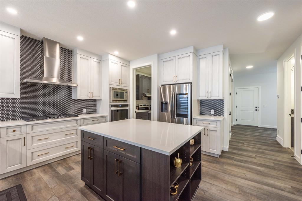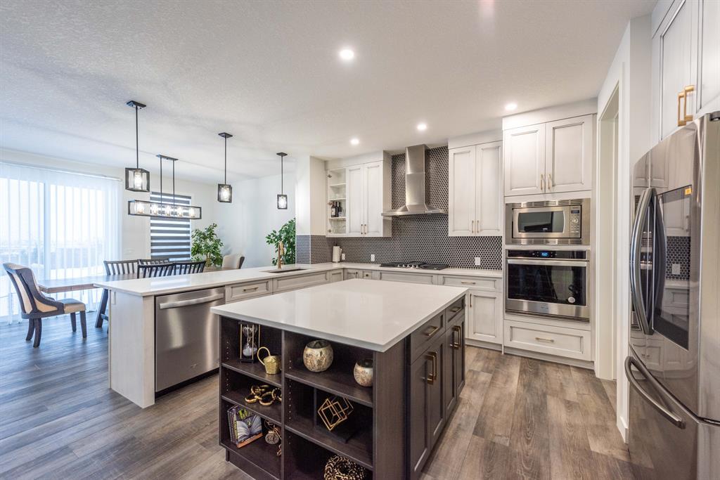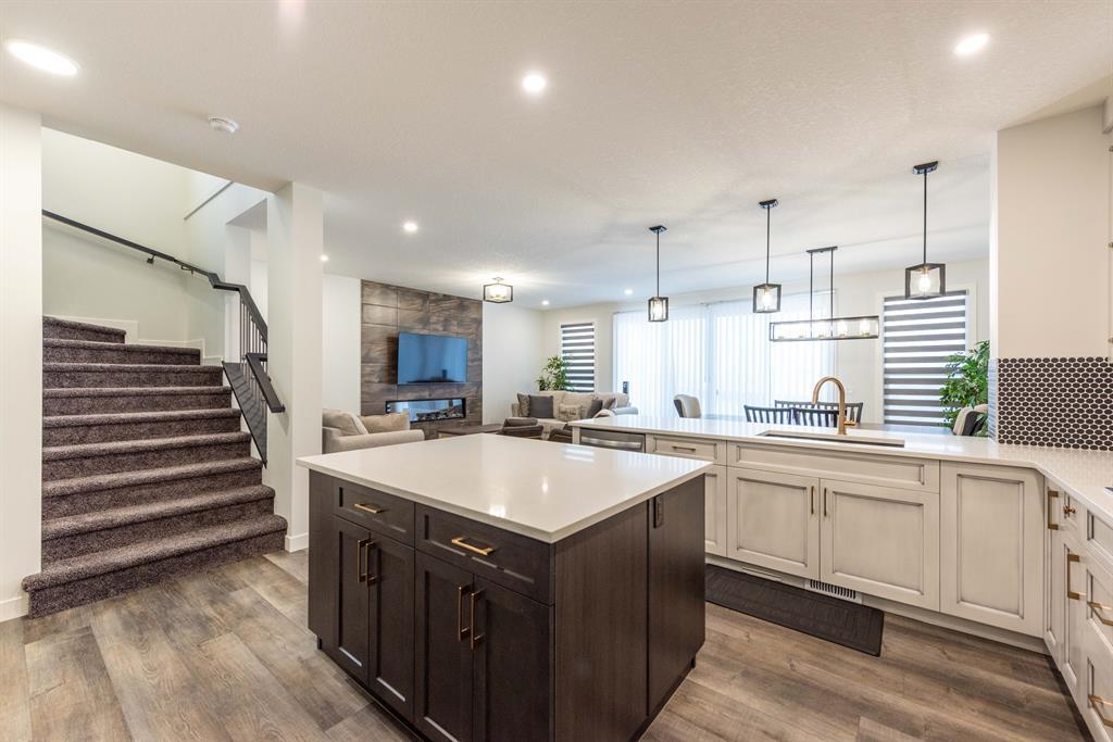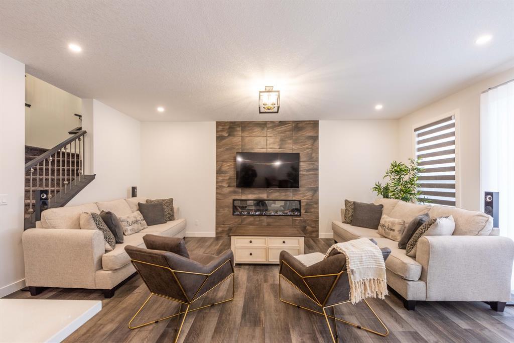 Welcome to this stunning customized home built by the award winning '"Sterling Homes" in a sought after community of REDSTONE. With just under 2800 SQFT of living space, this home has it all! Luxurious FRENCH MAIN DOOR welcomes you to this gorgeous double attached front garage property, you'll be mesmerized by the open concept this home has to offer. The main floor den gives you an opportunity to customize the space to your lifestyle (home office etc.), whether it be a formal dining room or living room to entertain your guests. The main floor features a 3 piece bathroom including a stand-up shower. Walk your way into the enormous chef's kitchen, this definitely will provide you the ability to host guests & entertain them with your culinary skills!! This includes all ENERGY STAR qualified stainless steel appliances!! The huge island gives you plenty of space to please your friends and family! The spice kitchen with the pantry is the perfect space to do your everyday cooking or to fulfill & exercise your culinary ideas & skills! Enjoy the beautiful colour changing fire place located in the spacious family room, ideal to simply just get together for a family night. Lead your way to the second floor, featuring 4 bedrooms, 2 washrooms including an ensuite in the Primary Master Bedroom, and a massive bonus room, a great area for kids to relax , play games or enjoy movie nights! The primary suite has a huge walk in closet and an ensuite washroom with an amazing bathtub to wind down after a long work day! The laundry is also conveniently located on the second floor. The basement with sperate/exterior entry & large egress windows, is a clean slate & gives you the opportunity to transform this space for additional area to host and entertain! The pie shaped lot gives you plenty of green space in your very own backyard, an ideal space for kids and pets or to host a BBQ or a party. The backyard also comes with a rough in for your very own hot tub! This property is located clos e to schools, but stops, and grocery stores. This property will not last long, so make sure you get a look while you can!! (id:22211)