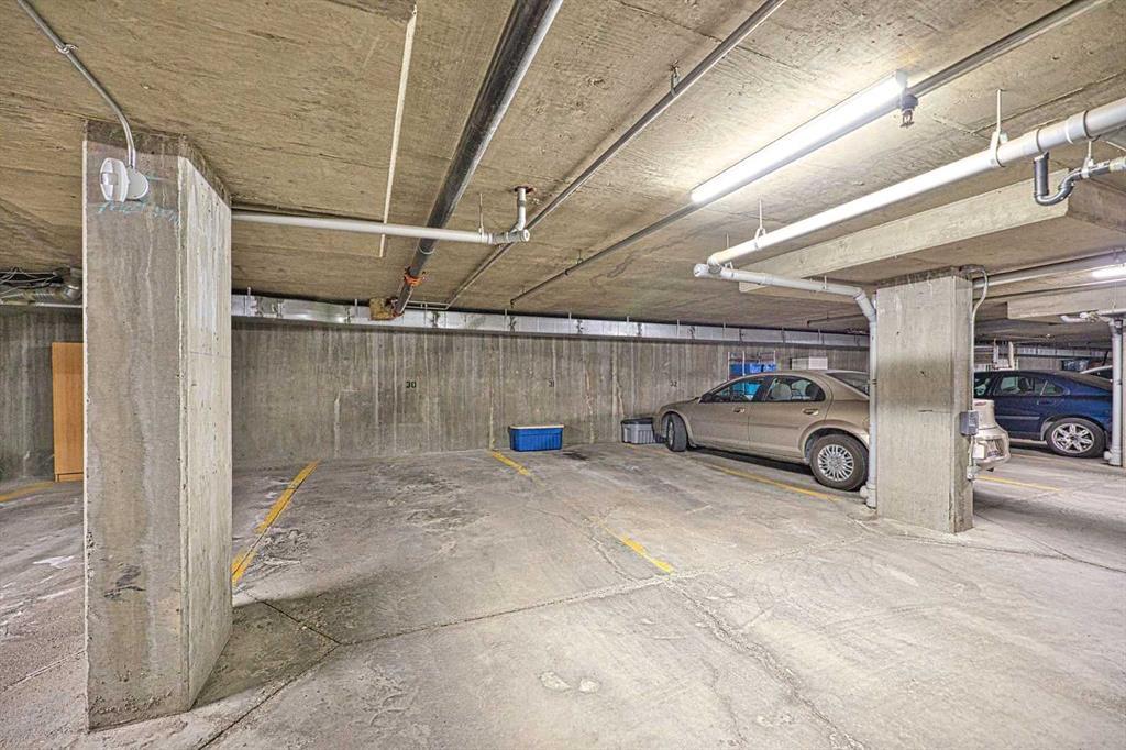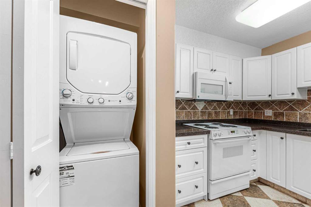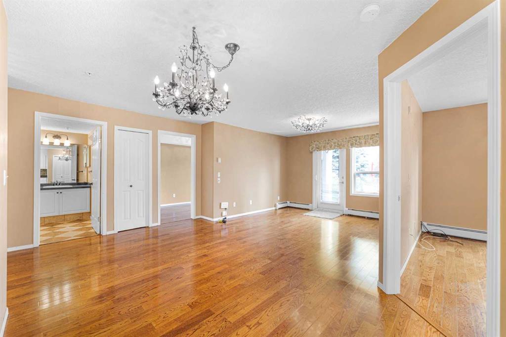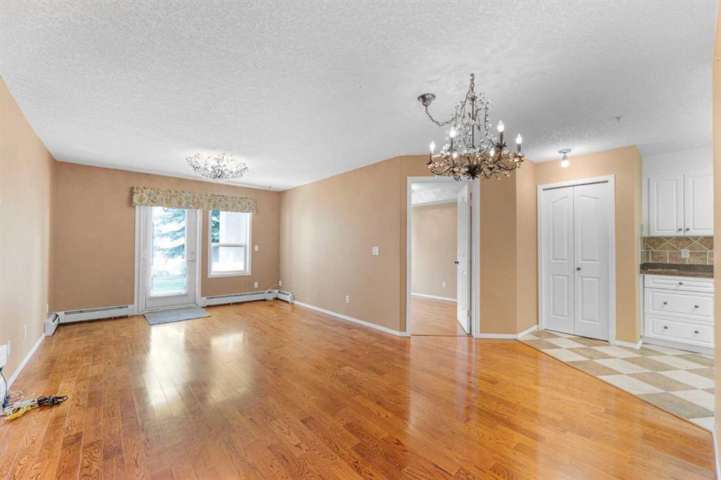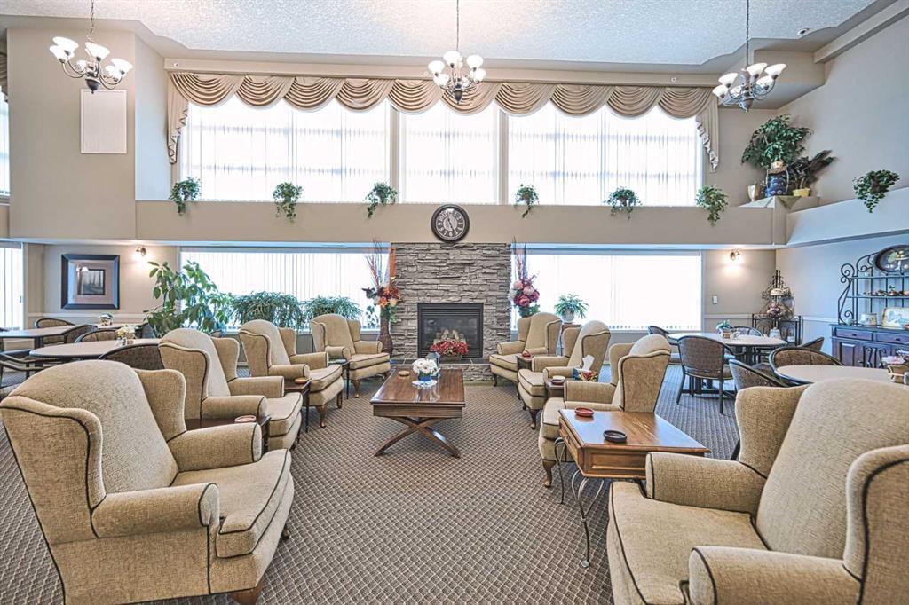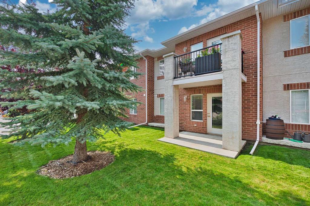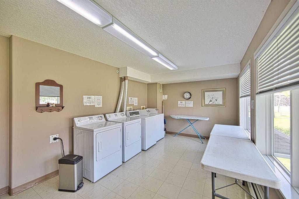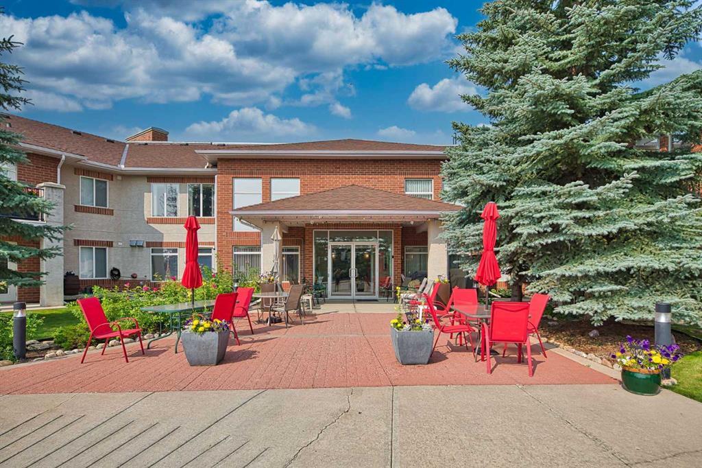 This is a rare opportunity - one of the best suites in a great adult only building (55+) in SW Calgary. This 2 bedroom, ground level suite has been upgraded in every detail. The kitchen features a ceramic backsplash, granite countertop, silgranite undermount sink with beautiful, bronze taps. Appliances include a newer (2022) washer / dryer set, newer fridge, stove and microwave. A generous pantry and large pull-out drawers provide extra storage. Hardwood floors throughout with ceramic floors where you want them, in the kitchen and bathroom. The co-ordinated light fixtures have a gorgeous, unique design including chandeliers in the dining area and bathroom. There is even a hide-away screen door that leads to a small patio and manicured lawn. The generous sized bathroom includes a walk-in shower with fold down seat. This is a well managed building with every amenity you desire - a huge common area for special events, games room, craft room, library, exercise equipment, a hair salon and of course, titled underground parking. Condo fee includes nearly everything: heat, electricity, reserve fund & management. Just set up your own cable. Building is wired for Telus fibre optic. Call your favourite REALTOR and come see this suite today. (id:22211)