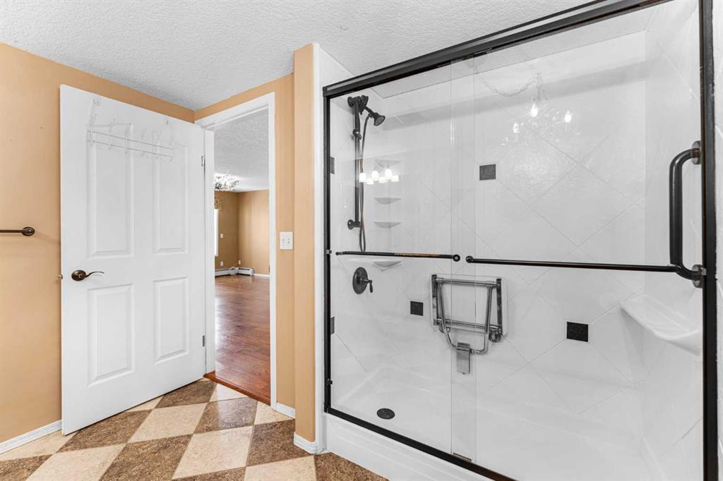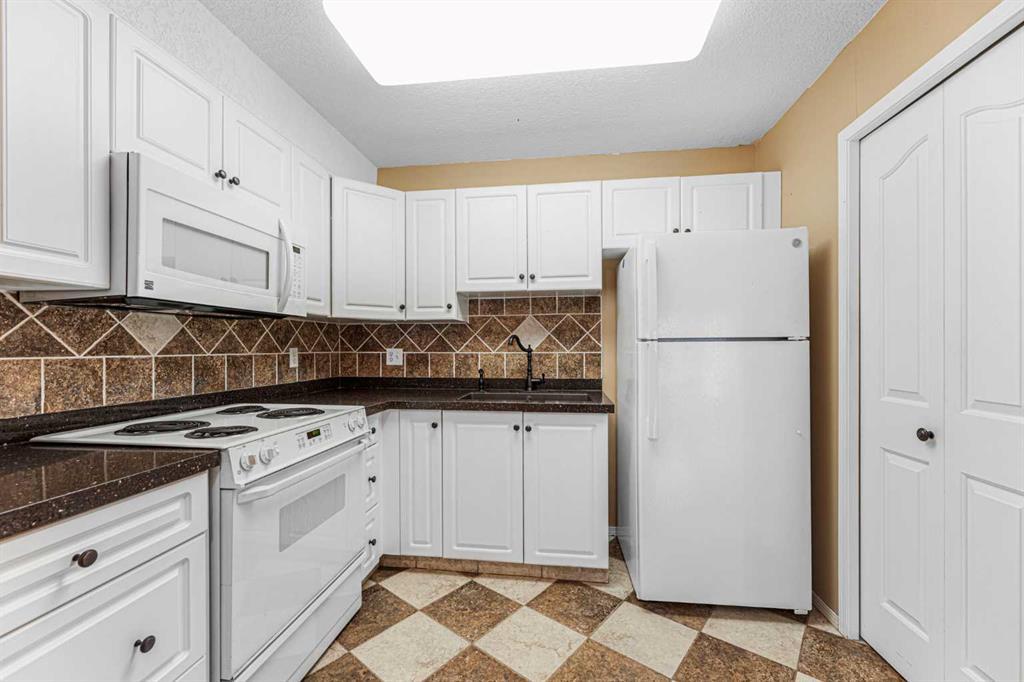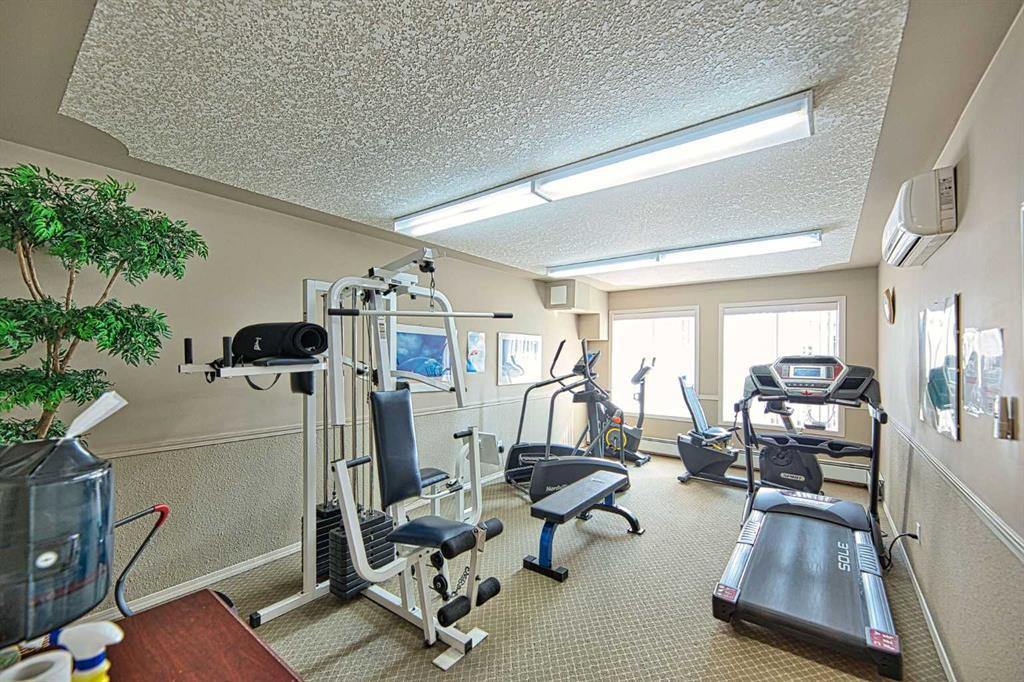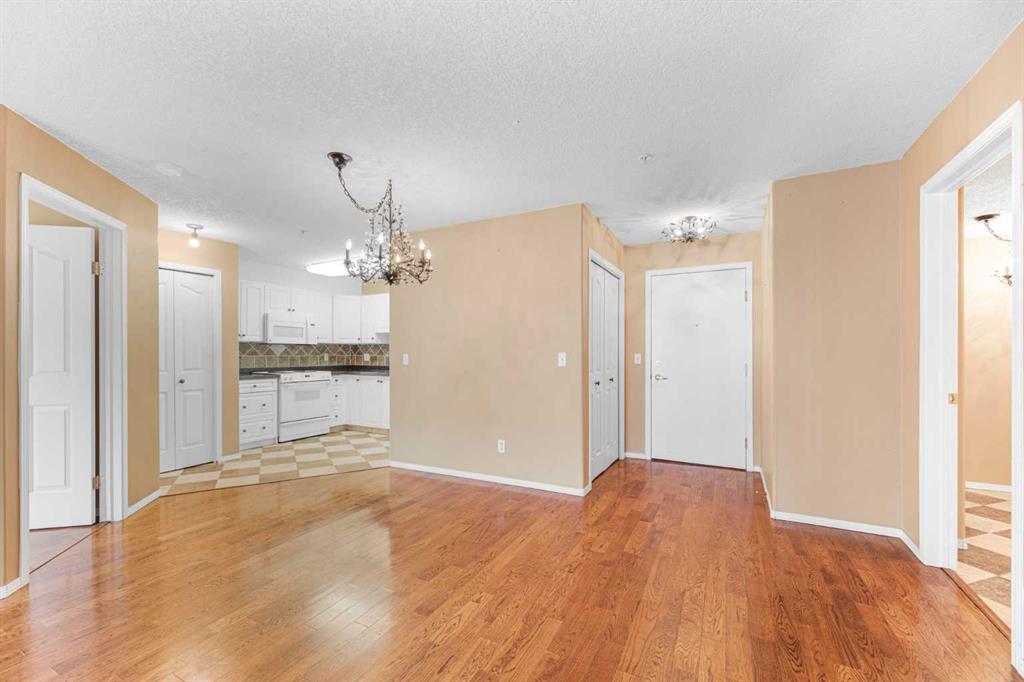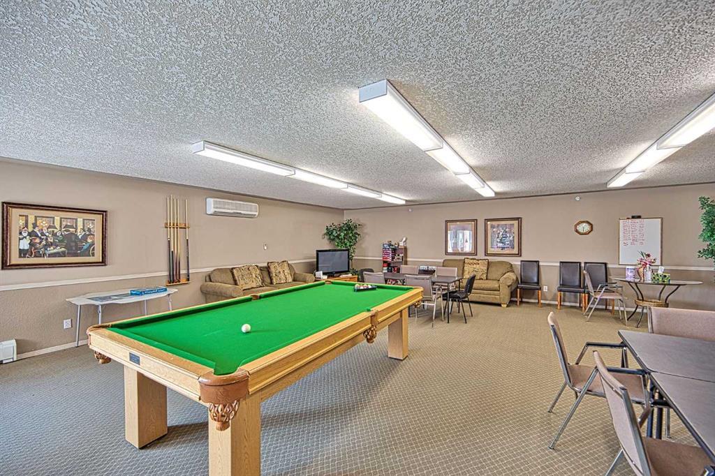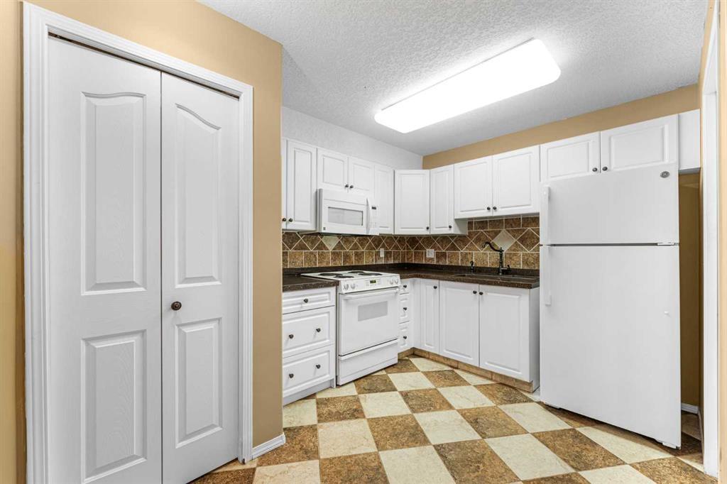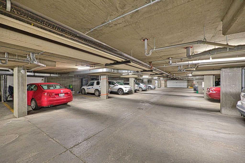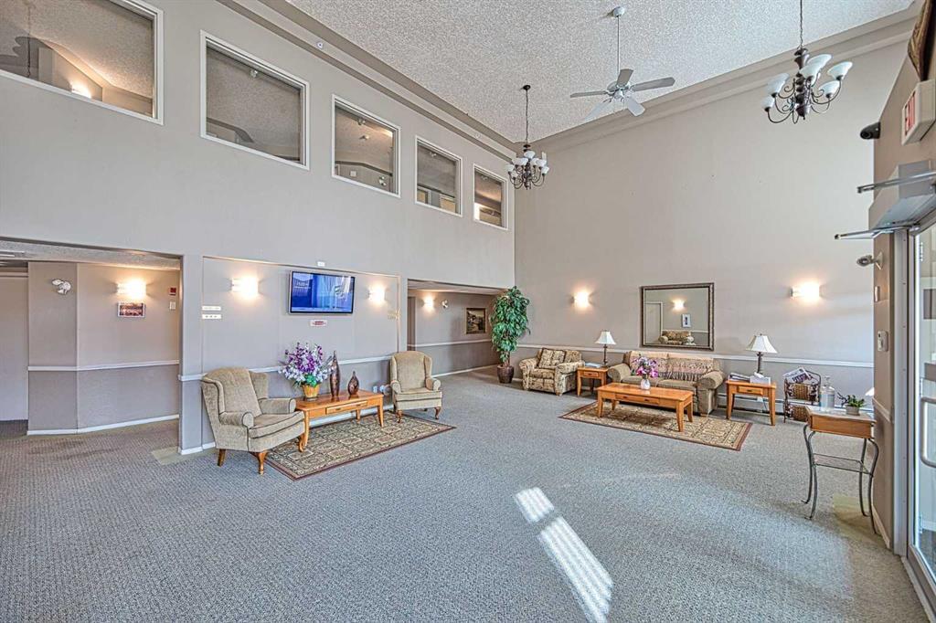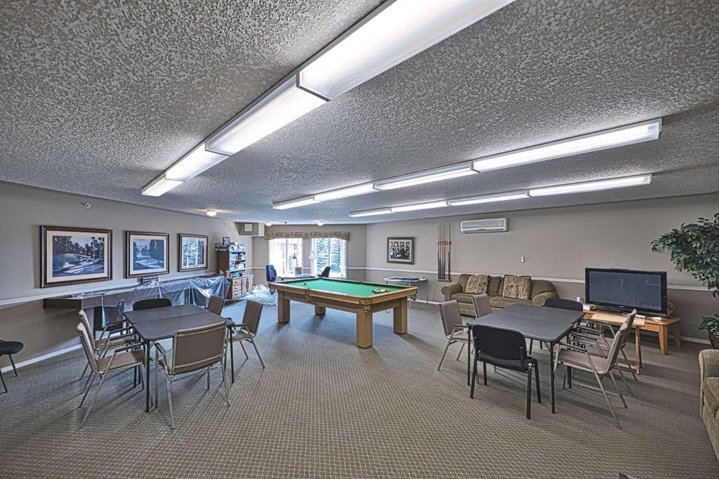 This is a rare opportunity - one of the best suites in a great adult only building (55+) in SW Calgary. This 2 bedroom, ground level suite has been upgraded in every detail. The kitchen features a ceramic backsplash, granite countertop, silgranite undermount sink with beautiful, bronze taps. Appliances include a newer (2022) washer / dryer set, newer fridge, stove and microwave. A generous pantry and large pull-out drawers provide extra storage. Hardwood floors throughout with ceramic floors where you want them, in the kitchen and bathroom. The co-ordinated light fixtures have a gorgeous, unique design including chandeliers in the dining area and bathroom. There is even a hide-away screen door that leads to a small patio and manicured lawn. The generous sized bathroom includes a walk-in shower with fold down seat. This is a well managed building with every amenity you desire - a huge common area for special events, games room, craft room, library, exercise equipment, a hair salon and of course, titled underground parking. Condo fee includes nearly everything: heat, electricity, reserve fund & management. Just set up your own cable. Building is wired for Telus fibre optic. Call your favourite REALTOR and come see this suite today. (id:22211)