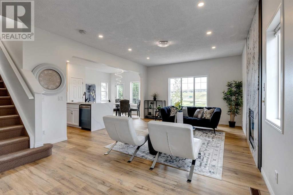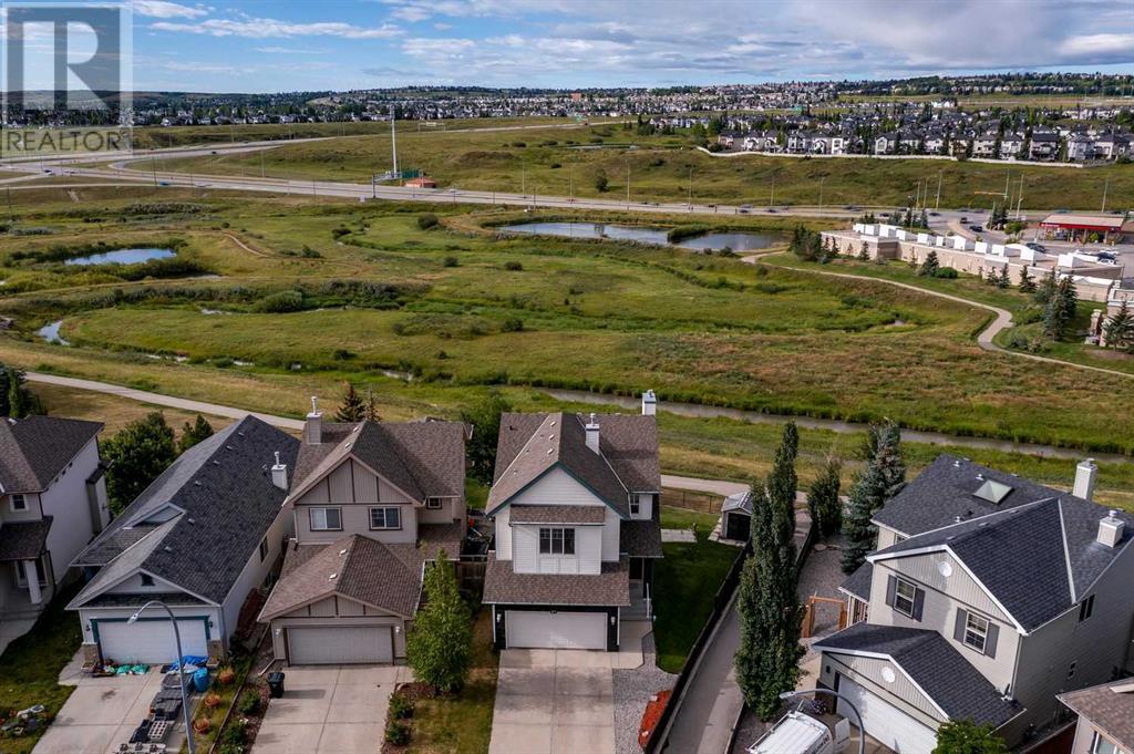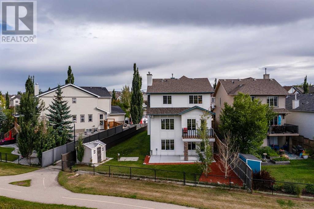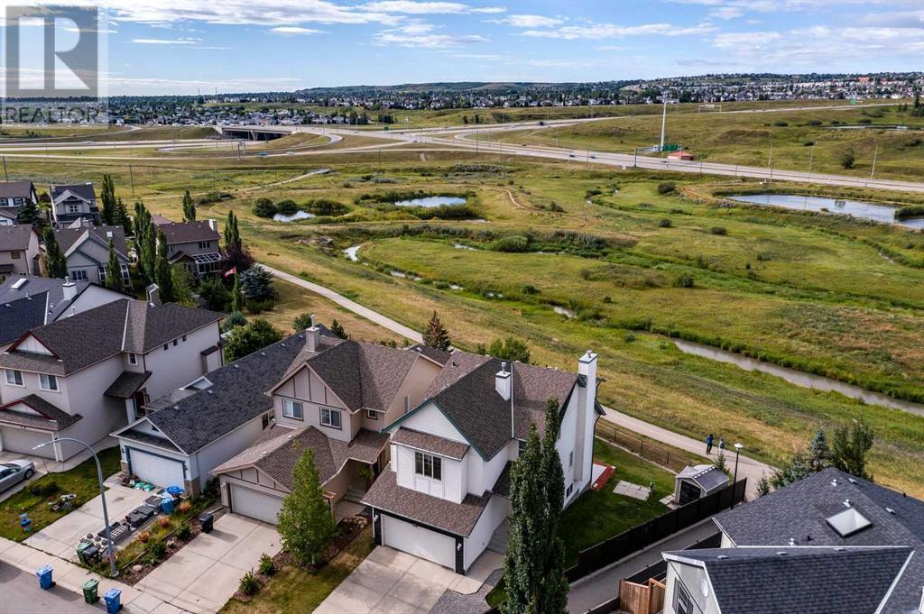 VIEW, VIEW, VIEW. Expect to be amazed by this two-story family home with an exceptional curb appeal in an outstanding location and close to all amenities. This well designed and spacious walk-out perfectly blends elegance and functionality This terrific home is ideally located on a quiet street, with a huge pie-shaped lot that backs onto green space, paths & creek. The main floor features a 9’ Ceilings with bright & open floor-plan including a huge living room with an outstanding quartz Surrounded fireplace and huge window overlooking the ridge. The spacious eating area with another large window looks out to the views. The contemporary kitchen features a quartz Waterfall island as well as quartz Backsplash with all BRAND NEW Stainless steel appliances. The bonus room is located at the back of the house to take advantage of the views & there are three bedrooms, including the master bedroom with relaxing ensuite with dual sinks, relaxing soaker tub & separate shower. Laundry is also conveniently located on the 2nd floor. The walkout basement is ready for development & has rough-in plumbing & rough-in for 2nd fireplace. The large backyard has lots of room for the kids and has a shed & pad & electrical in place for future hot tub. Great location close to shopping, amenities and schools. Close to 75,000 upgrades including: New deck composite; 300 sqft concrete patio; new landscaping; New Masonry Stone in Front and Back; Replacing the old decorative cedar shakes with white durable vinyl all around the exterior; brand New Calacatta quartz kitchen countertop, backsplash and island; One-Piece fireplace’s quartz backsplash; Brand new never used electric range, range hood and dishwasher and recently bought refrigerator; Fresh paint all over; New Calacatta quartiz in washrooms; All brand new lights and fixtures; Brand new Luxury Vinyl Plank all of the main floor and bathrooms; (id:22211)