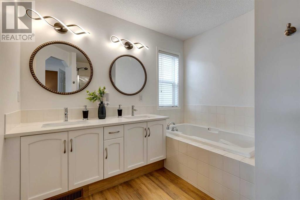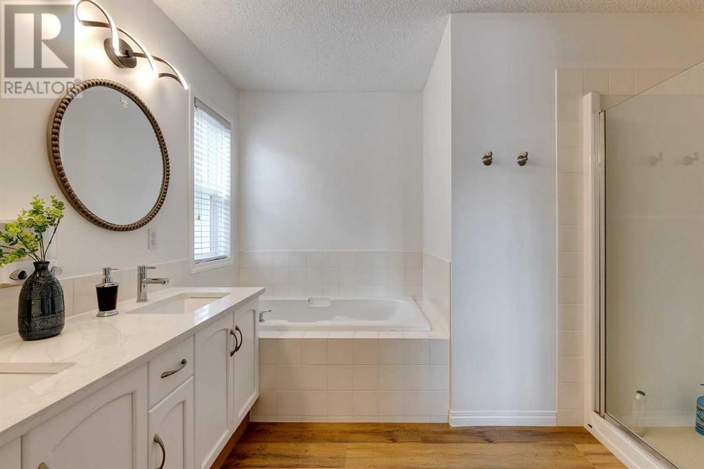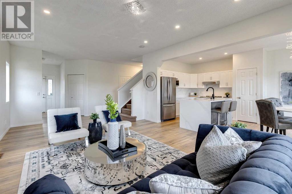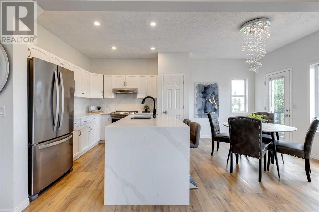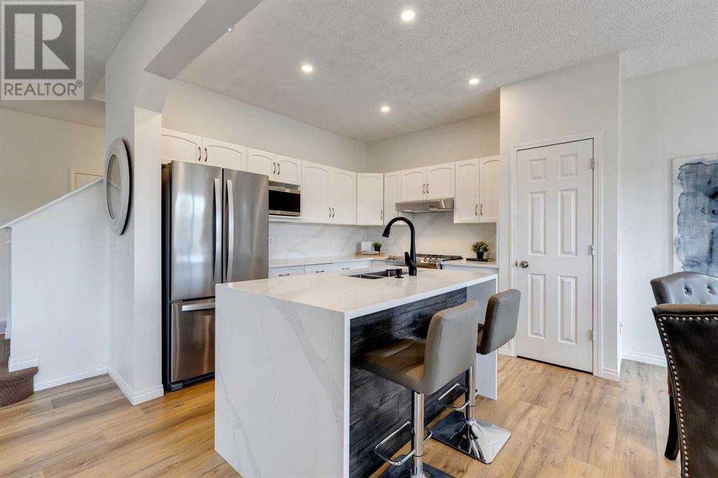 VIEW, VIEW, VIEW. Expect to be amazed by this two-story family home with an exceptional curb appeal in an outstanding location and close to all amenities. This well designed and spacious walk-out perfectly blends elegance and functionality This terrific home is ideally located on a quiet street, with a huge pie-shaped lot that backs onto green space, paths & creek. The main floor features a 9’ Ceilings with bright & open floor-plan including a huge living room with an outstanding quartz Surrounded fireplace and huge window overlooking the ridge. The spacious eating area with another large window looks out to the views. The contemporary kitchen features a quartz Waterfall island as well as quartz Backsplash with all BRAND NEW Stainless steel appliances. The bonus room is located at the back of the house to take advantage of the views & there are three bedrooms, including the master bedroom with relaxing ensuite with dual sinks, relaxing soaker tub & separate shower. Laundry is also conveniently located on the 2nd floor. The walkout basement is ready for development & has rough-in plumbing & rough-in for 2nd fireplace. The large backyard has lots of room for the kids and has a shed & pad & electrical in place for future hot tub. Great location close to shopping, amenities and schools. Close to 75,000 upgrades including: New deck composite; 300 sqft concrete patio; new landscaping; New Masonry Stone in Front and Back; Replacing the old decorative cedar shakes with white durable vinyl all around the exterior; brand New Calacatta quartz kitchen countertop, backsplash and island; One-Piece fireplace’s quartz backsplash; Brand new never used electric range, range hood and dishwasher and recently bought refrigerator; Fresh paint all over; New Calacatta quartiz in washrooms; All brand new lights and fixtures; Brand new Luxury Vinyl Plank all of the main floor and bathrooms; (id:22211)
