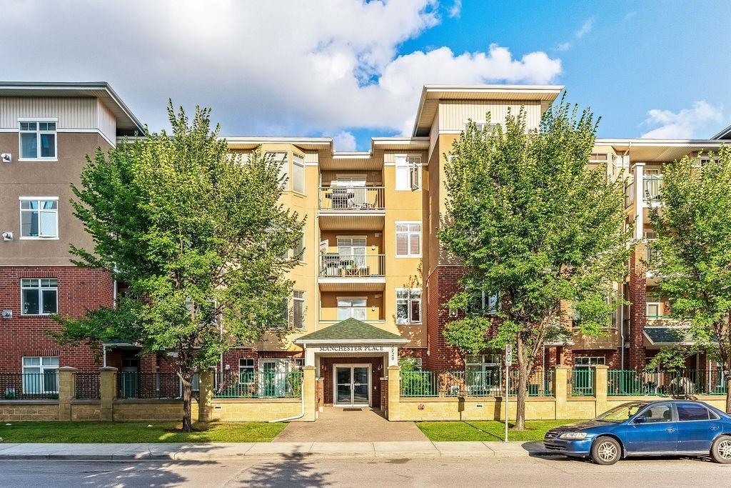 TOP FLOOR, 2 BDRM, 2 BATHS, 2 HEATED UNDERGROUND PARKING STALLS, 1 TITLED, 1 ASSIGNED!! This beautiful condo has BEEN RENOVATED with NEW PAINT THROUGHOUT, NEW CARPET, NEW STOVE, UPDATED COUNTER TOPS. SPACIOUS dining area & living room. The HUGE PRIMARY BEDROOM features a SITTING AREA, WALK THROUGH CLOSETS & 4 pce. ENSUITE. The 2nd bedroom includes a cozy fireplace, could be used as a perfect office. Great kitchen with BLACK APPLIANCES, lots of cabinetry & BREAKFAST BAR. More features are in-suite laundry area (washer & dryer are included) plus ample storage space & balcony with BBQ gas line. Comes with 1 TITLED UNDERGROUND PARKING STALL, OVER-SIZED, RIGHT NEXT TO THE ELEVATOR and 1 ASSIGNED PARKING STALL. Also, an assigned LOCKER for more storage. SUPER LOCATION-close to CHINOOK CENTRE, LRT, PLAYGROUND, easy access to major roads going downtown or out of town. Quick possession is possible. Welcome home to MANCHESTER PLACE! (id:22211)