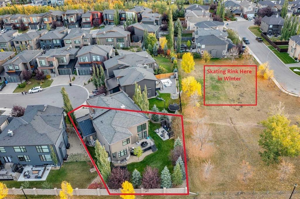 Welcome to the epitome of luxury living in the heart of West Springs, where a magnificent family home meets an incredible near quarter-acre lot in a peaceful cul-de-sac setting. This stunning residence backs onto a lush greenspace. In the winter months, a skating rink is set up here for your family's enjoyment. Picture your children stepping out the back door for an afternoon of skating. The sunny west-facing pie-shaped yard exudes a sense of tranquility and seclusion. The expansive deck and patio seating area, complete with a pergola, beckon you to relax and entertain. Gas lines are in place, ready for your fire table or heater. The yard is equipped with an irrigation system as well. With ample yard space for a trampoline and summer gatherings, this outdoor sanctuary is a haven of possibility and wonder. Prepare to be captivated by the interior of this home, where every detail exudes sophistication and elegance. Vaulted ceilings and walls of windows bathe the living spaces in natural light, creating an inviting and open atmosphere. A conveniently located executive front office boasts built-ins and is bright with its south exposure. The main floor showcases a double-sided fireplace and open to above living room, making this the ideal spot for gathering. The high-end chef's kitchen features integrated and built-in appliances that create a clean and seamless aesthetic. Enjoy meals in the spacious dining room while overlooking the serene backyard. As you ascend the stairs, you'll appreciate the high-end, upgraded carpet leading to an expansive primary bedroom. This retreat is complete with a lavish 5-piece ensuite bathroom, featuring a bubble tub, heated floors, and a steam shower. The primary closet is equipped with solid built-ins for maximum organization. Generously sized children's bedrooms upstairs feature built-in closets, and a nearby main bathroom with double sinks. The sunken bonus room is a showstopper with its massive windows, vaulted ceilin g and built in bar, destined to be a beloved gathering space for all. The fully finished basement matches the rest of the house in luxury and functionality. Here, you'll discover a sprawling rec room, a full wet bar, and a glass-enclosed wine room. Two additional bedrooms, one of which could serve as a home gym, share a full bathroom. A triple car garage with epoxy flooring and glass garage doors is an absolute must for those who appreciate space, organization, and natural light. This remarkable property offers a once-in-a-lifetime opportunity to own a residence with an incredible lot in a highly sought-after family community. Every detail that is on your wish list, is met with this home. Top-tier schools, including CFIS, Webber Academy, Rundle College are nearby and you are walking distance to both St. Joan of Arc and West Springs School, making this location ideal for families. This home is where cherished memories are made, and dreams are realized. CLICK ABOVE FOR VIDEO TOUR. (id:22211)