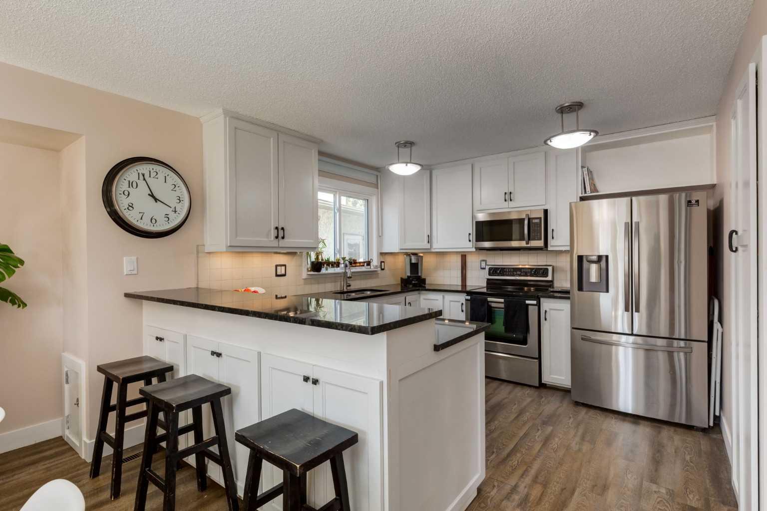 Welcome to 59 Cedarwood Rise SW, a beautifully updated semi-detached 2-storey home nestled in the heart of the popular family-friendly community of Cedarbrae. With over 1,300 sq ft of thoughtfully designed living space plus a fully finished basement, this 4-bedroom home blends comfort, style, and functionality—perfect for growing families or savvy buyers looking for exceptional value under $500,000. Step inside to discover extensive interior renovations that make this home truly move-in ready. The main and upper floors feature all brand-new windows, while modern upgrades such as new doors, baseboards, casings, light fixtures, and recessed pot lighting elevate the overall feel. Durable and stylish vinyl plank flooring flows through the main and lower levels, all freshly repainted in appealing contemporary tones. The heart of the home is the large, bright kitchen, showcasing classic white cabinetry, granite countertops, a breakfast bar, newer stainless steel appliances, and a spacious dining area—ideal for hosting or casual family meals. Enjoy year-round comfort with numerous mechanical upgrades including a high-efficiency furnace, central air conditioning, new hot water tank, and humidifier. The home’s curb appeal shines with newer sod and elegant Rundle rock landscaping, while the completely overhauled west facing backyard is a showstopper—featuring a new fence, concrete patio, pergola, rear stairs and landing, plus a garden/storage shed. A brand-new concrete pad is ready for your dream garage plus plenty of street parking space for guests. Additional peace of mind comes with a roof that’s approximately 5 years old. Located close to schools, parks, and all the amenities Cedarbrae has to offer with easy access to Stoney Trail! This home is the total package. Don’t miss out! —call today to schedule your private viewing and make 59 Cedarwood Rise your new home!