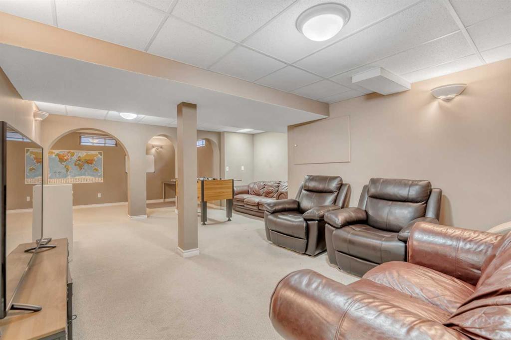 Nestled in the highly desirable, family-friendly community of Woodbine, this stunning two storey has endless up-grades and living options. Stepping into the elegant Foyer you are immediately captivated by the feeling of being home. This superbly designed floorplan boasts almost 3,000 square feet of family living and endless open spaces which can be repurposed to suit your family's style. Off the Foyer, is a enormous room which is currently being used as a Dining Room, could easily be designated as the Living Room. Moving from the Dining Room through an elegant set of glass French Doors you enter the Office, which could easily be your dining area. Walking towards the heart of the home you catch glimpses of the tranquil backyard and enter the Kitchen. A Chef's dream, this Kitchen features SS appliances including a Samsung Induction Stove, Microwave and Refrigerator. Loads of preparation area featuring endless quartz counter space and stunning views of the backyard. Directly off the kitchen is a Family/Entertainment area where children can play or watch TV. Perhaps you decide to make this area your Dining Room. Sliding glass doors allow easy access to your backyard retreat, featuring a Hot Tub which Sellers are leaving for new Owners. Upstairs, explore the two huge Bedrooms, a Five Piece Bathroom and an enormous Primary Suite which runs the entire length of the home. Windows on both ends bathe the room in lots of natural light. A large Walk-In Closet and Five Piece Ensuite finish the second level. Moving to the Lower level you'll discover two areas currently designated as a Secondary Office and another Family/Entertainment area and Two Piece Bathroom. Woodbine is a fabulous community for families with parks, schools, green space and shopping nearby. Bring your family home today!!! (id:22211)