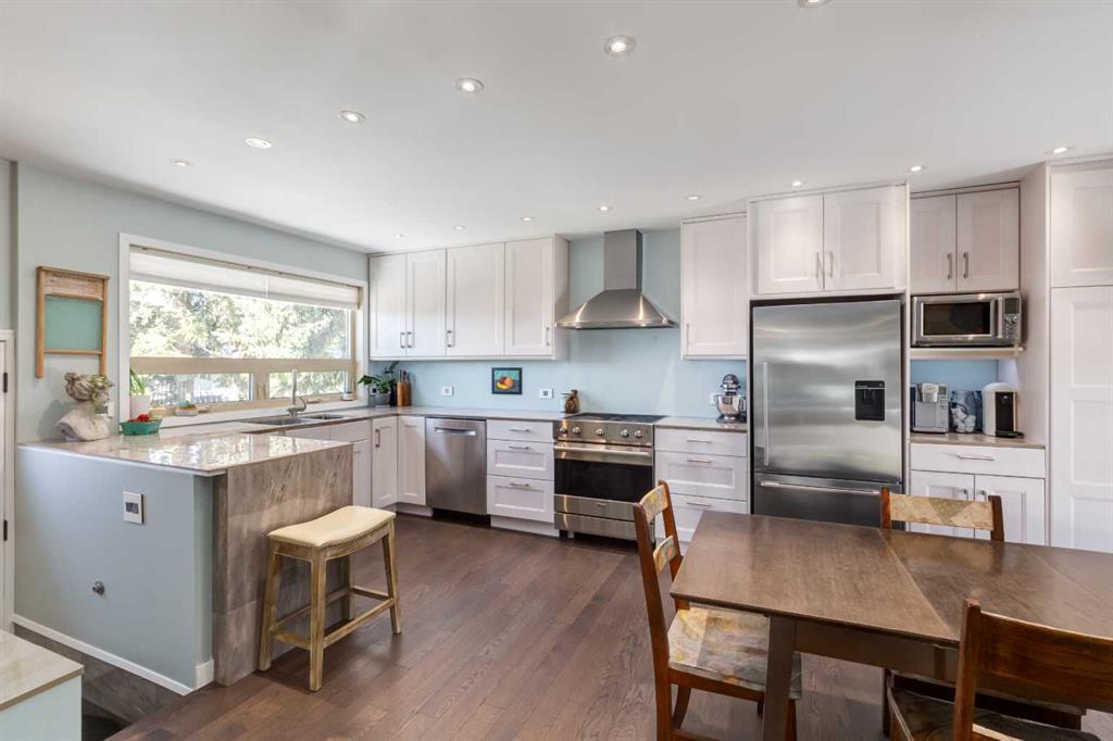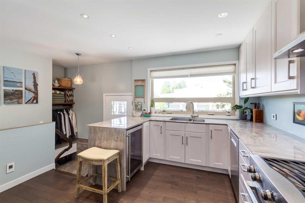 *Watch the Cinematic Property Tour!* Welcome home to this Spectacular Home in Lakeview! Step inside to the newly renovated kitchen, with ample floor to ceiling storage, and soft close drawers/cabinets. High end stainless steel appliances include a Viking Gas Stove, Fisher Paykel counter depth fridge, Bosch Dishwasher, high suction range hood and Insinkerator garburator. Enjoy the luxury of Instant Hot Water at the kitchen and bathrooms, and under cabinet lighting! Main floor has newer engineered hardwood throughout, and your living room with beautiful bay window is the perfect spot to gather! 3 great sized bedrooms are found on this floor, with built in closet organizers in the primary. The bathroom with huge jetted soaker tub is something out of a spa! Enjoy it as is, or easily convert into a large walk in shower. The lower level is finished, with newer carpet, and a massive family room. There is a full workshop in the basement, laundry room with sink, and storage/lower level additional pantry. The fourth bedroom downstairs is a great size, with a 3 piece bathroom and a custom built in Towel Heater! The utility room houses your Navien Hydronic In-Floor Heat System, which means each room as it's own separate climate control! 2 Tankless Water Heaters and a Water Softener are an added luxury. No Furnace, no huge hot water tank = Unlimited, instant hot water! The large backyard is an absolute dream, backing onto the prestigious Connect Charter Science school means no neighbours behind, and kids could walk to school. The yard is West Facing for ample sunshine with peak a boo mountain views. Enjoy the custom play house, canoe shelter, reinforced deck, and tons of grass for the kids or pets to run and play. This lot is HUGE, over 8200 sq ft - one of the largest in the community. There's ample room to build your dream triple car garage (already has the gravel laid/compacted, with electrical, heat and water setup) The RV outlet is perfect for the camping type of family! T elus Fibre Optic already installed in this area. If you're shopping in Lakeview, you already know how incredible this community is. The Calgary Rowing and Canoe Clubs, The Glenmore Reservoir and Glenmore Park, fantastic schools and parks nearby, and numerous hiking and biking paths! Convenient shopping and restaurants blocks away, and easy access to anywhere in the city. Book your private viewing today! (id:22211)