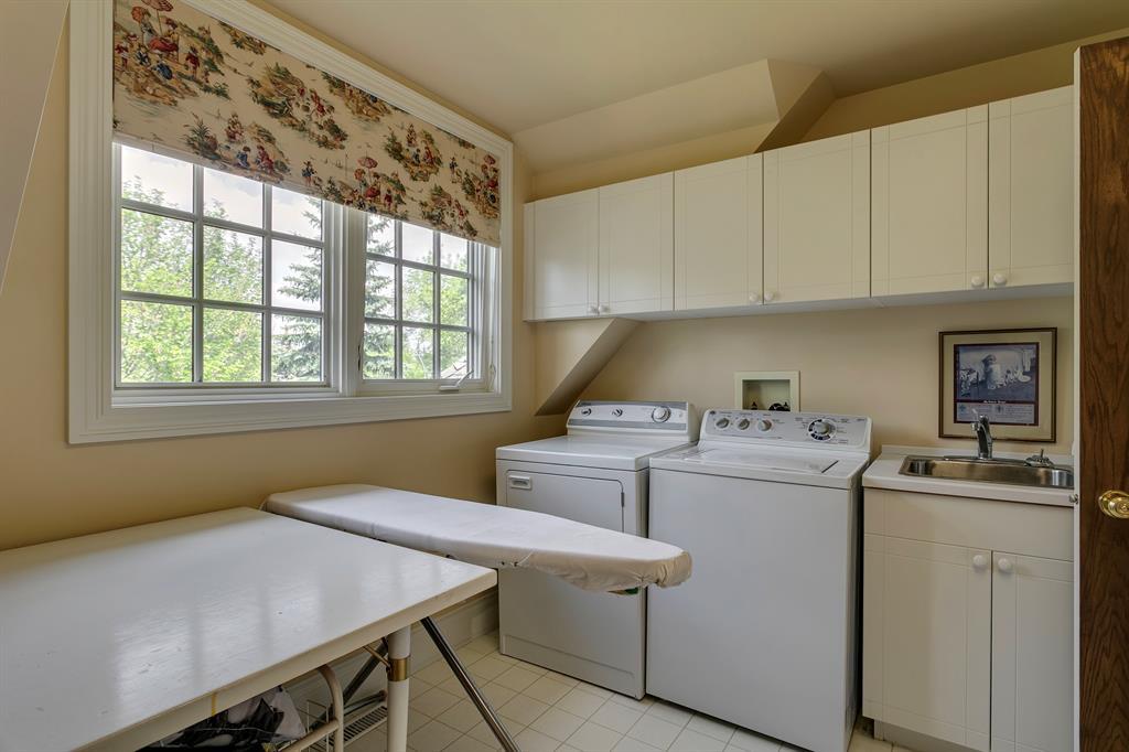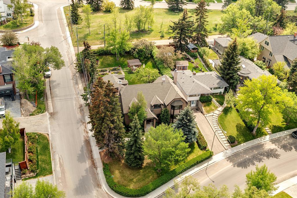 Exceptional family estate in the heart of Elboya. Positioned on a massive lot (.27 of an acre or nearly 12,000 ft2) with a sunny and private south rear yard. Incredible landscaping with loads of perennials and tiered gardens, all created by an accomplished horticulturalist. The property also backs onto an ornamental park. Elboya offers everything a family could want: a great sense of community, excellent K-9 school (just 1 block away plus within boundary for Western Canada High School), playgrounds, parks, and an easy walk to the Elbow River pathways and Britannia Village for shopping and dining. Also minutes to the Glencoe Club and the downtown core. This elegant and traditional home was architect-designed and custom built in 2004. 4652 square feet of development with outstanding original quality including a largely brick exterior, 9’ flat-painted ceilings, fantastic windows and abundant top-quality millwork. Soaring double-height entry leads into beautiful principal rooms. The large living room has a woodburning fireplace and the dining room is perfect for entertaining. Full-height windows run across the entire rear of the home and French doors offer access out to the huge terrace. The indoor-outdoor connection is stellar. Professionally designed kitchen with island, walk-in pantry, excellent lighting and workspace and an area for casual dining. Adjacent family room has a wet bar, garden views and another woodburning fireplace. If desired, the wall between the family room and kitchen could be removed. A gracious staircase leads to the upper level with 3 bedrooms and laundry. The very generous primary suite has a large bedroom with sitting area, gas fireplace and garden views, a walk-in closet and a full 5-piece ensuite (double vanity and separate water closet). Both secondary bedrooms are spacious and bright and the house bath has a separate tub and walk-in shower. The huge laundry room has natural light, sink and project/hobby space. The lower level holds a spr awling and flexible recreation room…and don’t miss “rabbit cottage”, the adorable playhouse. Another bedroom, full bath and loads of storage complete this level. Fully finished and heated double garage. The entire property has been beautifully maintained and is now ready for the next lucky family. (id:22211)