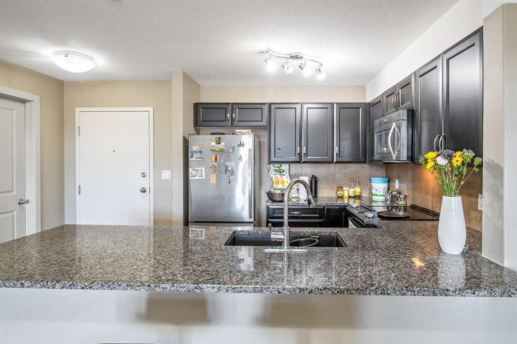 Why rent when you can own one? Located in the heart of Saddleridge and minutes away from the train station and many businesses, this one bed and one bath condo has it all you need as a first time buyer or an investor. This open concept unit has lots of storage in the kitchen with granite counter tops, stainless steel appliances, and a breakfast bar. Good size living area and bedroom for your comfort along with the balcony through the living room to enjoy those nice sunny days. The washer and dryer is located between the bedroom and the washroom for your convenience. Book a private showing with your favourite Realtor before its gone!! (id:22211)