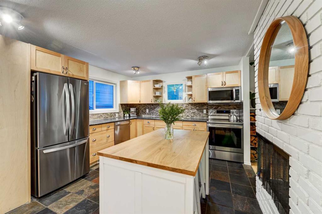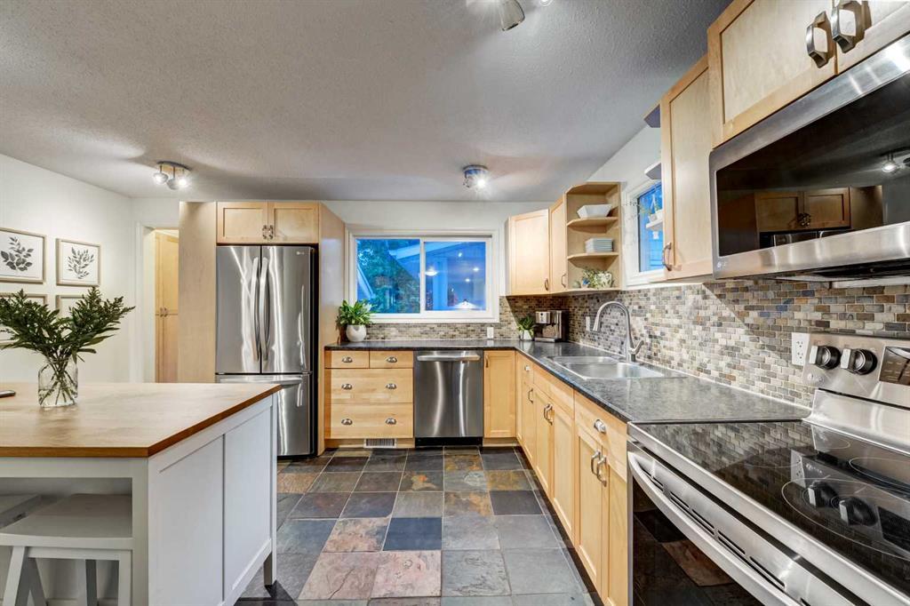 This is an incredible opportunity to own a fantastic home on desirable Bow Crescent. This amazing home sits on a massive 8600 square foot, pie shaped lot that expands to 82 feet at the back. The sun soaked back yard is extremely private and is enclosed by mature spruce trees. This home is truly special and has been extensively upgraded in various stages over the last 11 years. The sunny kitchen was renovated in 2011 and features expansive maple shaker cabinets, ample countertops, and brand-new stainless appliances. The kitchen shares a three-sided wood burning fireplace with the living and dining area and is perfect for cozy nights with family and friends. The main floor also offers two bedrooms, a spacious oversized updated bathroom. The basement was fully renovated in 2021 and offers a second living area that is perfect for movie nights or watching the big game. The basement also includes two additional bedrooms, a luxurious spa like bathroom, extra storage, and spacious laundry area. The back yard is a true oasis to enjoy lazy summer days and evenings. This thoughtfully planned yard offers numerous seating areas including a covered patio area adjacent to the new oversized 4 car garage. The 24x40 foot dream garage is insulated and heated, has vaulted ceilings and has access from the alley or the street. The newly paved driveway offers additional off-street parking. Don’t wait to see this amazing home located on one of the best streets in Calgary, close to Shouldice Park, the Bow River pathway system, downtown and effortless access to the mountains. (id:22211)