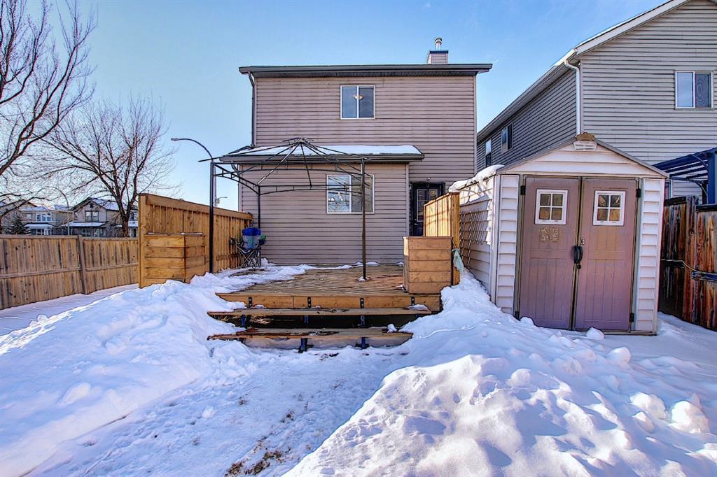 Welcome home! This fantastic corner lot property in ever popular Bridlewood boasts four bedrooms with a possible 5th in the partially finished basement. The living area has a corner gas fireplace perfect for those cold winter nights. The open concept kitchen and dining area has maple cabinets and a huge granite island. There is a half bathroom adjacent to the back door, which opens onto a deck in the fully fenced private back yard perfect for barbeques and a fire pit.The upper level has three good sized bedrooms, with a four piece bathroom and upstairs laundry. The master bedroom has an amazing ensuite with a separate walk in shower and soaker tub. All bedrooms on the upper floor have walk-in closets.This home has a fantastic safety feature - a built in sprinkler system throughout the property which should also save on insurance costs. The front yard has an irrigation system and there are two parking pads at the rear with back lane access. Book your showing today!!! (id:22211)
