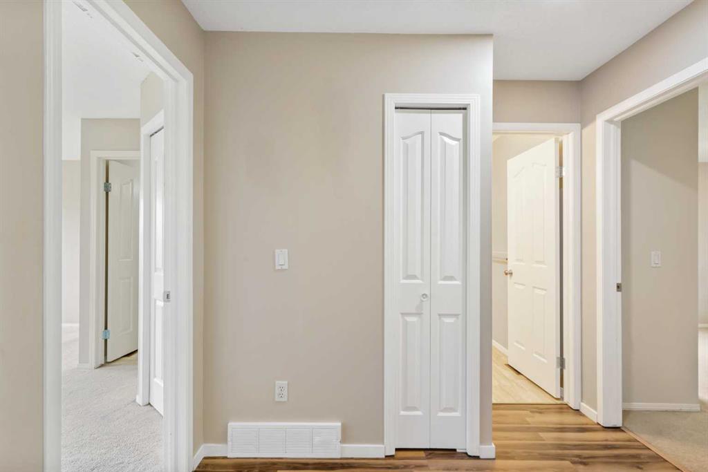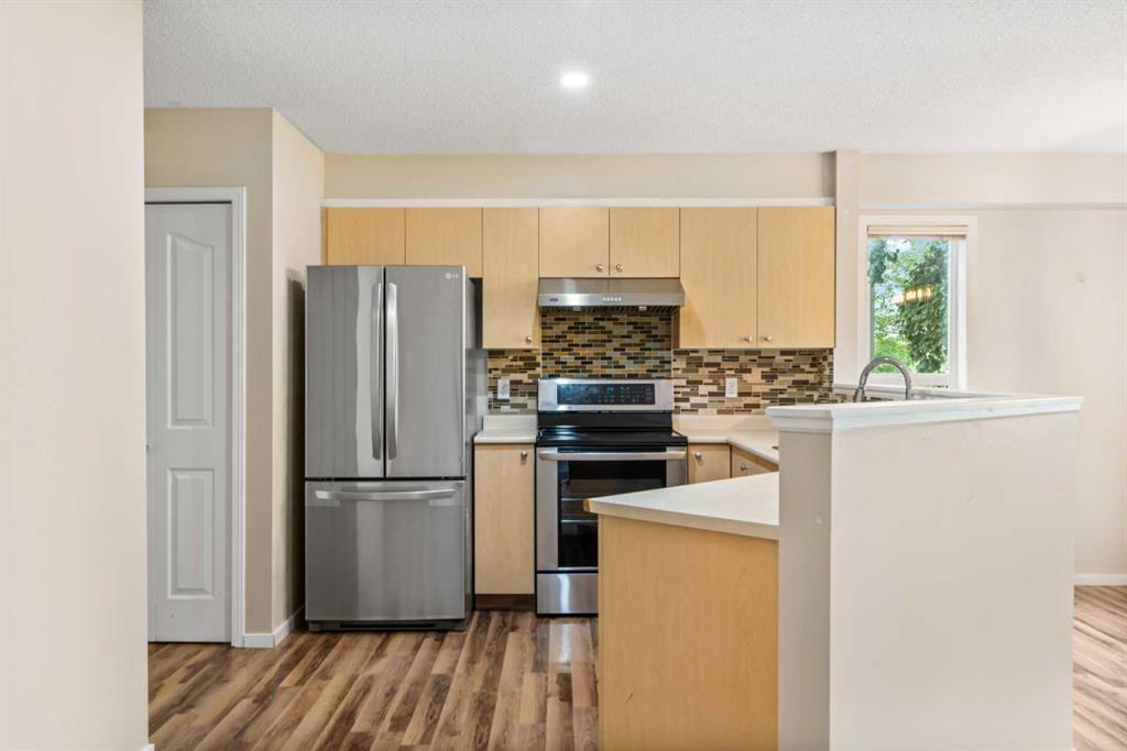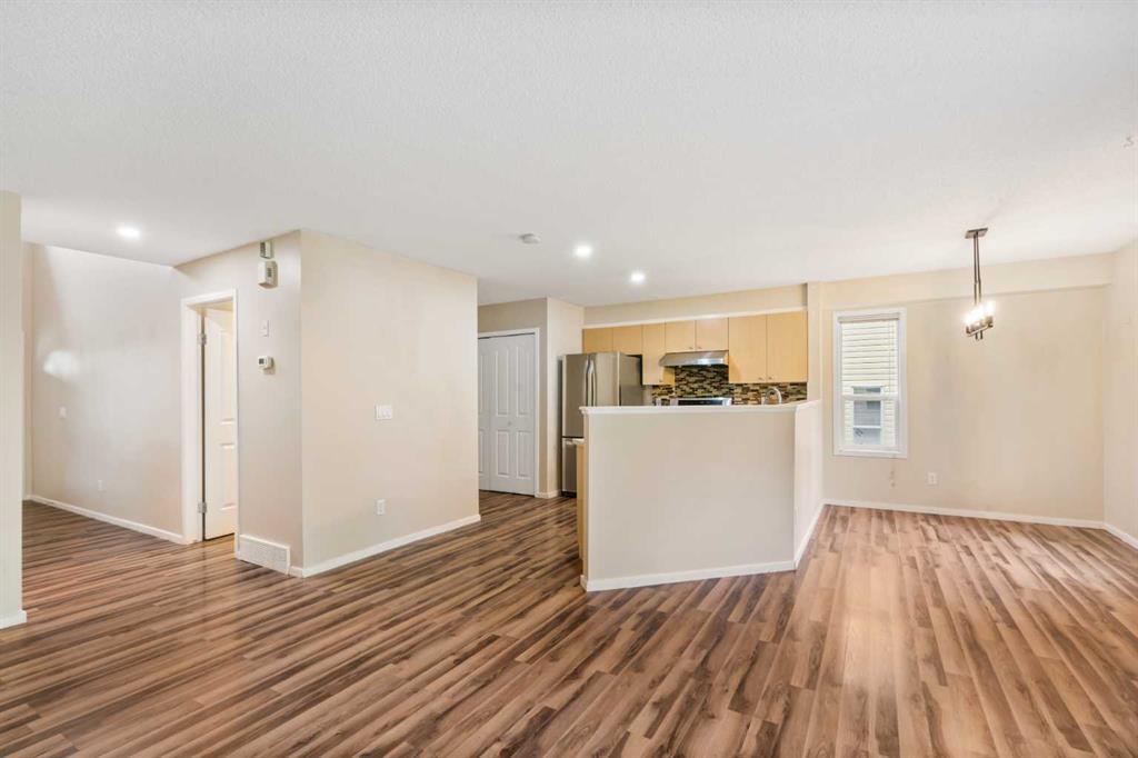 Buy for location, stay for the lifestyle! Nestled in a quiet location, this spacious open concept end unit 3 bedroom, 2.5 bathroom townhome is in the great community of Citadel and is move-in-ready and also has a rare double attached garage with direct access into the home, making it the perfect place for families or professionals seeking a comfortable and stylish living space. The front entry features soaring ceilings, and opens to a warm, inviting and well equipped kitchen with stainless appliances, with attractive light toned flat panel wood cabinetry, modern stylish backsplash, lots of counter space and a great sized pantry. The wide open super sunny south facing family room, kitchen and large dining area easily accommodates a large dining table making entertaining easy. The spacious living room features a soothing corner gas fireplace and a patio door to step onto your back deck to enjoy BBQ with families and friends. Engineered wood flooring is throughout the main level. The south-facing deck off the dining area makes it easy to enjoy summertime barbeques. Upstairs, the large primary bedroom has a relaxing 3 piece en-suite and a roomy walk-in closet. Two other bedrooms and a full 4 piece bath finish the bright upper floor with an open-to-below landing area. The basement level has the start of some finishing including engineered flooring, a roughed in bathroom and awaits your creative design. The insulated double attached garage makes this home suitable for a family with two cars, plus you have space for two more vehicles on your driveway, plus there is guest parking steps away. Do not miss your opportunity to own this fabulous property, close to parks, walking trails, play grounds, shopping mall and transit. Whether you traverse the city or adventure to the mountains, this quiet block is tucked near the edge of the community and offers excellent access to primary routes like Stoney Trail and Country Hills Boulevard to get you where you want to go. Surrounded b y green space, giving you endless hours of walking paths at your doorstep and the shops of Country Hills Village are just a few minutes away. This well-maintained complex is well managed, and includes landscaping and snow removal! It’s also surrounded by green space, giving you endless hours of walking paths at your doorstep. Schools and parks dot the community, and the shops of Country Hills Village are just a few minutes away by car. Don't miss out on this opportunity to own this incredible property, a great first time home or investment property! (id:22211)
