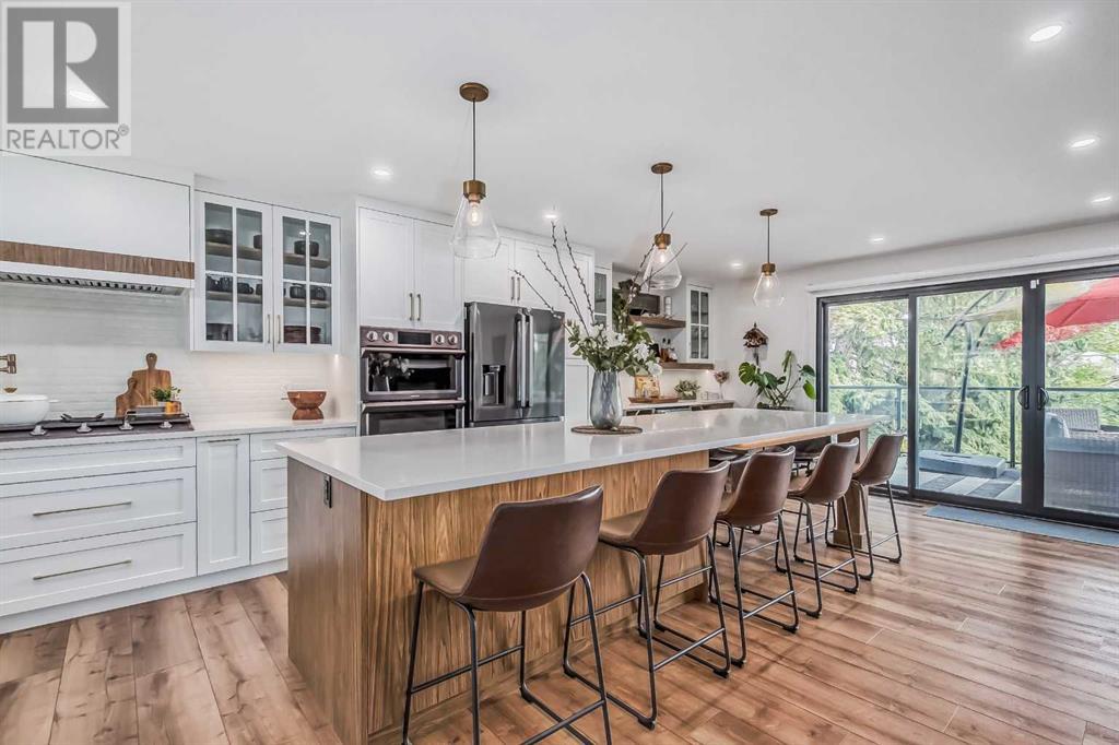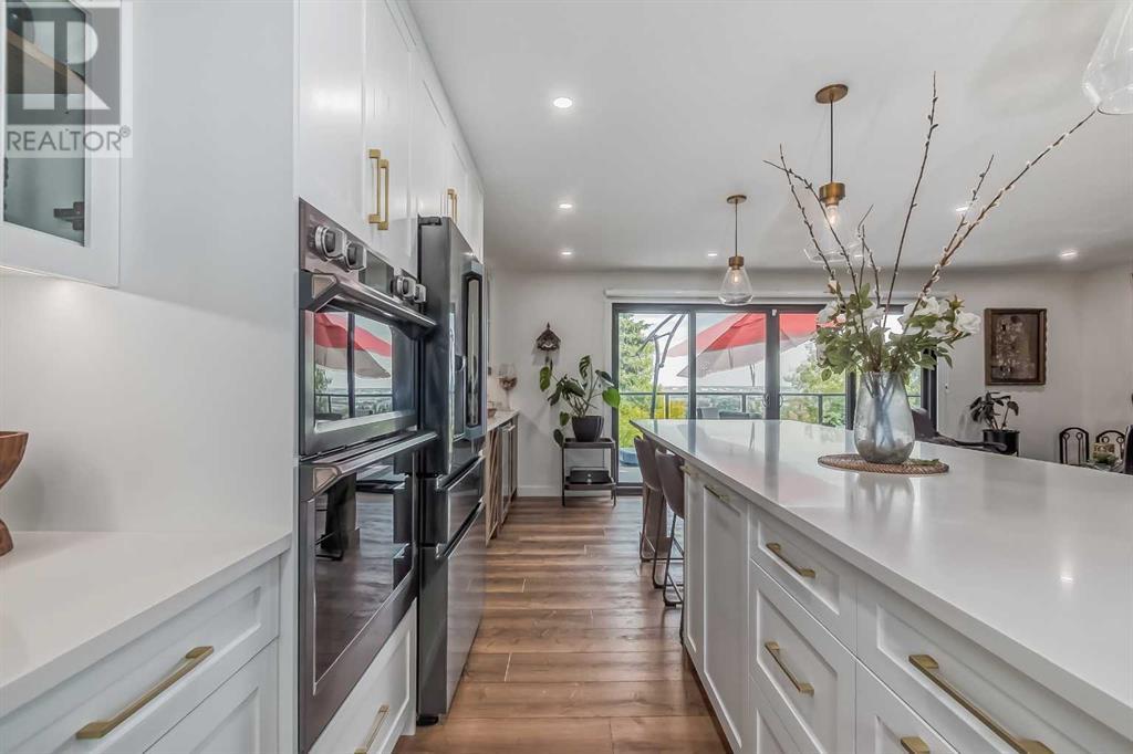 Nestled in the heart of NW Thorncliffe, this beautifully renovated bungalow on an expansive 7,000+ square foot lot offers a picturesque haven of modern elegance and breathtaking vistas. This home boasts an exceptional renovation, meticulously crafted for homeowners to savor, making it a truly unique gem in the real estate landscape. The heart of this home is a high-end kitchen that will leave you awe-inspired. Featuring a stunning appliance package, a 12-foot quartz island, and custom-built cabinets and shelving, it's the epitome of culinary excellence. Throw open the 12-foot patio doors to access the nearly 300 square foot deck, where you'll be treated to panoramic city views – the perfect backdrop for entertaining guests or enjoying your morning coffee. Warmth abounds with wood-burning fireplaces gracing both the main level and lower level, creating an inviting ambiance on chilly evenings. Custom dimmer switches control the high-end lighting package, allowing you to set the perfect mood in every room. The primary bedroom is a sanctuary with a walk-in closet, a beautifully renovated ensuite bathroom, and spectacular views through the huge bay window. A second bedroom on the main floor enjoys access to another fully renovated bathroom. The fully renovated walkout basement is a showstopper, designed to the same exacting standards as the main level. It features a built-in bar with custom shelves, a large laundry room, a recreation room, and patio doors leading to the hot tub area, where you can soak while taking in more captivating city views. A living/media room boasts custom component built-ins, and a sneaky Murphy door reveals the mechanical room. A fully renovated three-piece bathroom adds to the basement's allure, and a well-proportioned bedroom also offers impressive city views. The home's backyard is a tranquil oasis, backing onto a mature green space that enhances privacy and adds to the serene atmosphere. Additional features include air conditioning, a vacufl o system, a new furnace, and a hot water tank, along with newer windows that enhance energy efficiency. This elegantly renovated bungalow offers a rare blend of contemporary luxury and timeless charm in the desirable NW area of Thorncliffe. With breathtaking city views, top-tier finishes, and meticulous attention to detail, this is a home designed for discerning homeowners who appreciate the finer things in life. Don't miss your chance to own a piece of Thorncliffe's enchanting beauty. Schedule your viewing today and experience the magic of this stunning property for yourself. (id:22211)