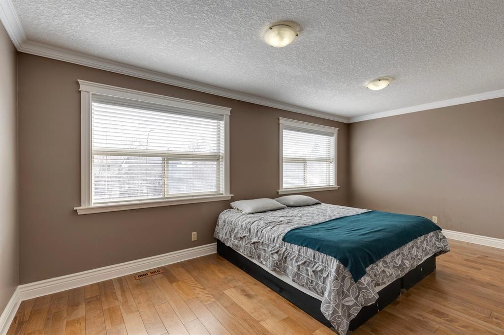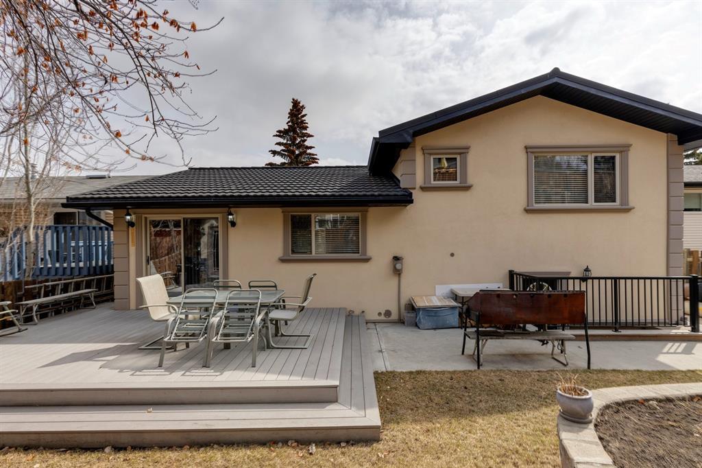 This is a rare upgraded 4 level split with over 2610 square feet of developed living space including 5 bedrooms and 4 bathrooms in the sought after community of Strathcona Park. As an additional option it would be easy to add a legal suite if you wanted to. When you arrive the first thing you will notice is the acrylic stucco 50-year old metal roof. The severe Calgary weather will not affect this house. When you walk in the front door you'll notice right away the new wide plank hardwood floors on both the main level as well as upstairs. The old stipple ceilings were removed and replaced with modern texture adding pot lights to give the light you need. The kitchen has been freshened up with new appliances to match the fresh white coat of paint on the original cabinets, which remain in excellent condition. You could easily add a large island that will still allow plenty of room for a large table in front of the patio doors. The upstairs has 4 bedrooms which is very rare, plus there are two renovated bathrooms making it a perfect fit if you have children. The 3rd level offers a very large family room with a fireplace, and plenty of room for a large sectional sofa with room left over for a computer area for the kids. This floor is complete with a renovated 2pc bathroom. The 4th level is equally amazing with a large updated full bath, spacious bedroom, and a massive walk-in closet, plus you have another Den for your home office. The tastefully upgraded laundry room features beautiful tile and built in shelving for keeping organized. The separate entrance provides the potential for a legal suite in the basement for extra rental income. The large backyard features a new composite deck and as a bonus, the owners added poured concrete sidewalks & patio and a stylish custom shed. The garage is a dream come true for those that love to work on projects at home. You can easily park two large vehicles and still have enough room for a workbench. This home has a few more notable features including a double insulated attic, new electrical plugs, copper plumbing, and custom-made blinds. The homeowners are meticulous and it shows throughout the home. This is a home you can move into stress free without the worry of any major surprise expenses. Seller is motivated! (id:22211)