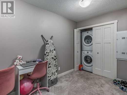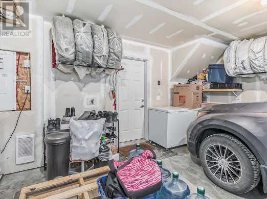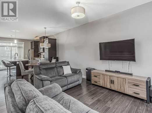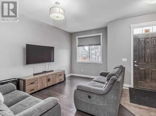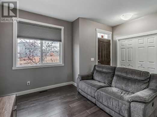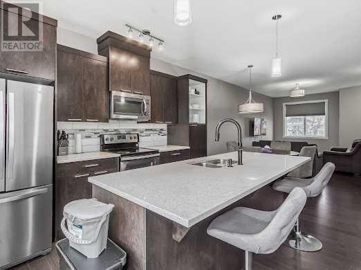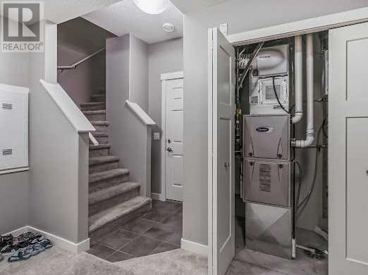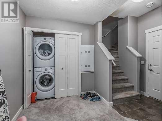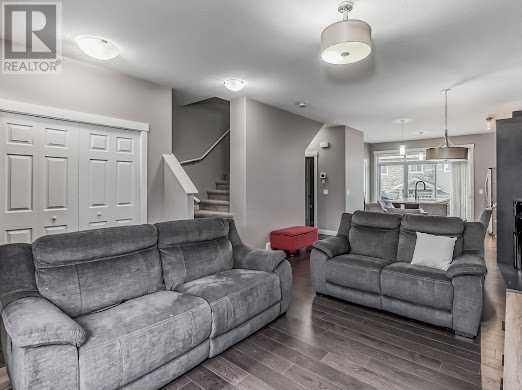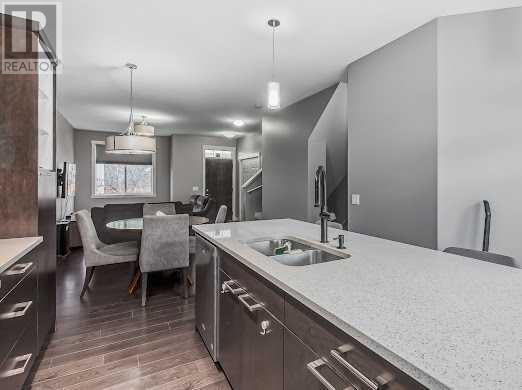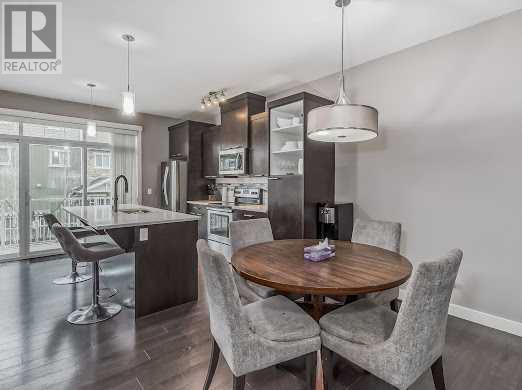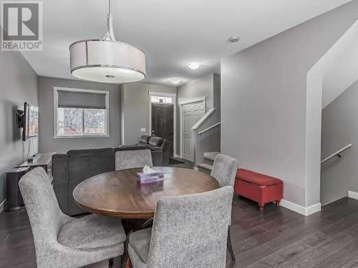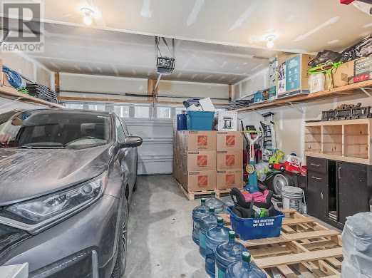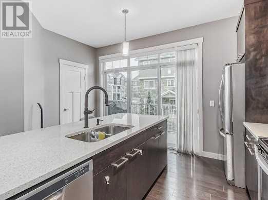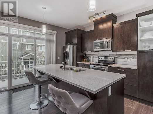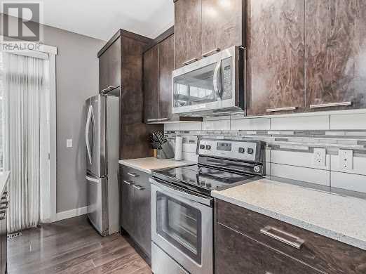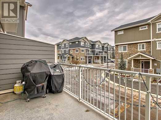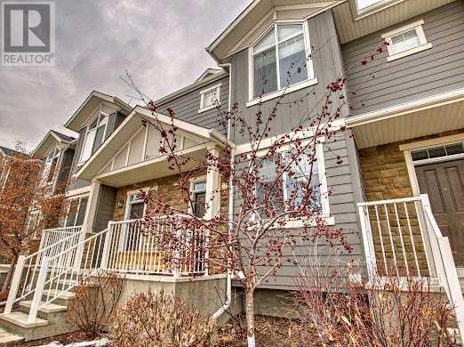 Amazing location! Tucked away in a quiet area of Evanston Manor is this fully finished pristine 3 bedroom Townhome with low Condo Fee, heated double garage and a functional layout. As you walk through the front door you will be amazed by the newly installed Laminate flooring and a fresh coat of paint. This bright open concept home comes with large windows and textured 9 feet ceiling. The dining area flows into a chefs kitchen with an extended granite island, soft close cabinet doors, stainless steel appliances, and a generous walk-in pantry. The kitchen opens out to a large balcony with BBQ gas line. Step up to the upper level on a newly installed plush carpet to be greeted by a spacious master bedroom and two good size bedrooms that share a 4-piece bathroom. The master bedroom has a grand vaulted ceiling, large windows, double closet, and ensuite. The finished basement is a versatile flex space that can be used as an office, den, exercise room or play area for the kids and a closet for your front loading stackable washer and dryer. The home has a close proximity to visitors parking, fire hydrant and the mailbox, and playground. The complex has an on-site Kids and Company Daycare facility with a priority placement for residents. Easy access to Schools, public transportation, shopping, other amenities and Stoney Trail and Symons Valley Parkway. (id:22211)
