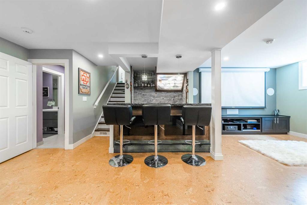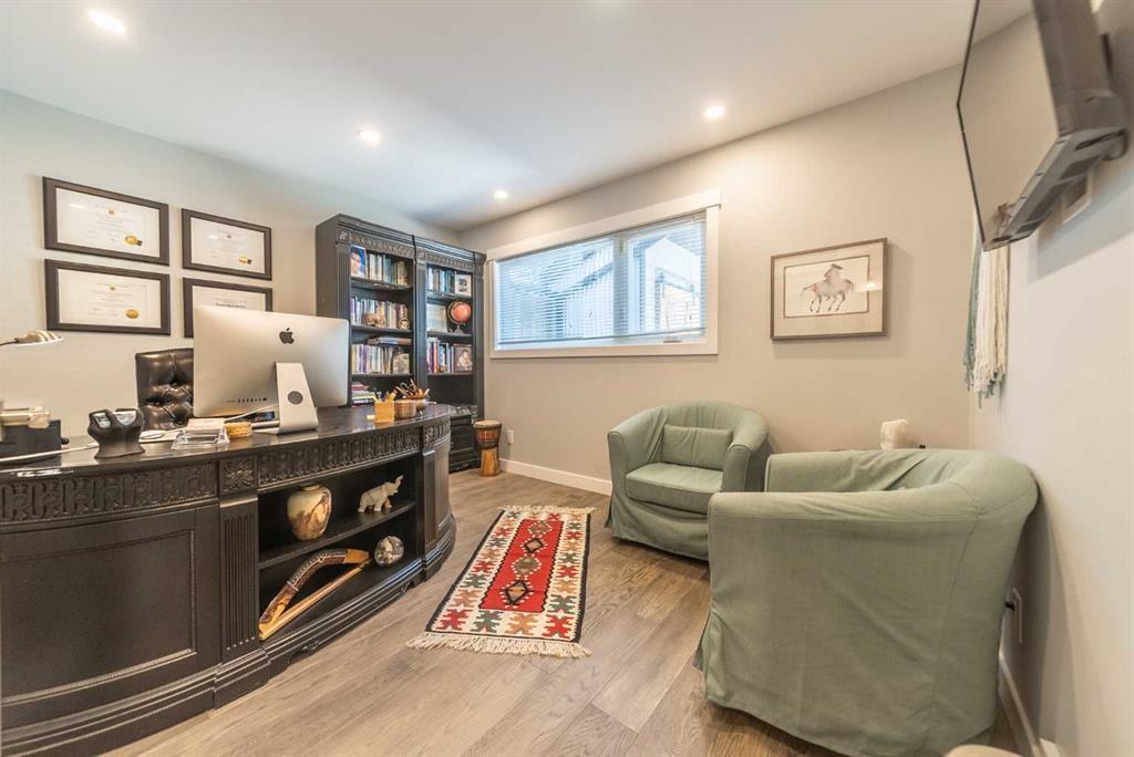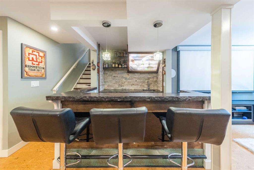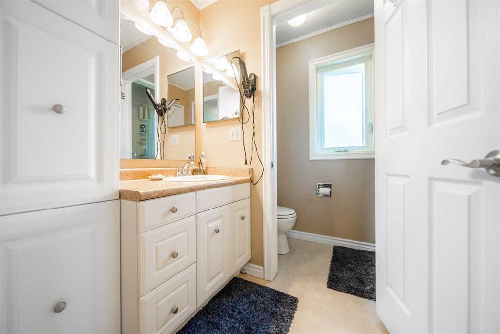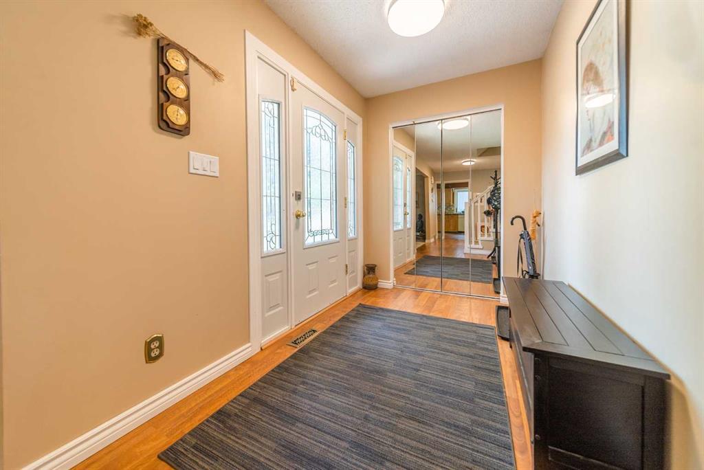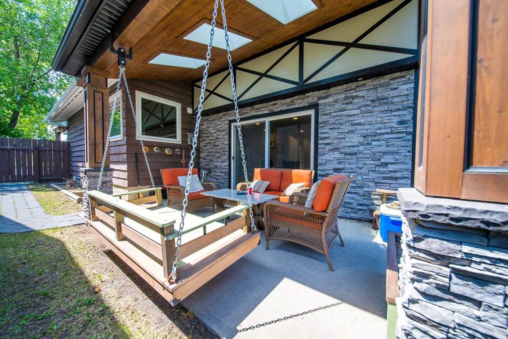 Welcome Home! Fully finished 2600sqft Two Storey split with 4 bedrooms & 2.5 bathrooms. Oversized 32’ x 24’ detached garage and central A/C! Greeted with a welcoming front entryway, formal living room to your kitchen. Your kitchen boasts beautiful natural maple cabinetry with a corner sink looking out the window and pantry. Take a couple steps down into your cozy living room with a wood burning fireplace and abundance of shelving for a home library. Walk out your patio doors to your south facing oasis. This level has been renovated with newer engineered hardwood flooring, baseboards, casings & paint throughout. Completing this level is an office, newly renovated laundry room with great storage, laundry sink & newly renovated 2pc bathroom. Upstairs you are greeted with 3 generous sized bedrooms, 4pc bathroom, your second & third bedroom are open to each other (this can easily be converted back to separate rooms). Your master bedroom offers a generous sized closet & 3pc ensuite with a secondary closet. Wait!!..There is more…your fully finished basement has been newly renovated offering a theatre area, 3rd living room, bar area & brand NEW 3pc bathroom – perfect for entertaining! And half the basement is additional storage. Your backyard is beautifully landscaped offering 2 separate patio areas, oversized double detached garage and a storage shed! A short walk to fish creek park, shopping, schools and the LAKE! Don’t miss out…Call today to take a tour, you won’t be disappointed!! (id:22211)