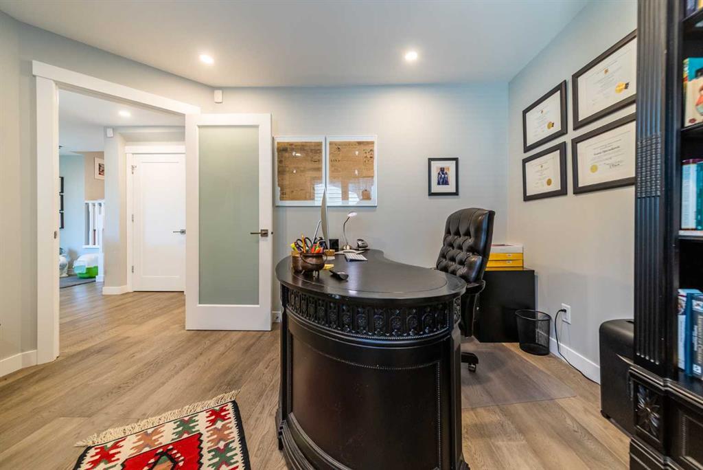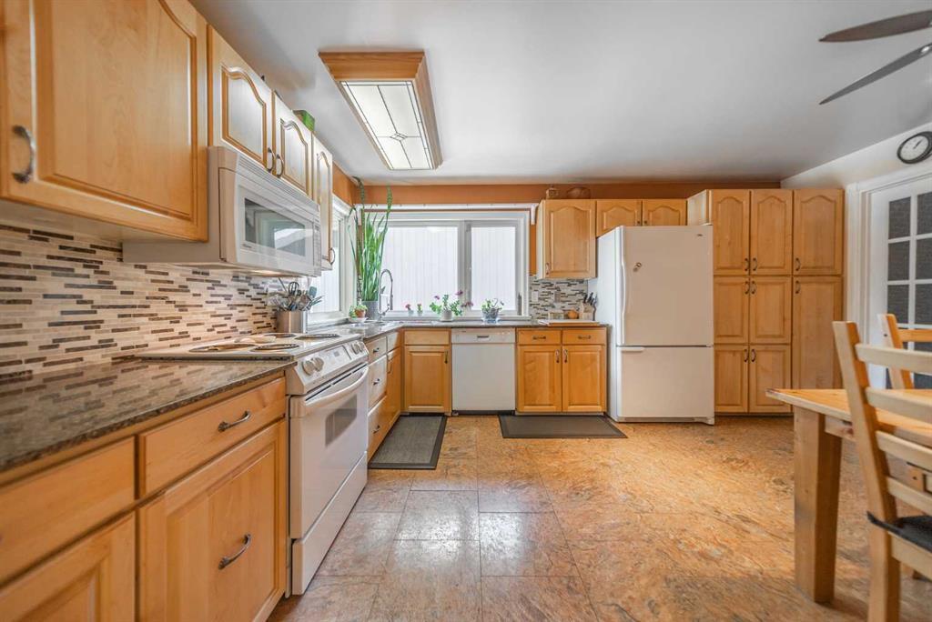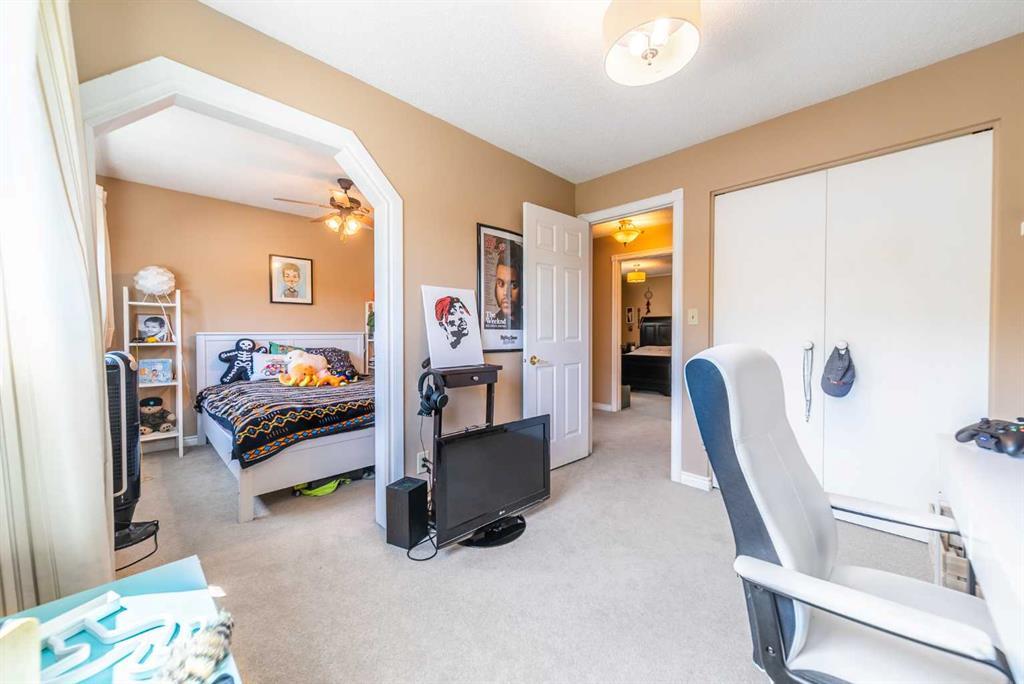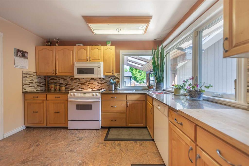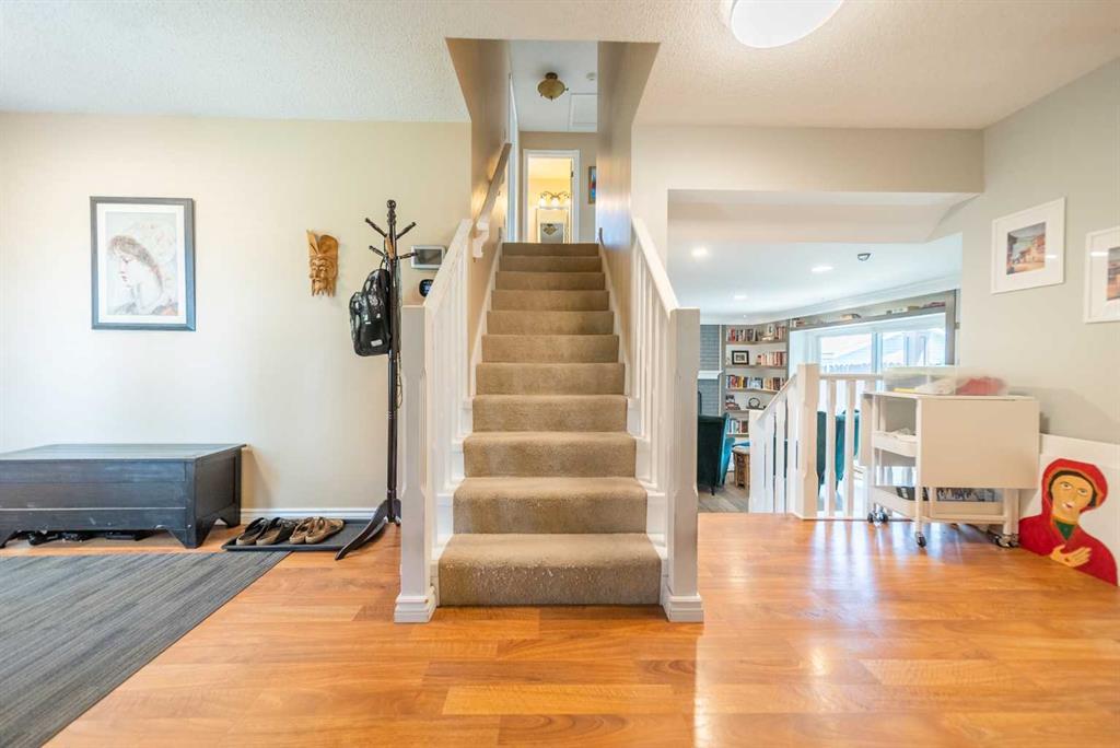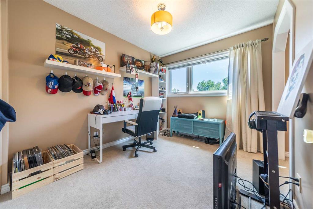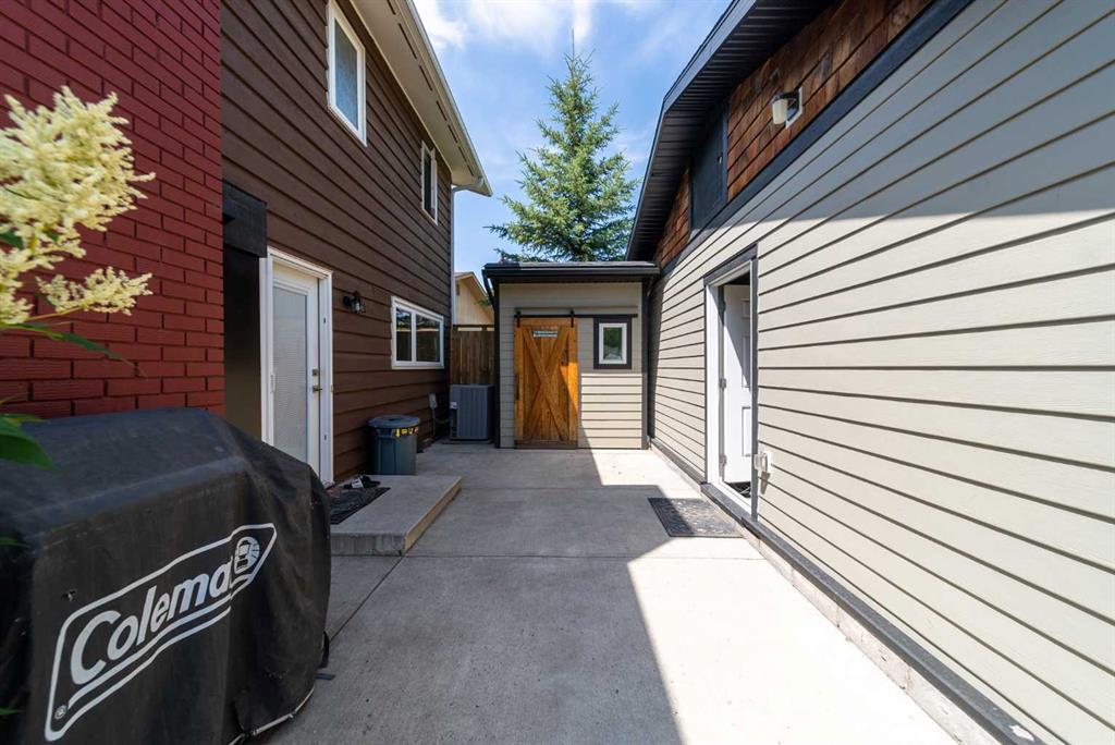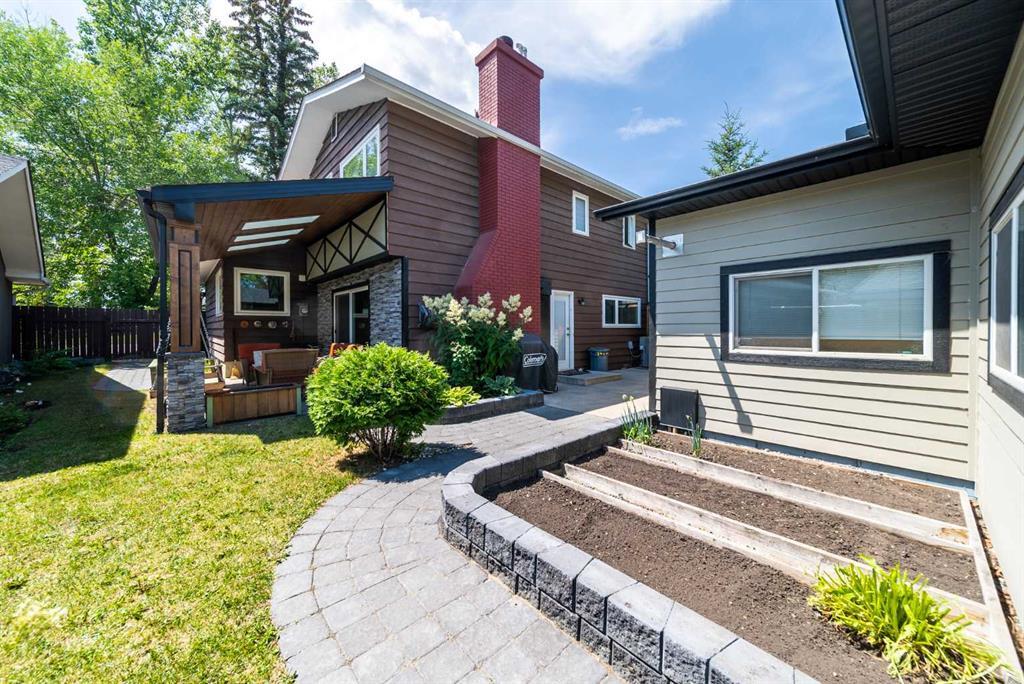 Welcome Home! Fully finished 2600sqft Two Storey split with 4 bedrooms, 2.5 bathrooms & BRAND NEW shingles installed on the house. Oversized 32’ x 24’ detached garage and central A/C! Greeted with a welcoming front entryway, formal living room to your kitchen. Your kitchen boasts beautiful natural maple cabinetry with a corner sink looking out the window and pantry. Take a couple steps down into your cozy living room with a wood burning fireplace and abundance of shelving for a home library. Walk out your patio doors to your south facing oasis. This level has been renovated with newer engineered hardwood flooring, baseboards, casings & paint throughout. Completing this level is an office, newly renovated laundry room with great storage, laundry sink & newly renovated 2pc bathroom. Upstairs you are greeted with 3 generous sized bedrooms, 4pc bathroom, your second & third bedroom are open to each other (this can easily be converted back to separate rooms). Your master bedroom offers a generous sized closet & 3pc ensuite with a secondary closet. Wait!!..There is more…your fully finished basement has been newly renovated offering a theatre area, 3rd living room, bar area & brand NEW 3pc bathroom – perfect for entertaining! And half the basement is additional storage. Your backyard is beautifully landscaped offering 2 separate patio areas, oversized double detached garage and a storage shed! A short walk to fish creek park, shopping, schools and the LAKE! Don’t miss out…Call today to take a tour, you won’t be disappointed!! (id:22211)