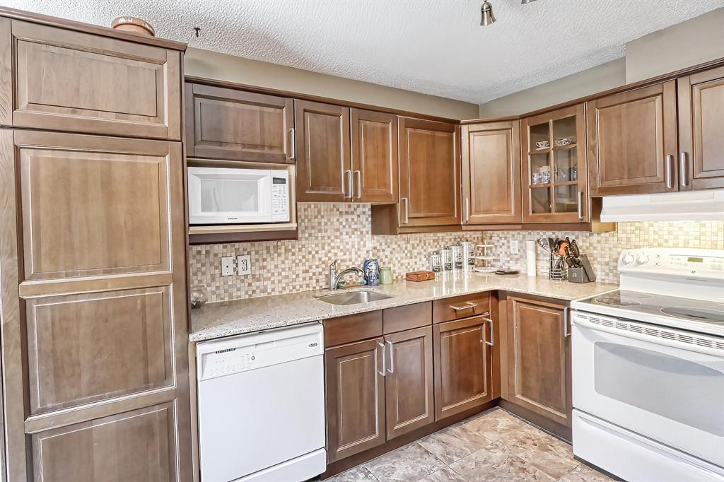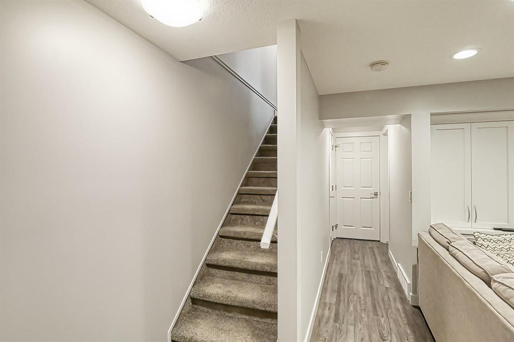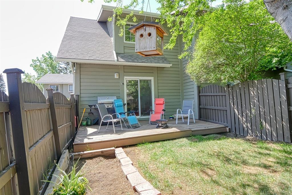 Welcome to Parkside Place. Entering your new home you will notice the amazing bamboo flooring throughout the main level and a large kitchen with loads of cabinetry, quartz countertops and plenty of counter space! Cozy up to your corner wood burning fireplace, or unwind in your fully fenced north facing back yard and watch your kids and dogs play. Upstairs includes 3 good sized bedrooms; the primary with a walk-in closet and an updated 4 piece bathroom. The fully finished, permitted basement includes a large rec room a built-in desk (for work from home folks!), white, brick surround electric fireplace, a huge storage area and a gorgeous bathroom with a lovely pebbled feature in the large walk in shower. This home is very efficient with features such as a newer hi-efficiency furnace, hot water on demand, upgraded insulation, windows and doors! This home also has a garden area in both the front and the back of the home for anyone with a green thumb and there is a community garden right behind the complex that you can also rent! This is a very well run condo board with a healthy reserve fund. Centrally located close to Crowchild Trail, Nose Hill Drive, Crowfoot Shopping Centre, C-Train, YMCA, Library, Arena, public transportation, many restaurants and pubs, a variety of parks, all levels of schooling and right next to the off leash dog park! (id:22211)