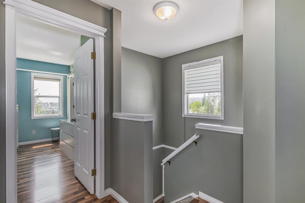 Great value in this beautiful END UNIT townhouse, located on a premium spot backing a green space. The Bright and Spacious 4 Level split Townhouse is in the community of Country Hills. It is contemporary decorated throughout with fresh paint. The second level boasts of a bright and cozy well-designed living room with a corner gas fireplace, high ceiling and large windows that allow tons of natural light into the area. Functional kitchen, with upgraded stainless steel appliances, white cupboards, generous counter space and a well positioned island. Enjoy your delicious meal at the spacious dining area overlooking the yard. Included in the package is a New washer and dryer. On the upper level are 3 good sized bedrooms, Primary bedroom has a generous walk-in closet. The finished basement provides usage options , a bedroom , home office or family room. The large deck is perfect for family BBQ's. This unit comes complete with a single insulated oversized attached garage with wooden shelves and bike hangers plus a visitors parking that is close by. Close to Shopping Centre, Restaurant, Parks, Schools and Public Transit. Call to book your private showing today. (id:22211)