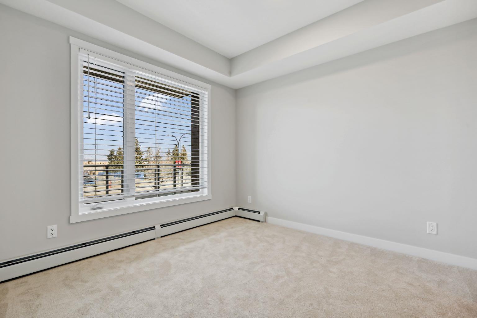 Welcome to this BRAND NEW 2 bedroom, 2 bathroom condo in the amazing SW community of Shawnee Slopes surrounded by amazing walking paths, parks, schools, shopping and steps from the C-Train. This condo features everything you will need with a beautifully finished kitchen with granite counter tops, tiled back splash, microwave/hood vent combo for maximum cupboard space, and stainless steel appliances! It also features a large living area for relaxing or entertaining with a large north facing window and patio with an abundance of natural light, but stating cool in the summer with no direct sunlight on the windows. A large bedroom with a walk through closet, a 3 piece ensuite bathroom as well as a second bedroom and second full bathroom. Front load, in-unit washer and dryer, A den perfect for the at home office, Gym room, or extra storage space! Stay warm in the winter with the HEATED & SECURED underground parking and a secured storage area. This professionally managed building is very well taken care of and shows it! Also comes with free professional rental management for 3 years, perfect for an investor! Book your showing today to check out this AMAZING unit!