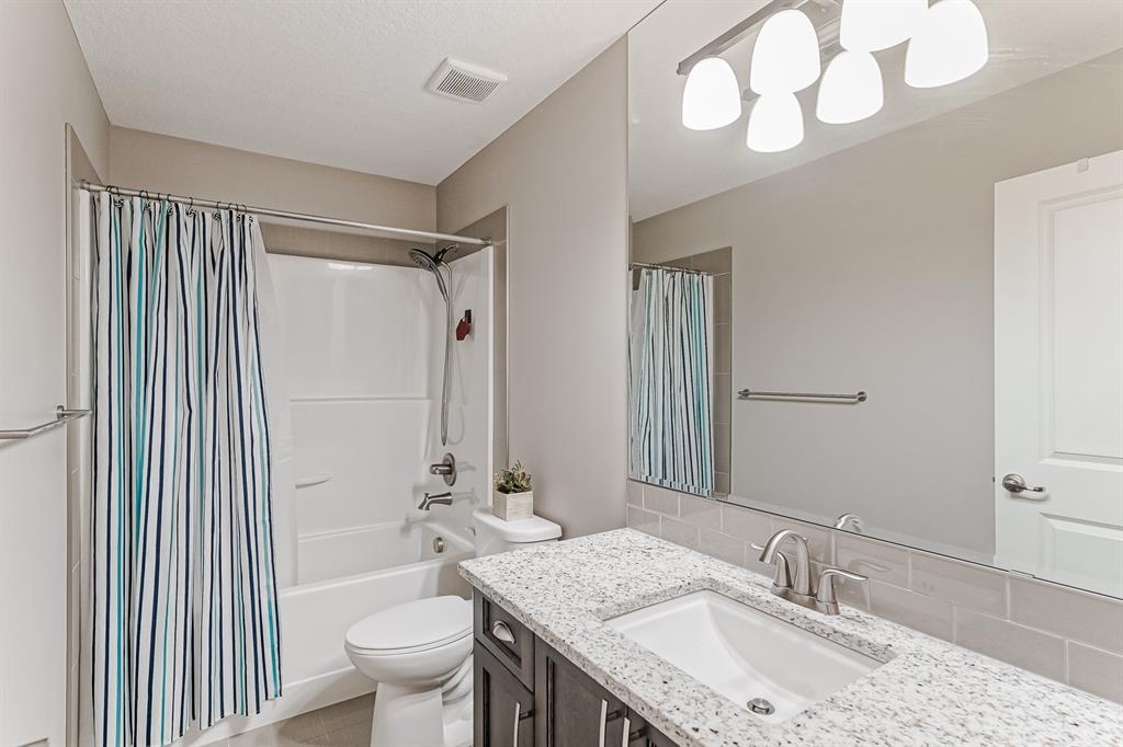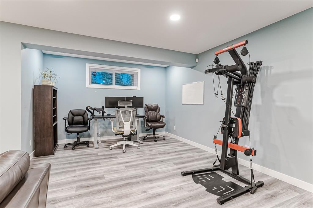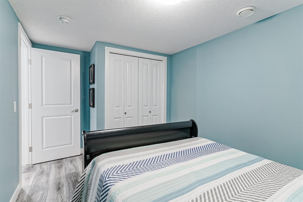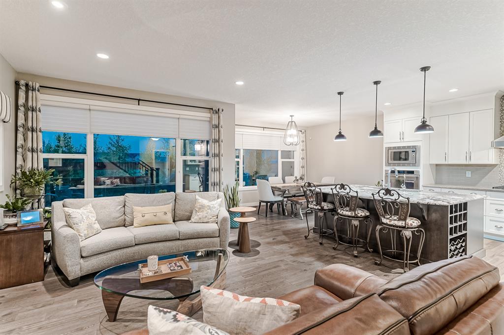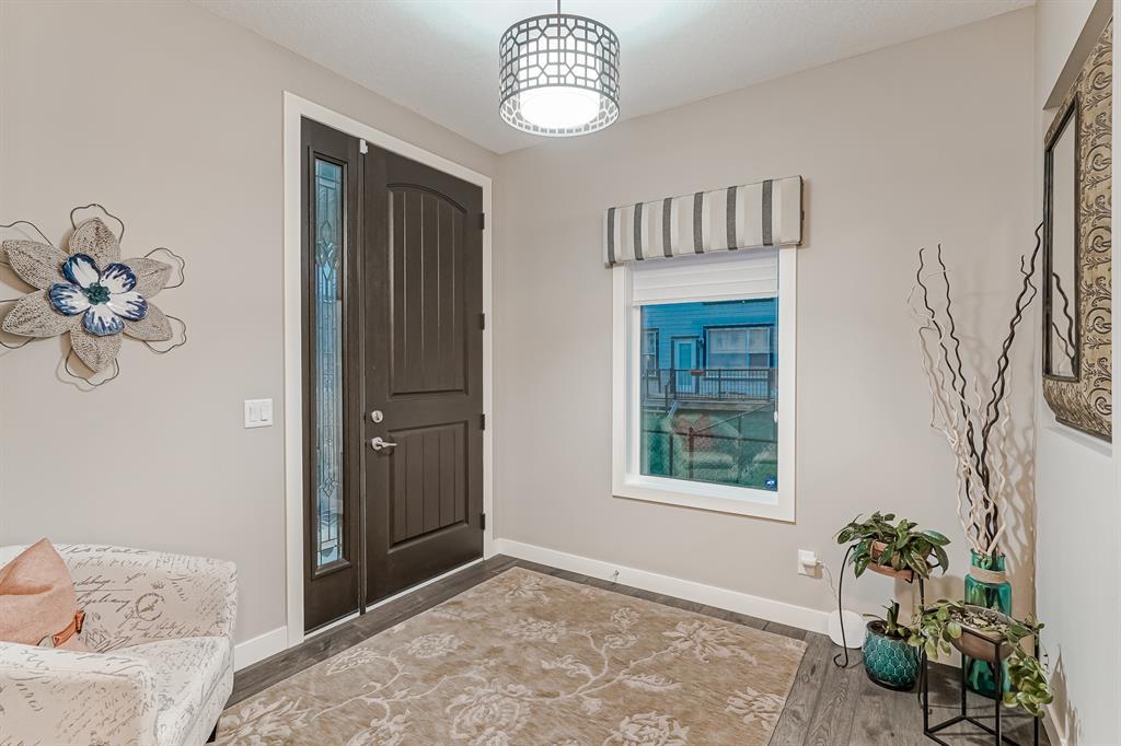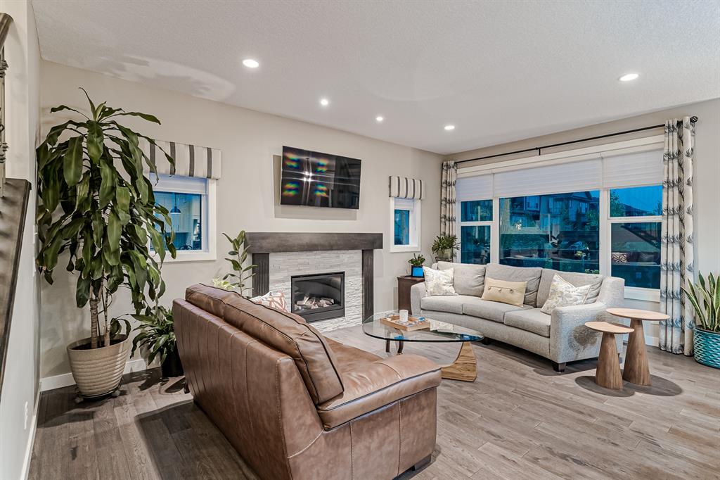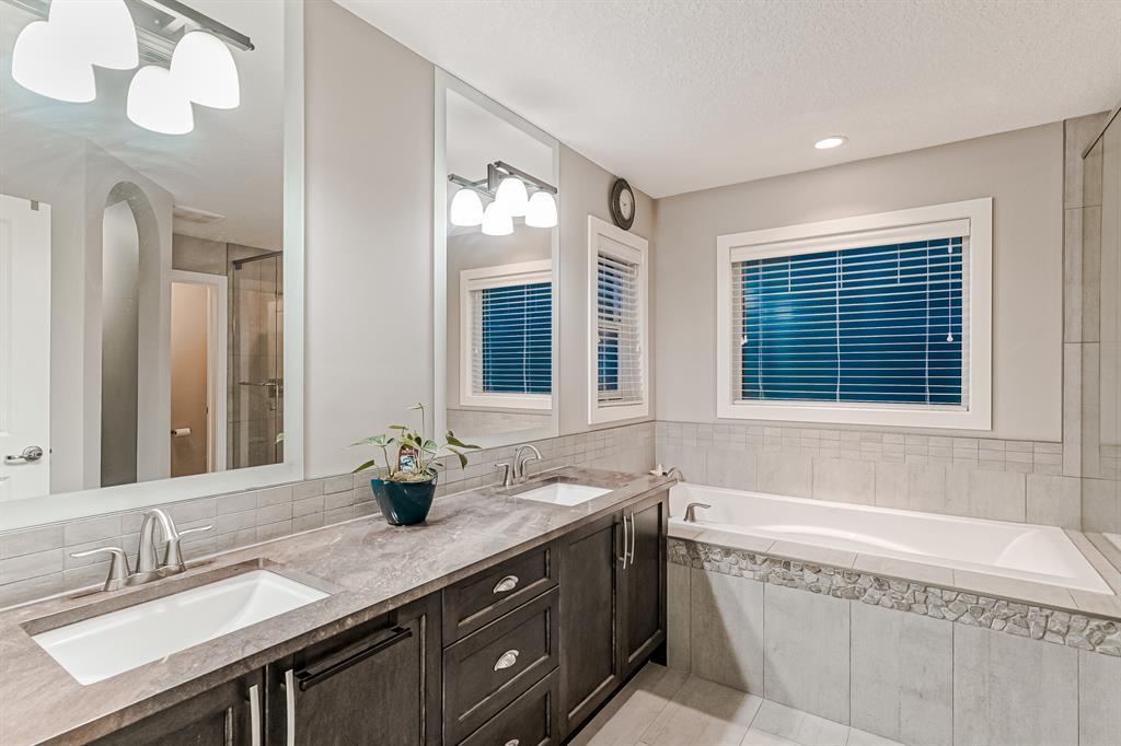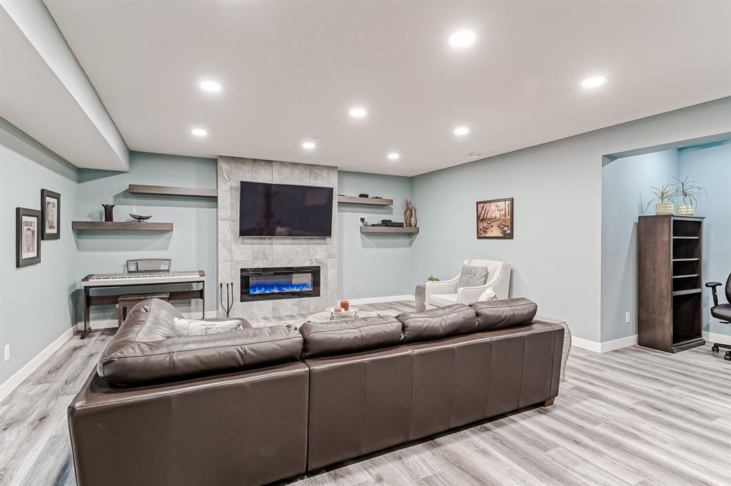 Welcome to this stunning, highly upgraded home built in 2015, offering an impressive total of 3,392 square feet of developed living space, including the basement. From the moment you arrive, the appealing exterior catches your eye with its mixture of James Hardie Board siding and stone, accentuated by upgraded window details featuring rich brown frames. As you step onto the exposed aggregate driveway and walkway, you'll notice the attention to detail, like the eight-foot door next to the ornate glass insert and the epoxy coating on the front door landing (also on the garage floor). The spacious and illuminated front foyer welcomes you with its grandeur. Elegance continues with hardwood flooring throughout most of the main floor and ultra-wide windows in the living room, nook, and bonus room. Prepare to be impressed by the extensively upgraded kitchen, boasting floor-to-ceiling finished shaker cabinetry in two tones with soft close drawers & cabinets (also in all bathrooms). The prestigious kitchen island showcases premium curved and beveled granite atop quality millwork, creating a focal point worthy of admiration. The kitchen also offers a high-end appliance package, including a Miele dishwasher, a Samsung four-panel refrigerator, a Miele built-in gas cooktop, and a built-in oven and microwave. Clever storage solutions are eye-catching, with enhanced titanium shelving in the walk-through pantry & all bedroom & broom closets. In addition, the mudroom features locker-style built-in storage with coat hooks & another closet with two extra rows of shoe racks. If you work from home, the pocket office, with its built-in features, provides a functional & organized workspace. Upstairs, an extra-wide hallway separates three bedrooms, two full bathrooms, a laundry room, & a bonus room with a step-down for extra ceiling height. The primary bedroom is a peaceful retreat with its large picture window overlooking the landscaped backyard & park. Pamper yourself in the five-piece e nsuite bathroom with double vanity, granite countertops, a separate soaker tub, and a spacious walk-in shower with tile & stone walls. Note the ceiling-height vanity mirrors with light fixture cutouts & sandblasted edges for a luxurious look. Additional features of this beautiful home include upgraded lighting, an open railing with beveled wood & iron spindles, a Sonos-controlled three-zone built-in speaker system, and Hunter-Douglas Silhouette blinds on the main floor. The basement, with luxury vinyl flooring, has a tile-surrounded gas fireplace in the spacious living area, a full bathroom, and an additional bedroom. Step outside into the backyard oasis, featuring a deck with glass railings & a handsomely stained pergola above a brickwork sitting area - perfect for enjoying the outdoors & entertaining guests. This home also comes with a premium Kinetico water system, providing excellent drinking water & smooth, soft water to pamper your skin while increasing the longevity of your water-fed appliances. (id:22211)