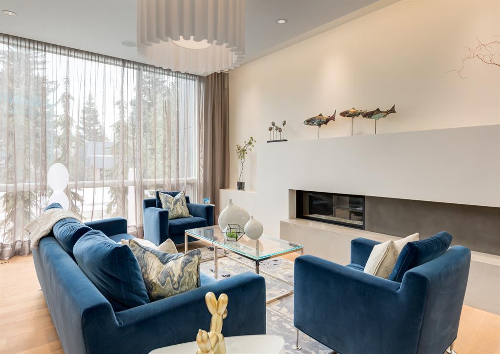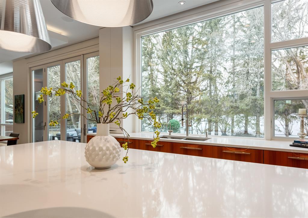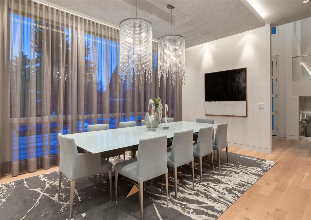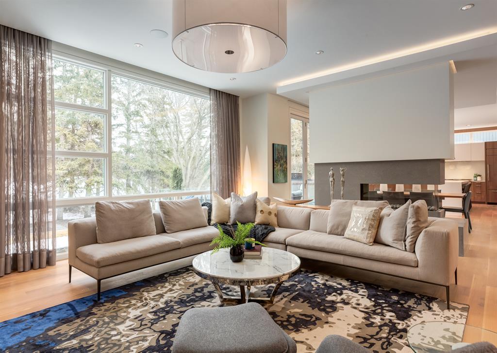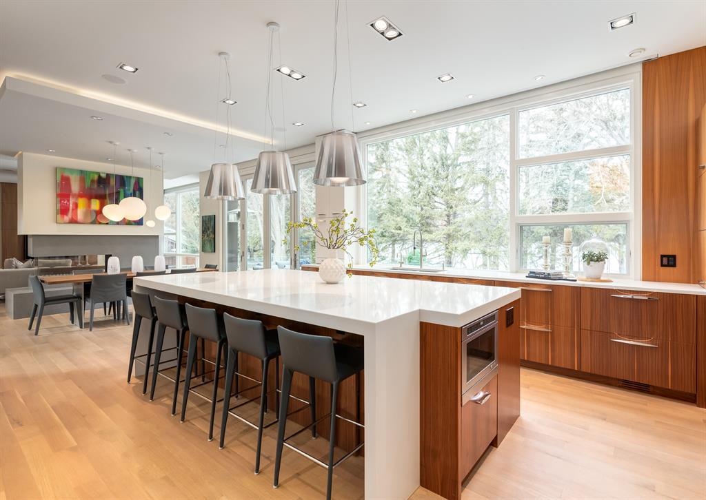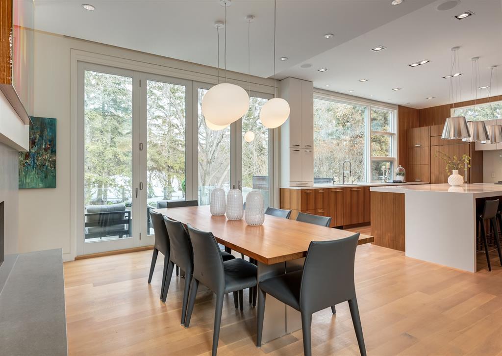 UNDER CONTRACT. Exquisite contemporary family home backing onto a park in Lakeview Village. Clean architectural lines, striking design, luxury materials, and thoughtful landscaping elements all combine to create the most remarkable street appeal. Architecturally designed by Lyndon Steinmetz and masterfully built by luxury builder Greystone Custom Homes. This home was engineered “like no other” with a geothermal heating system, triple pane windows, a specialized Odorox filtration system, a backup generator, additional steel beam construction, a high-tech snow melt system and a fully integrated Elan Audio & Video system. As you enter the main foyer, you feel the streams of natural light pouring into all of the spaces through the expansive windows. The main floor features a formal dining room with butler’s serving area leading to the designer kitchen, a large pantry with a dumb waiter elevator to the lower level, a magnificent art-piece stairwell to the second level, a lovely South office/den, a separate intimate living/music room, a great room next to the kitchen and fabulous patio doors that seamlessly open to the backyard entertaining space. A sunken South courtyard, a backyard wood burning fireplace and many expansive terrace areas allow for outdoor living rooms galore! The state-of-the-art designer kitchen boasts counter-to-ceiling windows, custom cabinetry and masterful millwork. The appliance package includes a 48’ Wolf cooktop, Wolf steam oven, Wolf convection oven, Sub-zero refrigerators and two Miele dishwashers. The upper-level features three ensuite bedrooms in addition to the primary suite. The entire East wing of the home comprises the primary suite. A perfect reading alcove is located in the upper hallway. The primary bedroom is luxurious, comfortable, calming, and it replicates a six- diamond luxury hotel suite, in the comfort of your own home! The luxurious ensuite features a rippling wall feature, a stand-alone soaker bathtub, a gorgeous van ity and a steam shower with heated floors, two rain showers, body sprayers and a waterfall. Maximize your family fun in the amazing lower-level area! Surround sound, multiple TVs, and a gorgeous bar equipped with a Miele dishwasher, bar fridge, and built-in fridge means you have the perfect space for entertaining friends and family. Additional auxillary spaces include a children’s homework room off the main level family room, an upper level laundry room with two sets of machines, a lower mud room next to the heated garage with lockers and a lower level gym. Original owner. Outstanding construction. Efficient floor plan. Impeccable interior design. (id:22211)