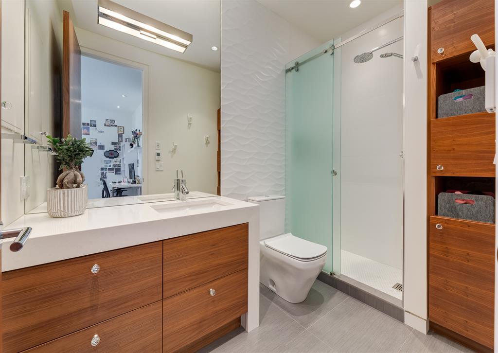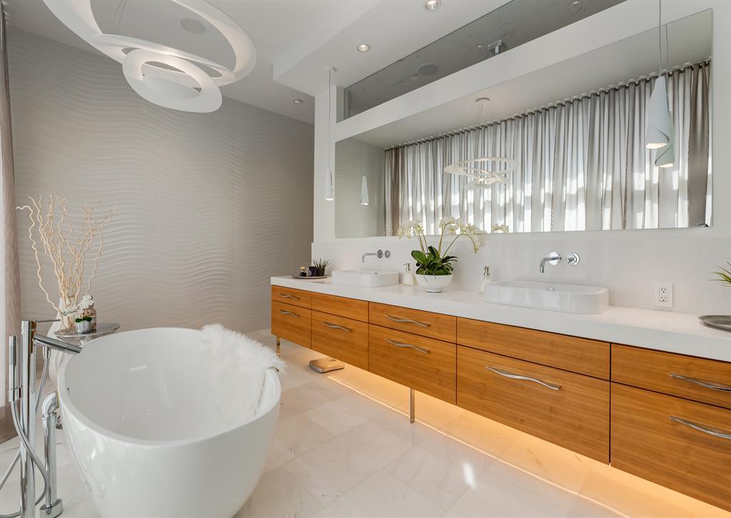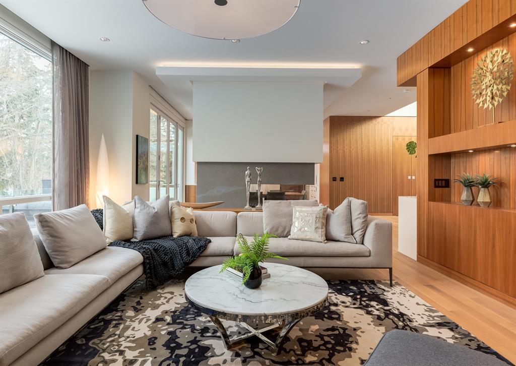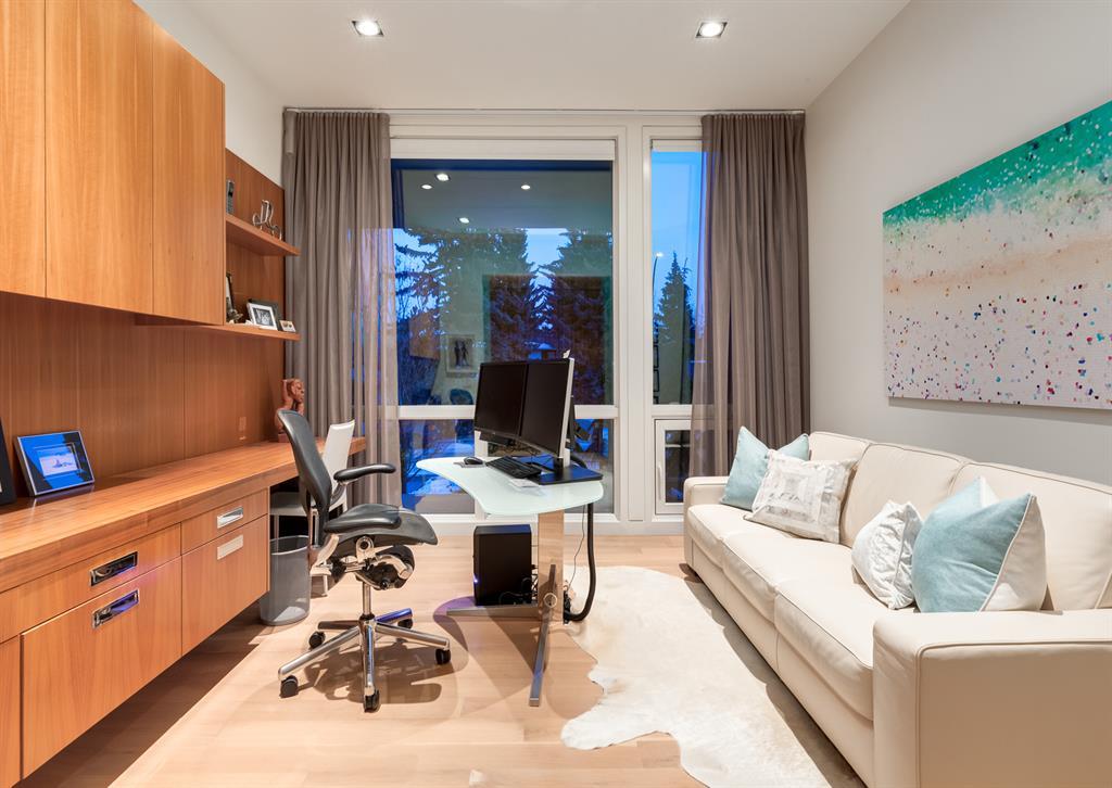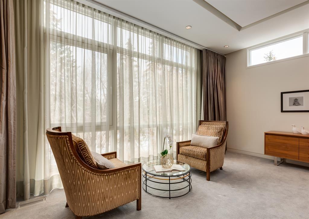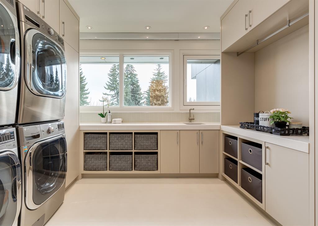 UNDER CONTRACT. Exquisite contemporary family home backing onto a park in Lakeview Village. Clean architectural lines, striking design, luxury materials, and thoughtful landscaping elements all combine to create the most remarkable street appeal. Architecturally designed by Lyndon Steinmetz and masterfully built by luxury builder Greystone Custom Homes. This home was engineered “like no other” with a geothermal heating system, triple pane windows, a specialized Odorox filtration system, a backup generator, additional steel beam construction, a high-tech snow melt system and a fully integrated Elan Audio & Video system. As you enter the main foyer, you feel the streams of natural light pouring into all of the spaces through the expansive windows. The main floor features a formal dining room with butler’s serving area leading to the designer kitchen, a large pantry with a dumb waiter elevator to the lower level, a magnificent art-piece stairwell to the second level, a lovely South office/den, a separate intimate living/music room, a great room next to the kitchen and fabulous patio doors that seamlessly open to the backyard entertaining space. A sunken South courtyard, a backyard wood burning fireplace and many expansive terrace areas allow for outdoor living rooms galore! The state-of-the-art designer kitchen boasts counter-to-ceiling windows, custom cabinetry and masterful millwork. The appliance package includes a 48’ Wolf cooktop, Wolf steam oven, Wolf convection oven, Sub-zero refrigerators and two Miele dishwashers. The upper-level features three ensuite bedrooms in addition to the primary suite. The entire East wing of the home comprises the primary suite. A perfect reading alcove is located in the upper hallway. The primary bedroom is luxurious, comfortable, calming, and it replicates a six- diamond luxury hotel suite, in the comfort of your own home! The luxurious ensuite features a rippling wall feature, a stand-alone soaker bathtub, a gorgeous van ity and a steam shower with heated floors, two rain showers, body sprayers and a waterfall. Maximize your family fun in the amazing lower-level area! Surround sound, multiple TVs, and a gorgeous bar equipped with a Miele dishwasher, bar fridge, and built-in fridge means you have the perfect space for entertaining friends and family. Additional auxillary spaces include a children’s homework room off the main level family room, an upper level laundry room with two sets of machines, a lower mud room next to the heated garage with lockers and a lower level gym. Original owner. Outstanding construction. Efficient floor plan. Impeccable interior design. (id:22211)